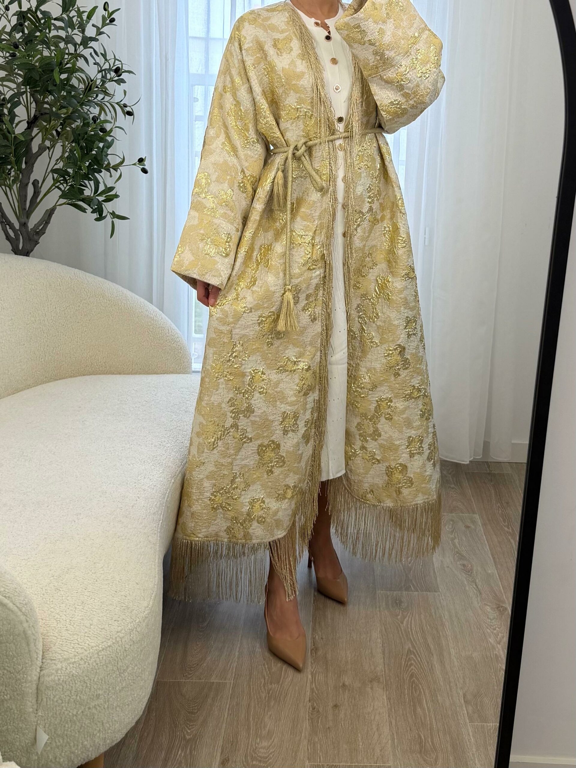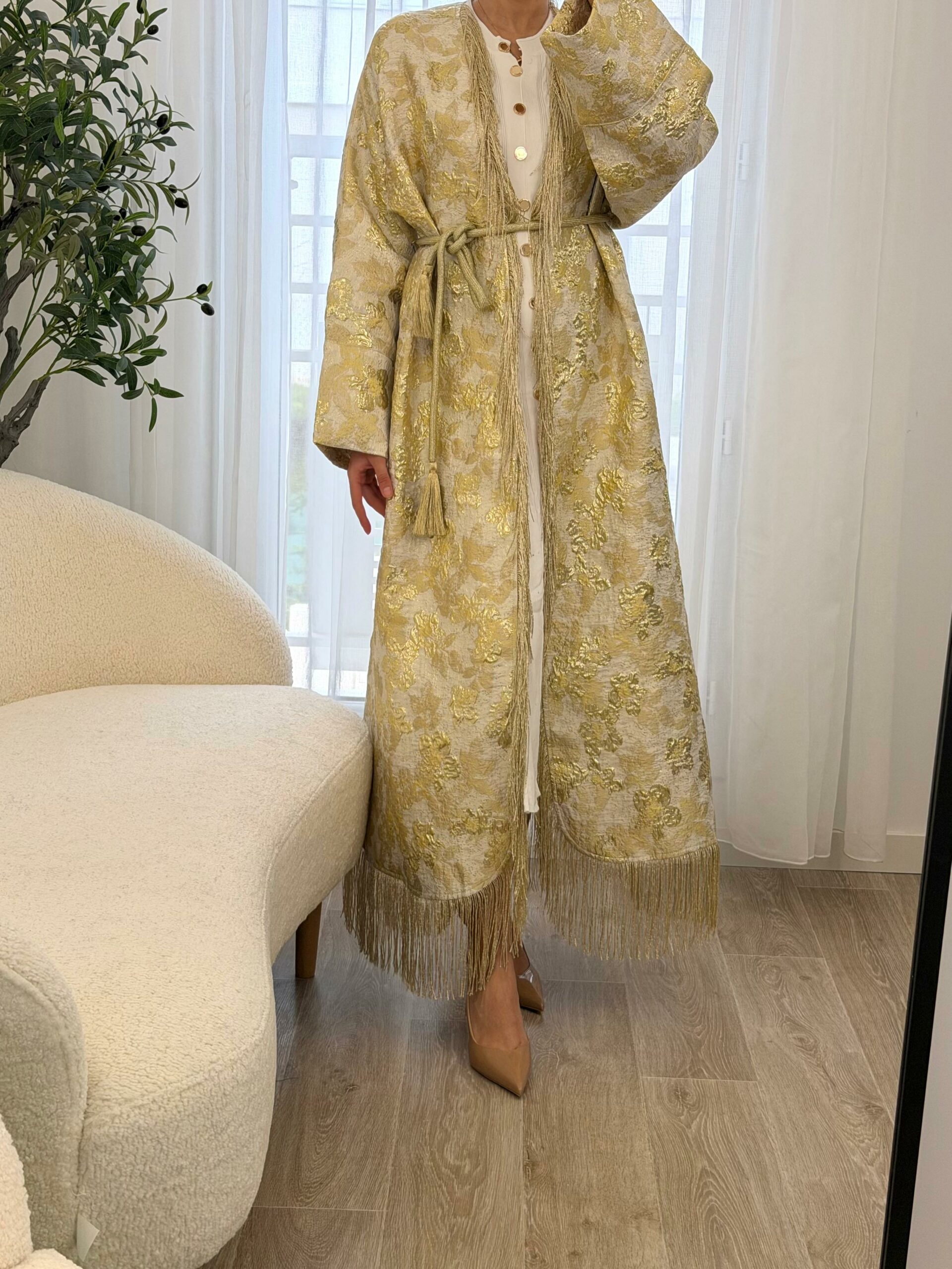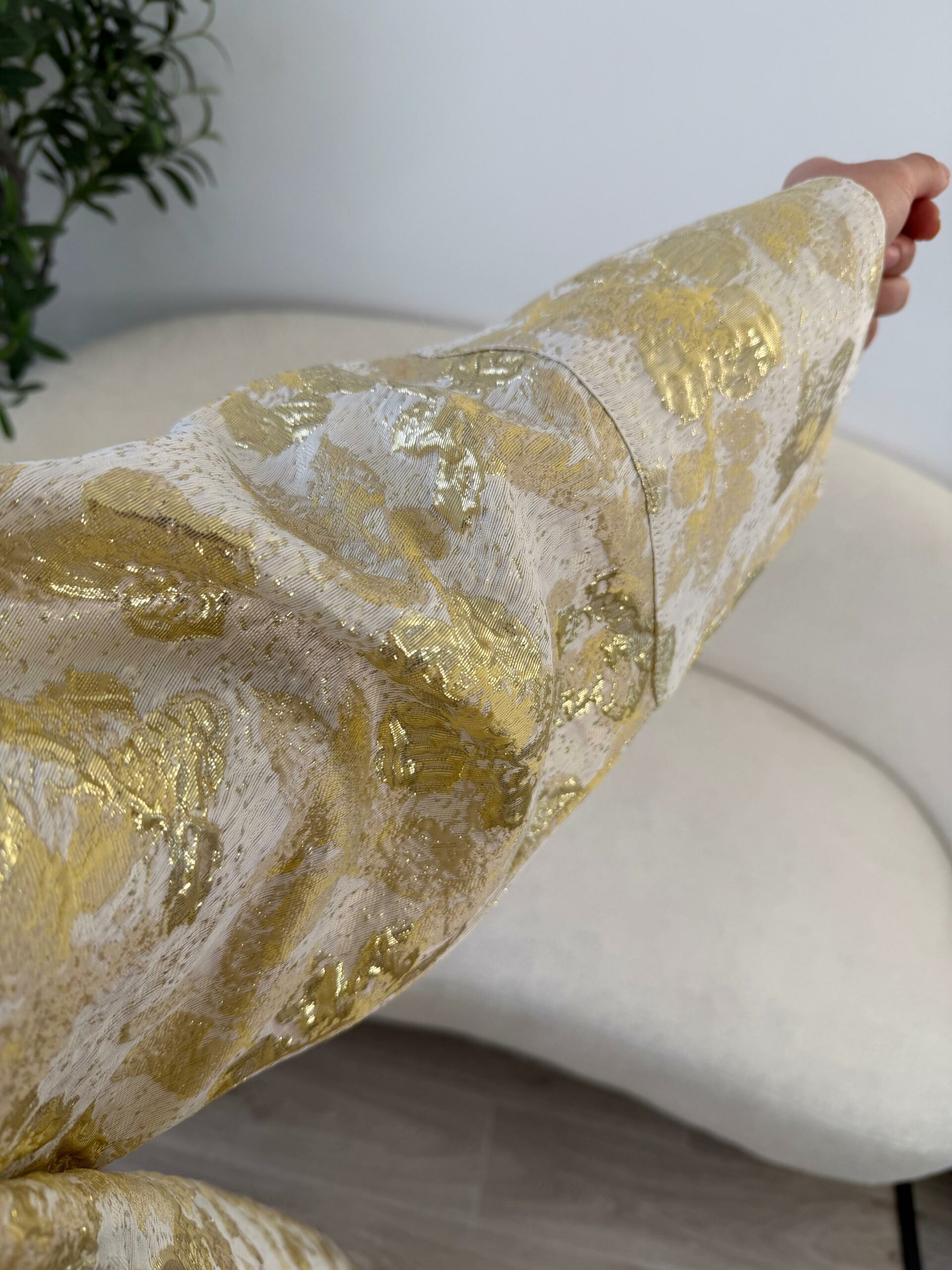 Laissez-vous séduire par cette abaya dorée, symbole de raffinement et d’élégance absolue. Confectionnée avec un tissu de haute qualité, elle offre une brillance subtile et un tombé fluide qui sublime la silhouette. Son design soigné et ses finitions délicates en font une pièce idéale pour les occasions spéciales comme pour les looks chics du quotidien. Une abaya qui allie luxe, confort et distinction, pour briller avec classe en toute simplicité.