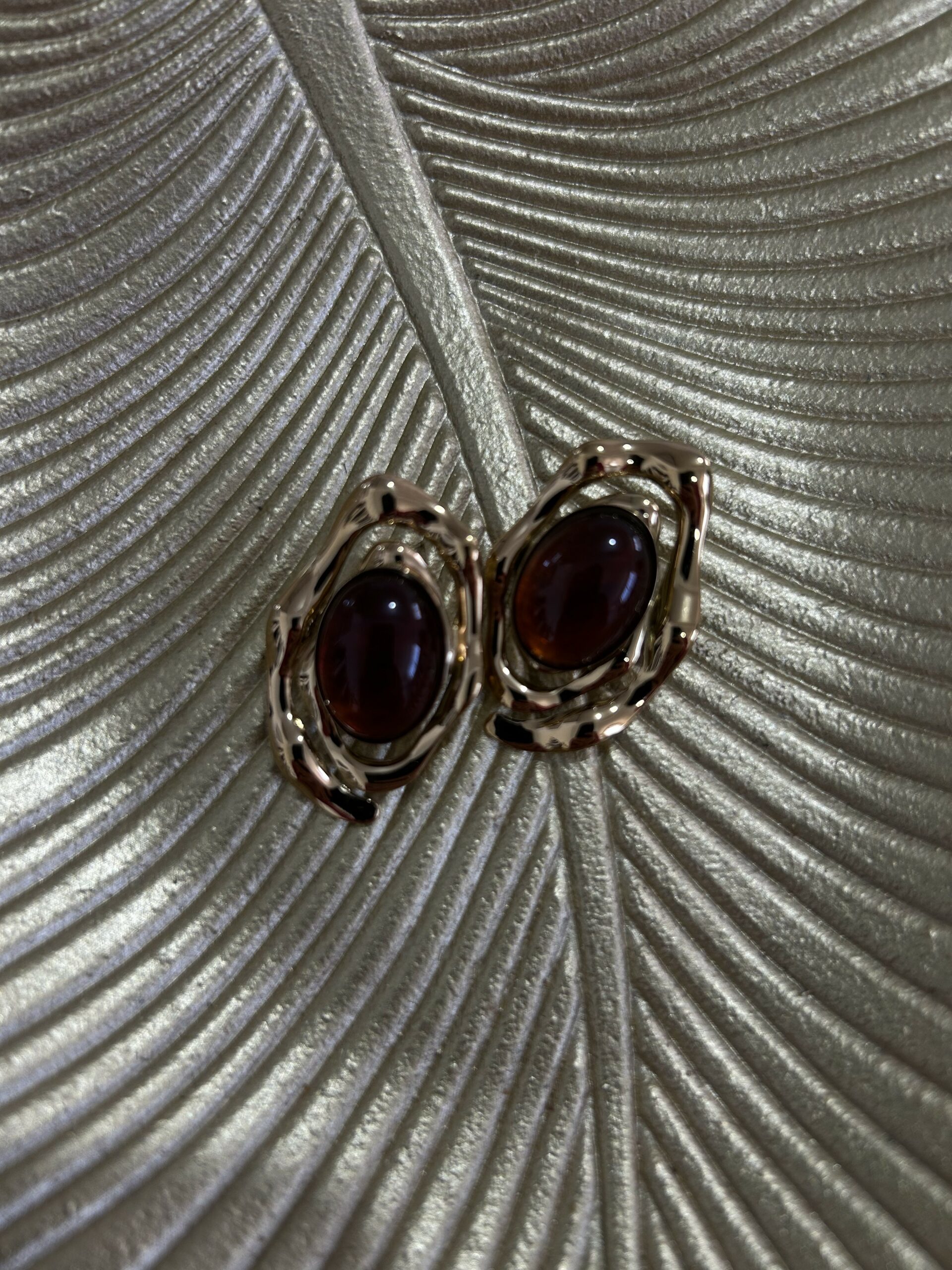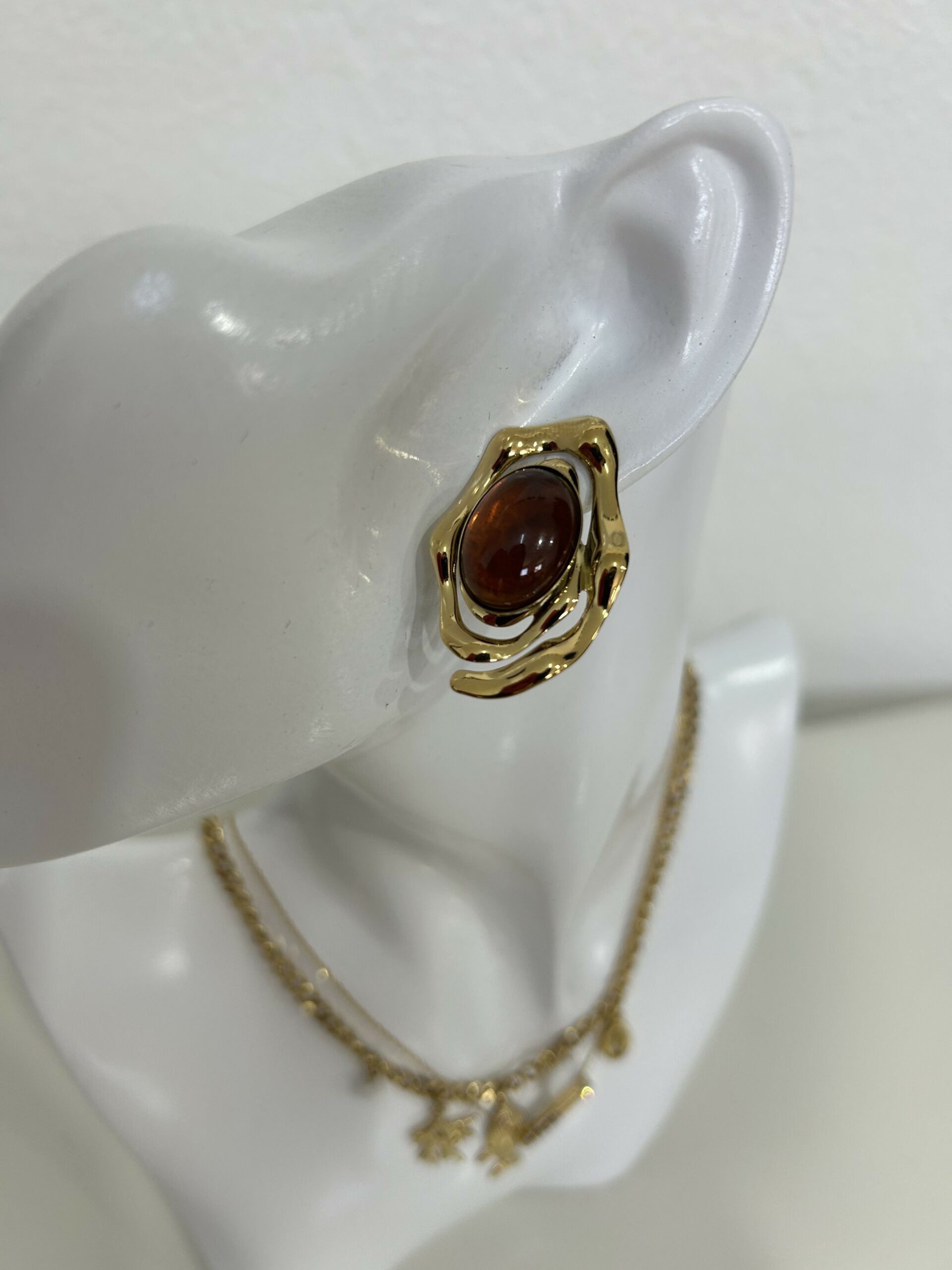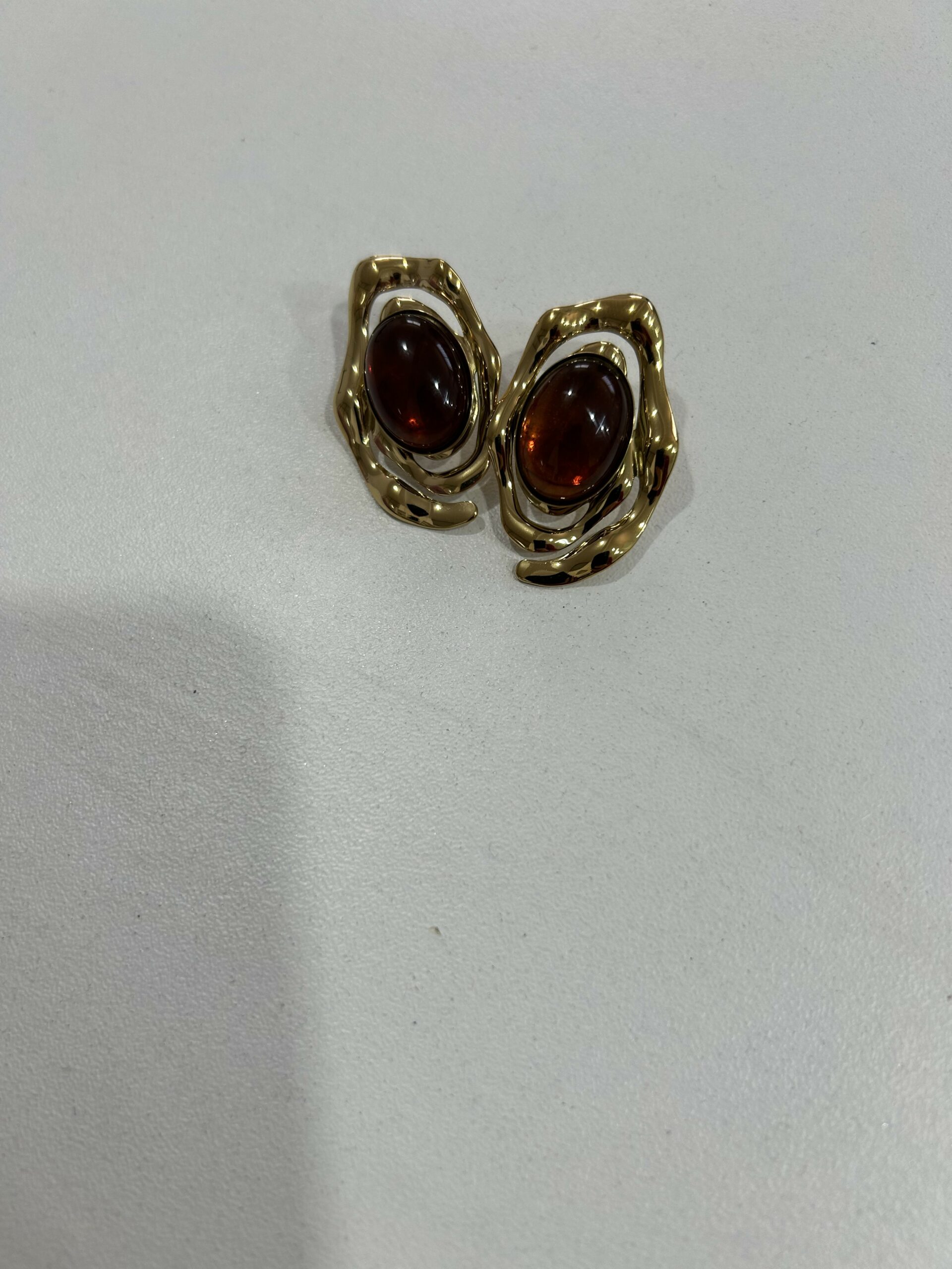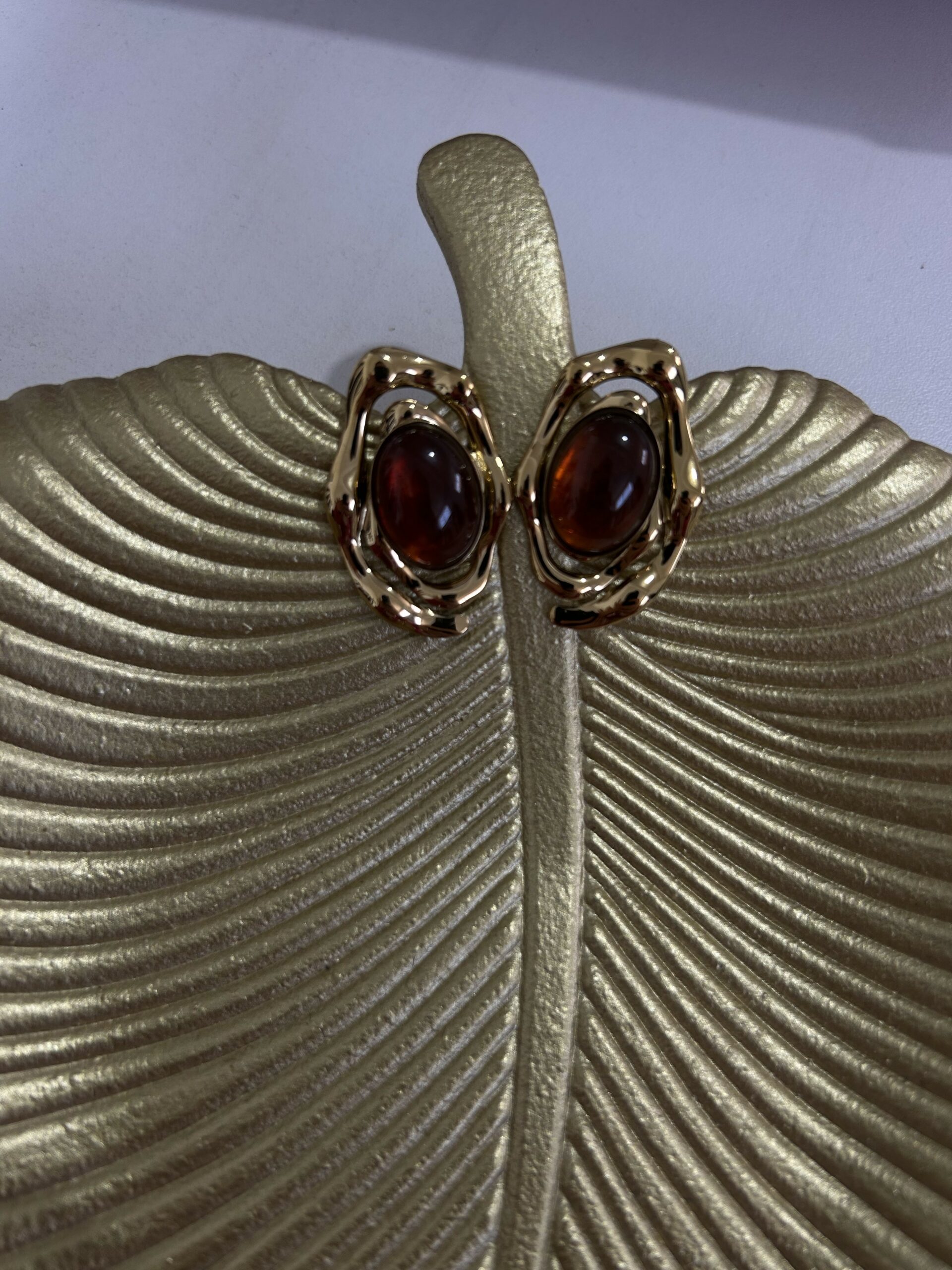Boucles d’oreilles au design moderne et raffiné, mettant en valeur une pierre effet ambre aux reflets profonds, délicatement entourée d’une monture dorée au style artistique. Leur forme originale apporte du caractère tout en restant élégante et facile à porter. Légères et confortables, elles s’accordent parfaitement avec des tenues chic ou quotidiennes. Un accessoire sophistiqué qui ajoute une touche de luxe et d’élégance à chaque look. 🤎✨