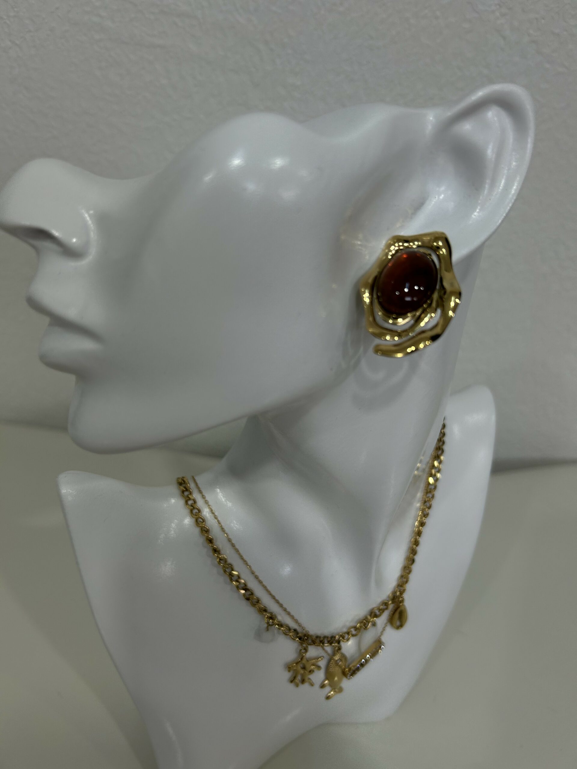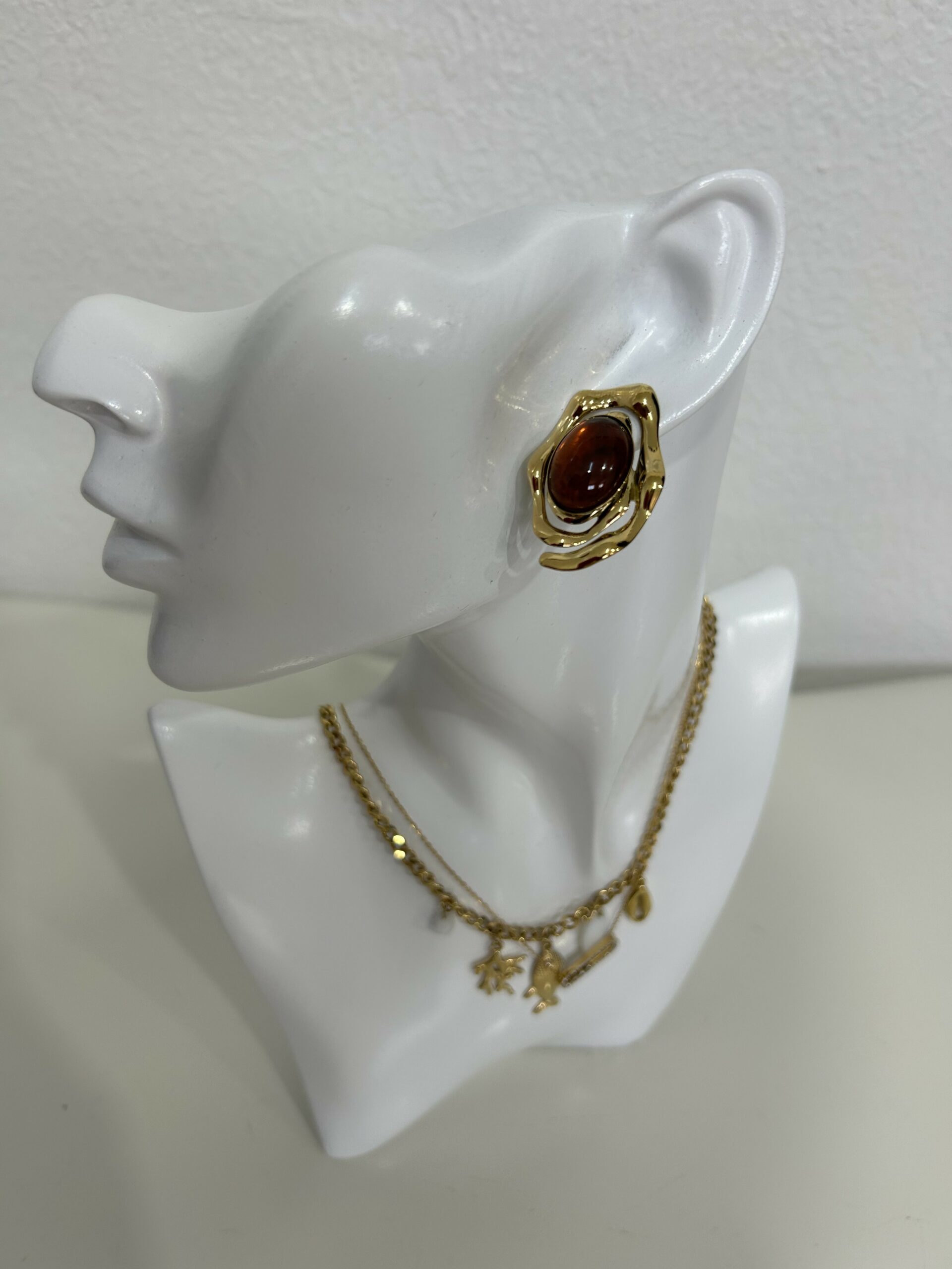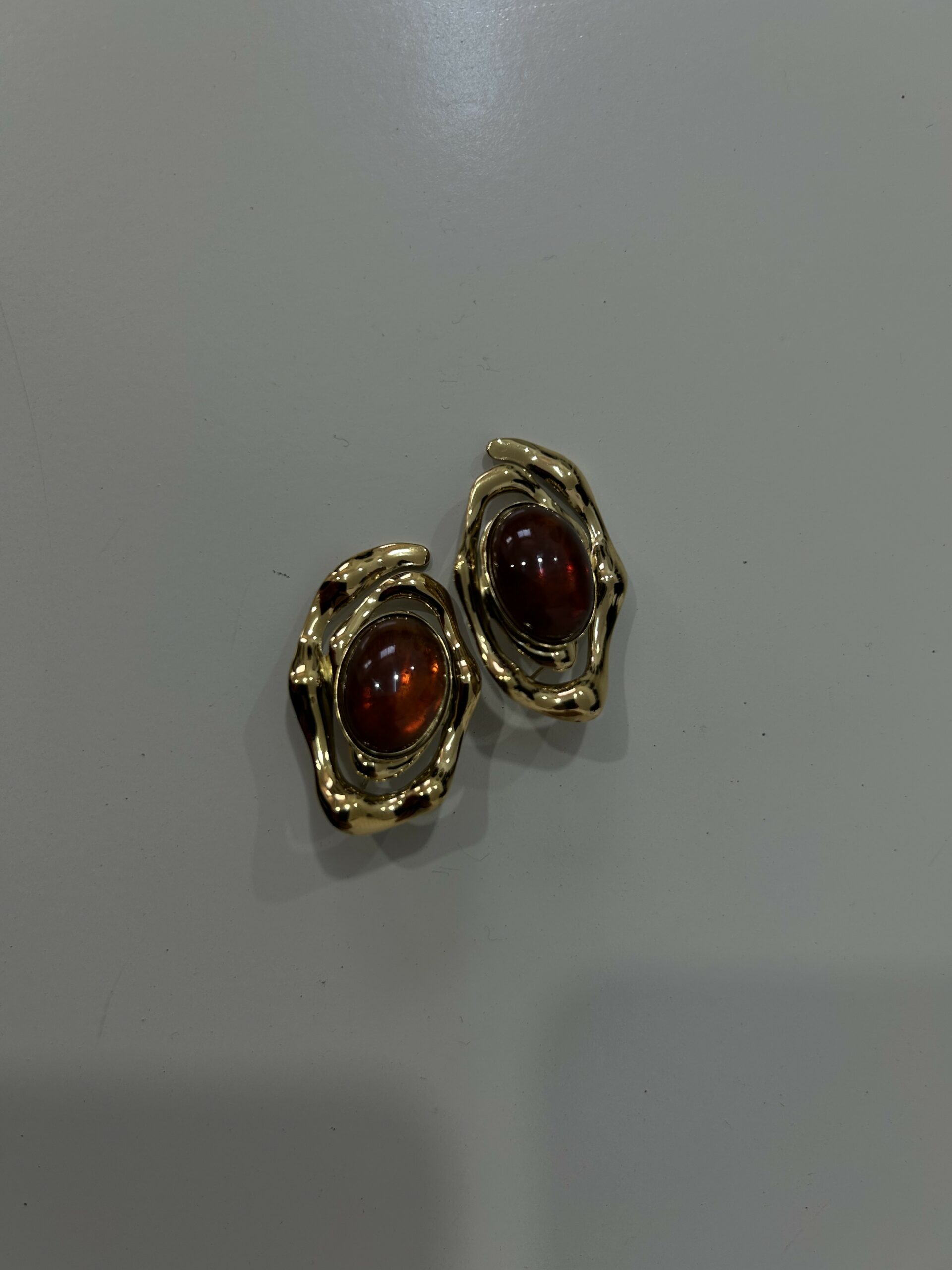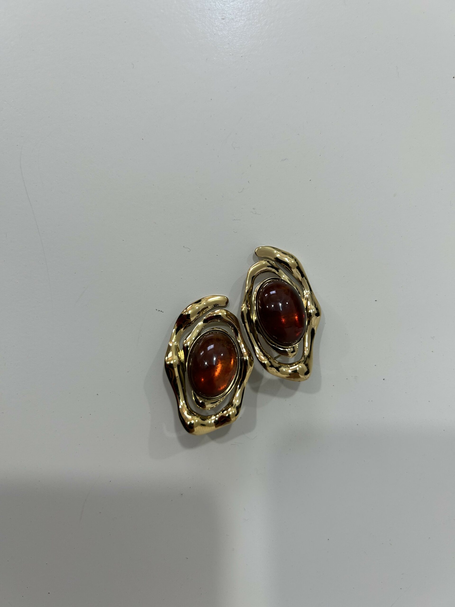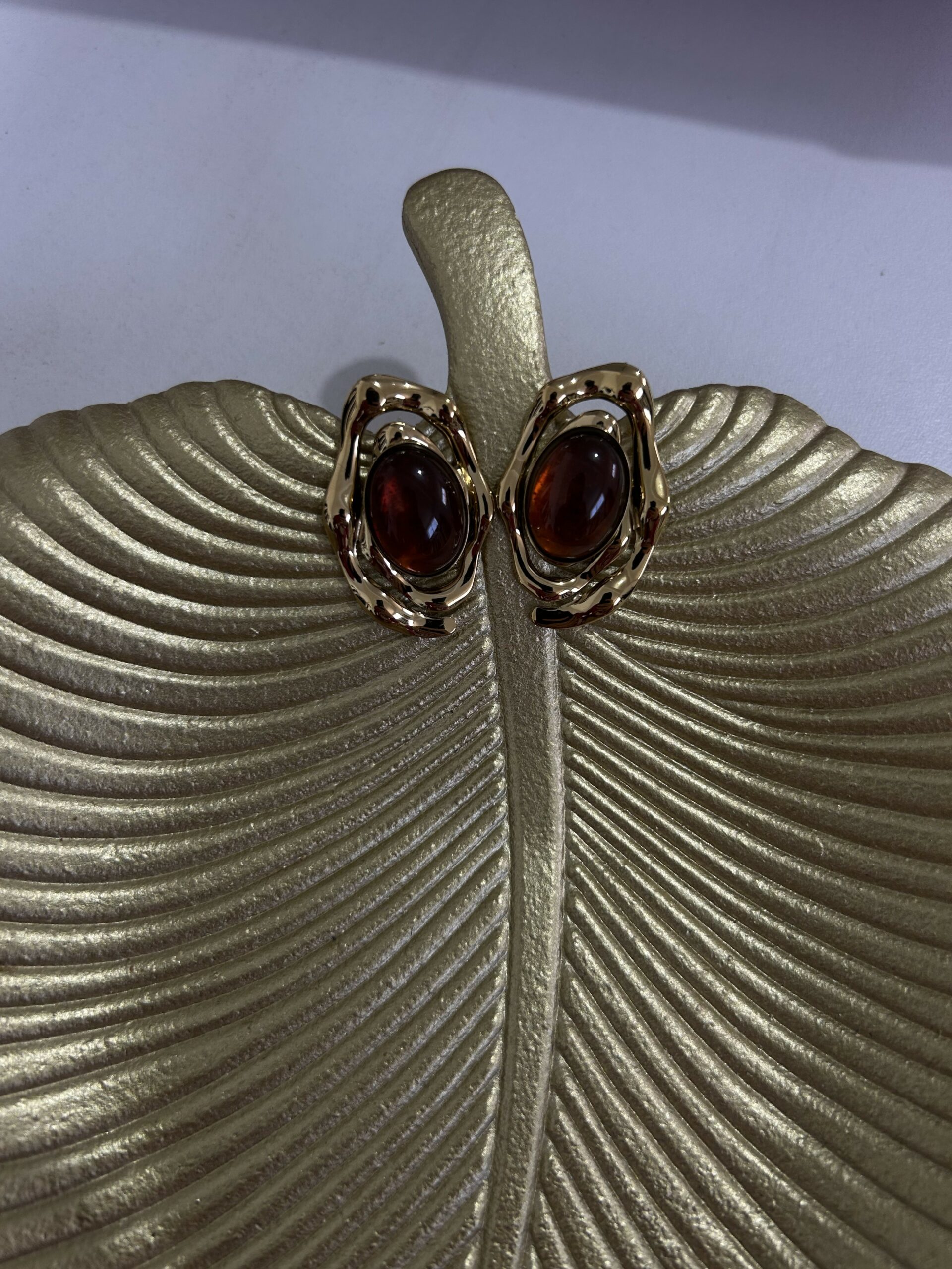 Boucles d’oreilles au design moderne et raffiné, mettant en valeur une pierre effet ambre aux reflets profonds, délicatement entourée d’une monture dorée au style artistique. Leur forme originale apporte du caractère tout en restant élégante et facile à porter. Légères et confortables, elles s’accordent parfaitement avec des tenues chic ou quotidiennes. Un accessoire sophistiqué qui ajoute une touche de luxe et d’élégance à chaque look. 🤎✨