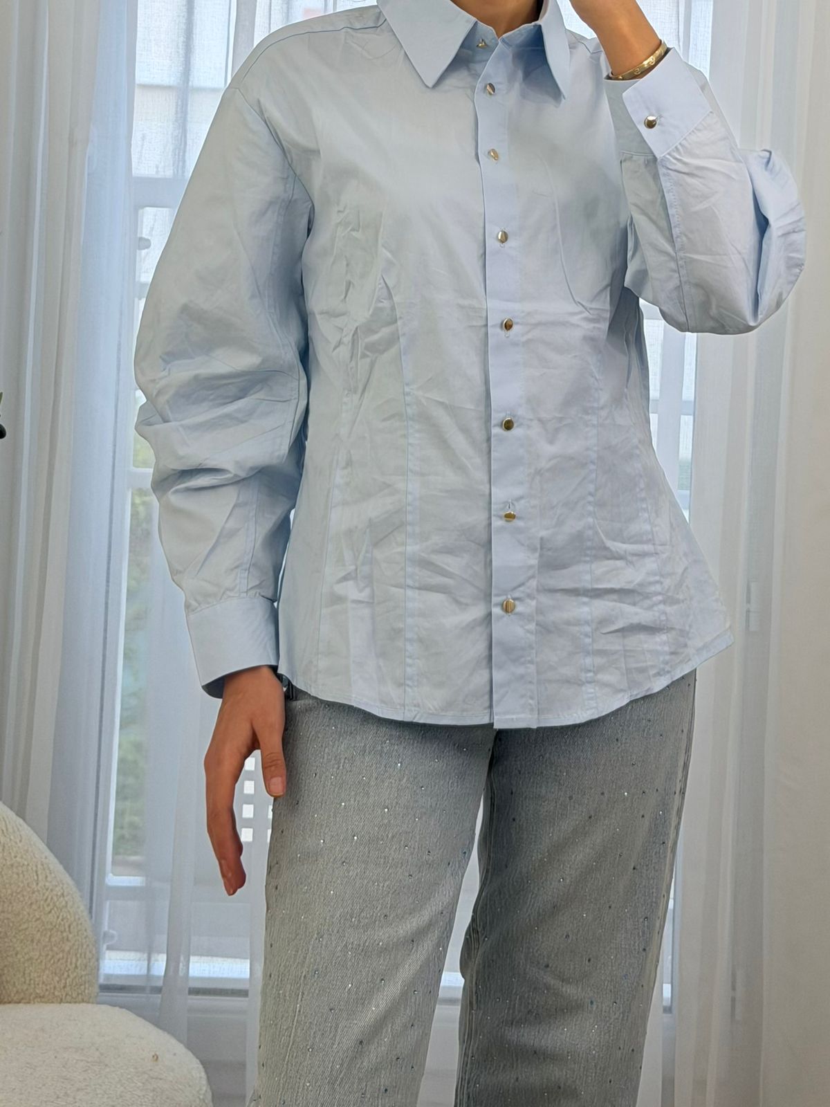 Chemise élégante au design structuré, disponible en blanc et en bleu, parfaite pour un look chic et moderne. Sa coupe légèrement cintrée met en valeur la silhouette tout en restant confortable, avec des manches longues subtilement travaillées qui apportent une touche raffinée. Facile à assortir avec un pantalon, une jupe ou un jean, elle convient aussi bien pour le travail que pour une tenue quotidienne élégante. Une pièce intemporelle à avoir absolument dans son dressing 🤍💙