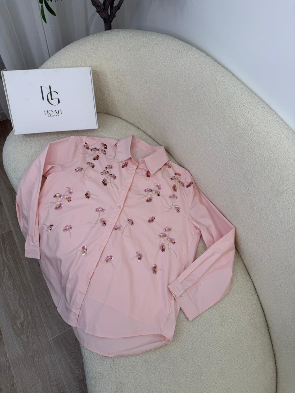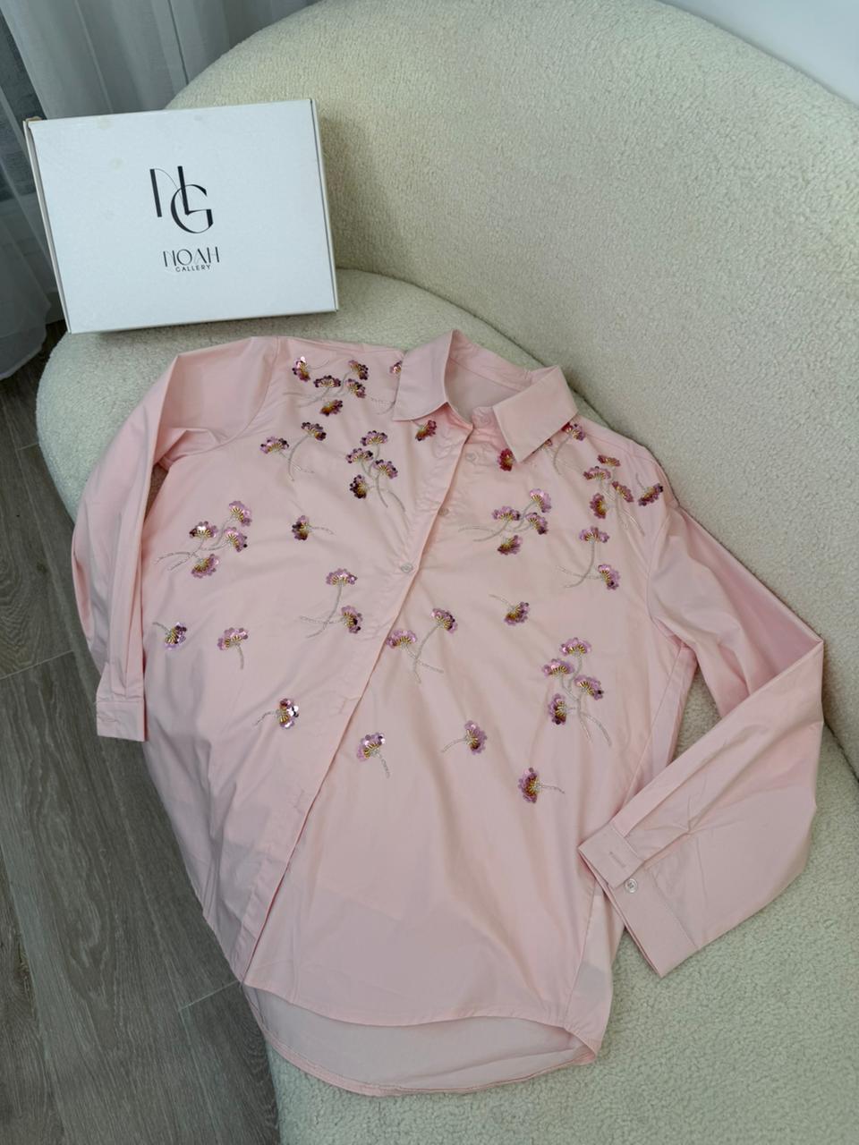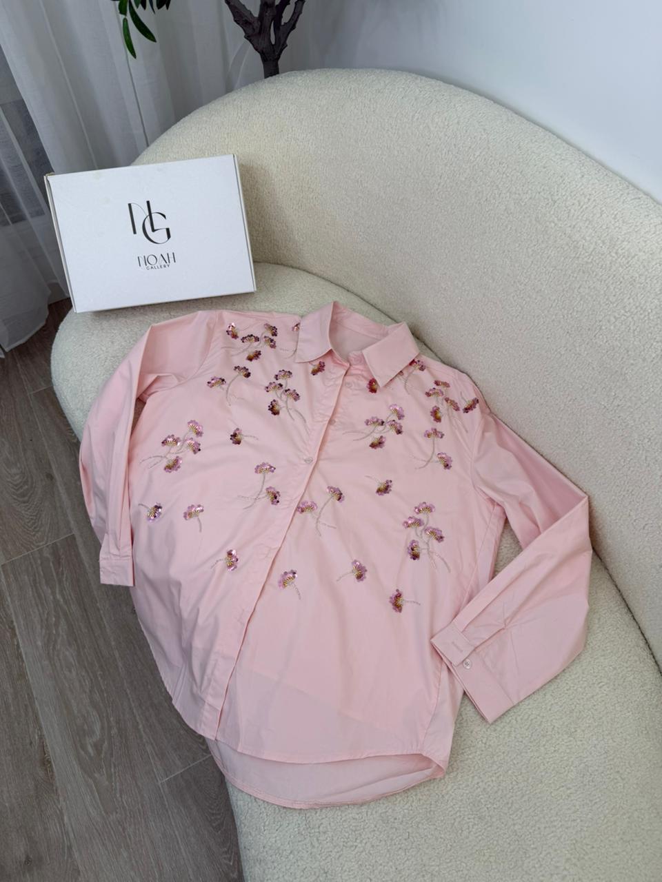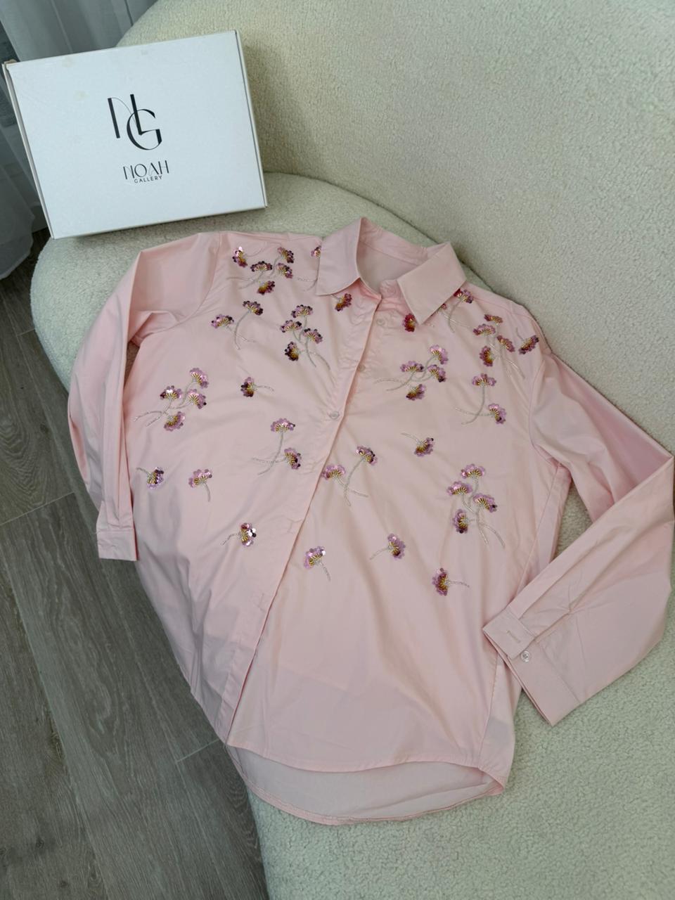 Cette chemise séduit par sa douce couleur rose et ses délicates fleurs brodées à la main qui lui donnent un style élégant et féminin. Sa coupe oversize offre un confort parfait et une allure moderne très tendance. Confectionnée dans un tissu léger avec un joli tombé, elle se porte facilement avec un jean ou un pantalon chic pour un look frais et raffiné. Une pièce unique qui apportera une touche de charme et d’originalité à votre tenue. ✨🌸