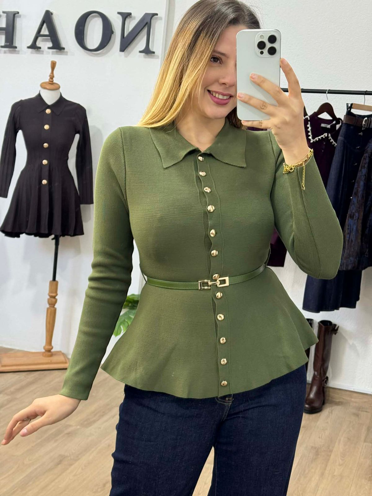 Cette chemise allie élégance et modernité grâce à sa coupe structurée et ses boutons dorés qui ajoutent une touche raffinée. Son tissu fluide met en valeur la silhouette tout en offrant un confort agréable au quotidien. Accompagnée d’une fine ceinture, elle dessine joliment la taille et apporte un style chic, idéal pour un look soigné, que ce soit pour une sortie, le travail ou une occasion spéciale.
