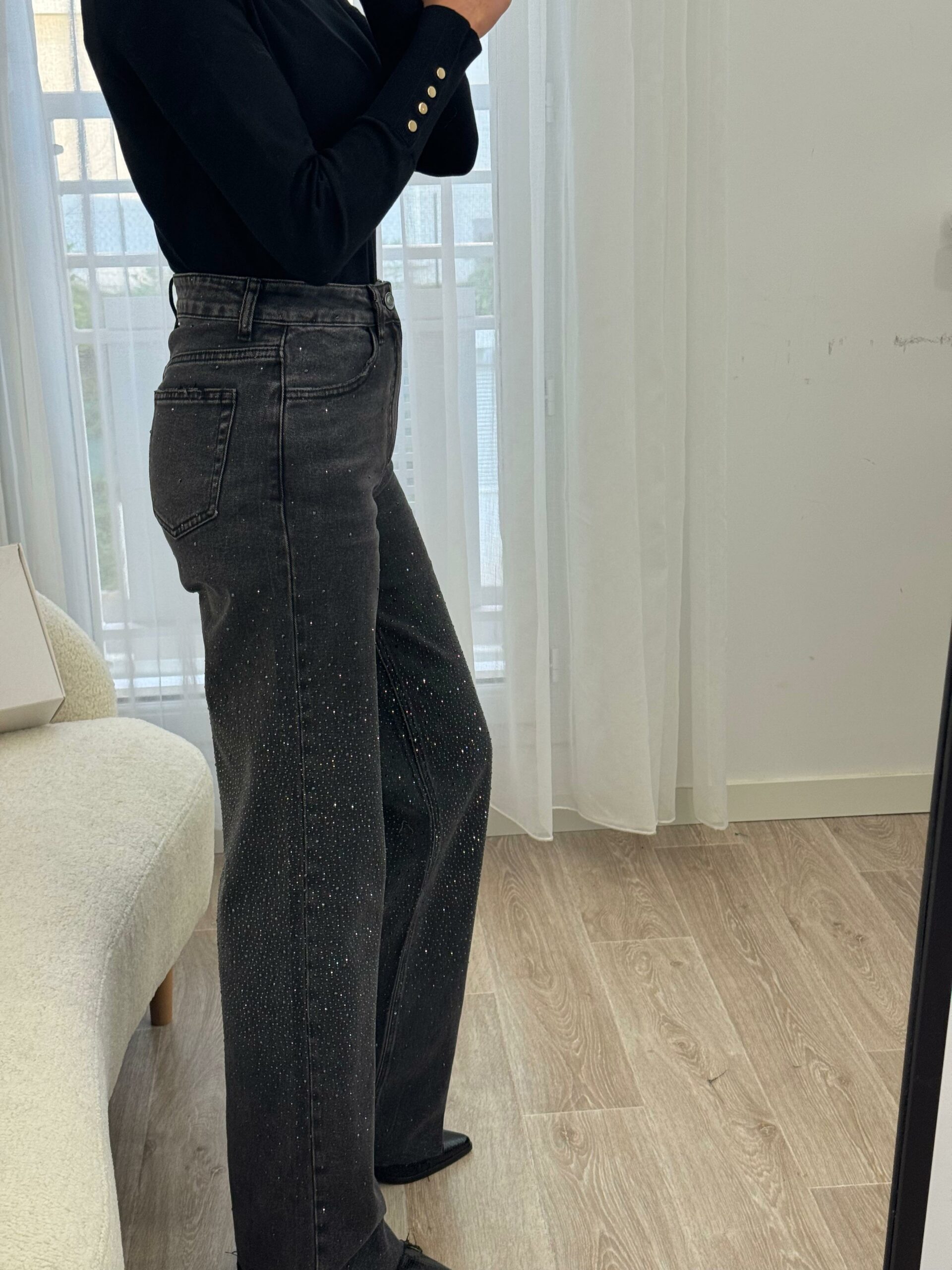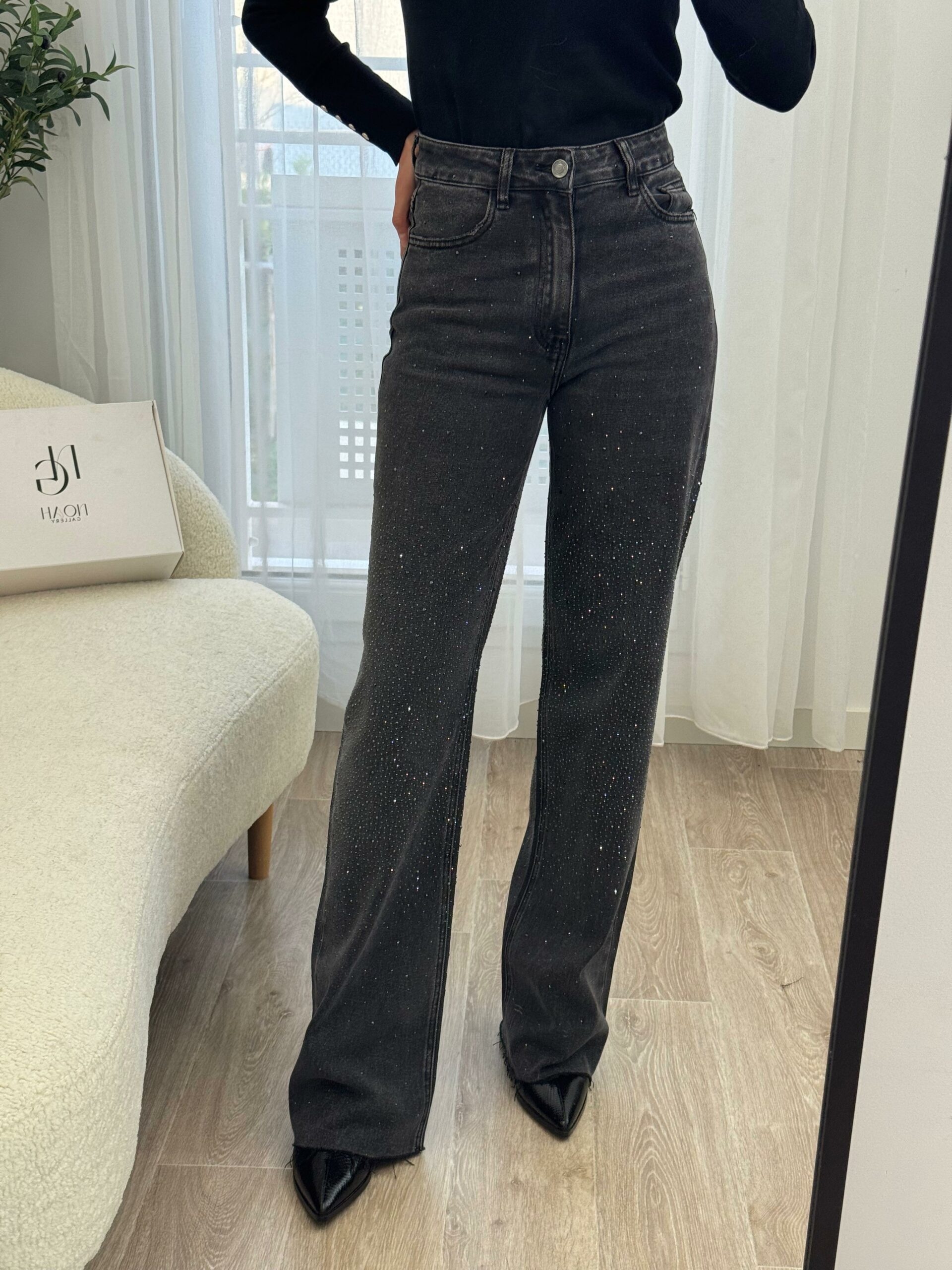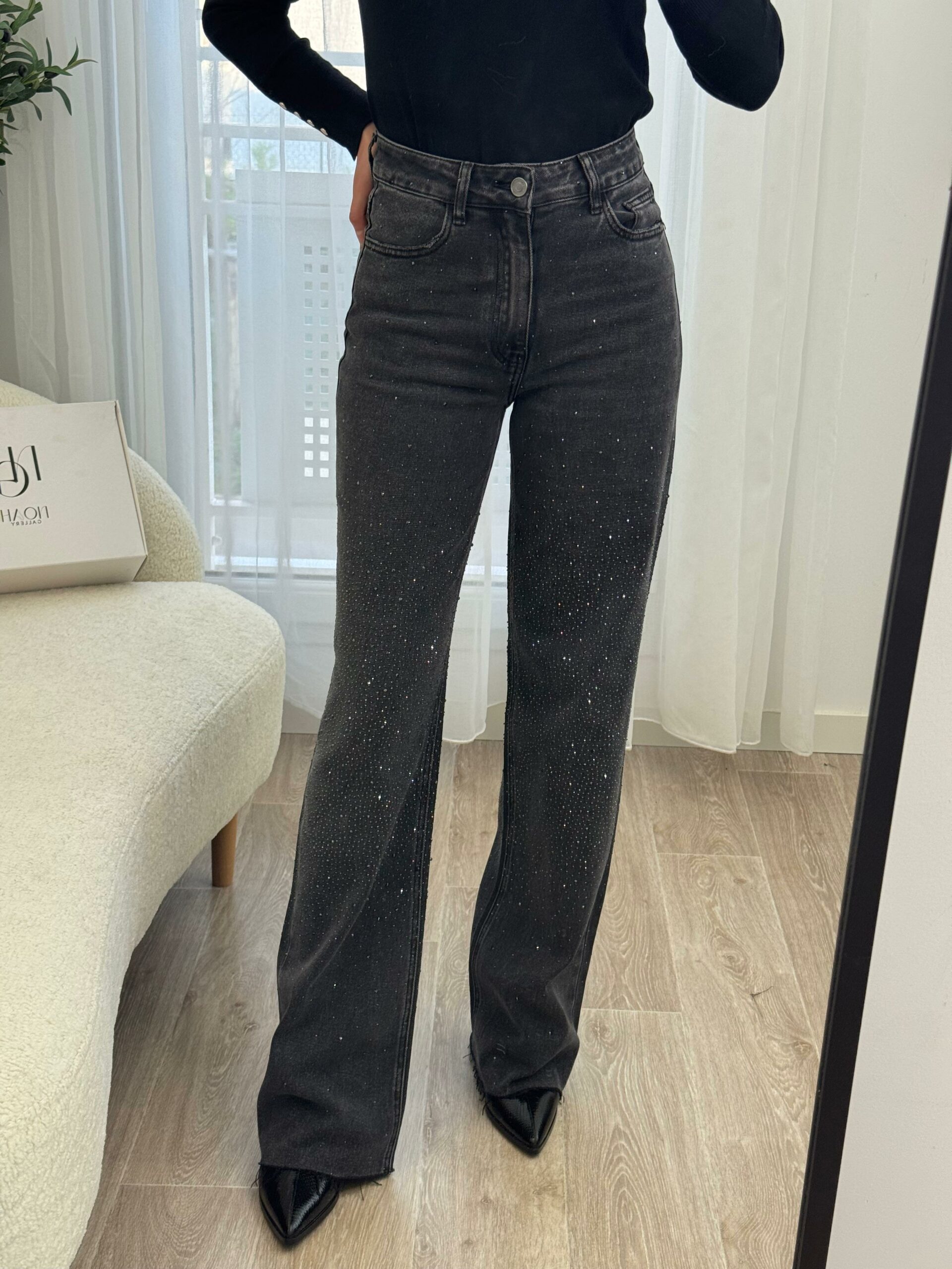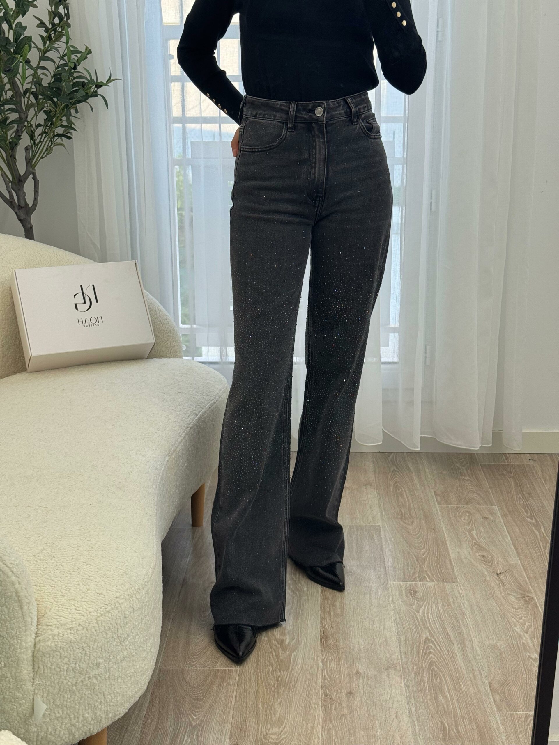 Ce jean gris orné de strass allie parfaitement élégance et modernité. Sa coupe flatteuse met en valeur la silhouette, tandis que les détails scintillants apportent une touche glamour et raffinée. Confortable et tendance, il se porte aussi bien avec un top simple pour un look chic décontracté qu’avec une pièce plus habillée pour une tenue sophistiquée. Un jean audacieux qui illumine votre style en toute occasion. ✨