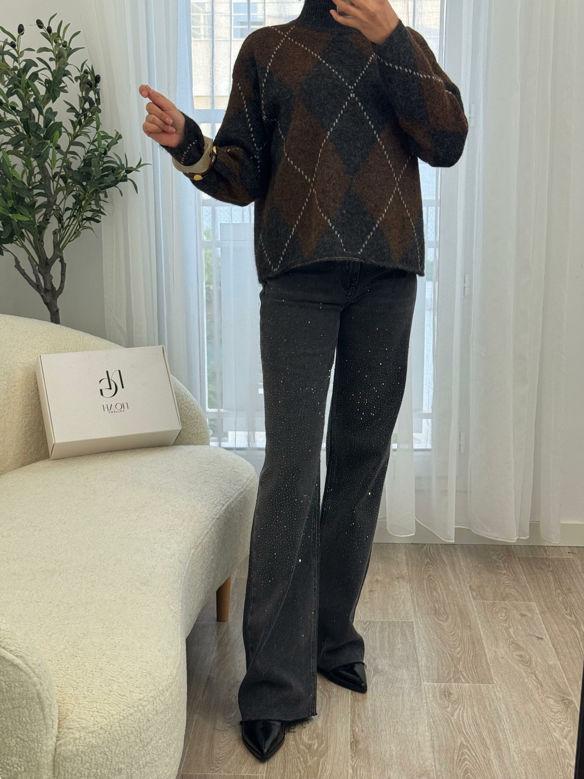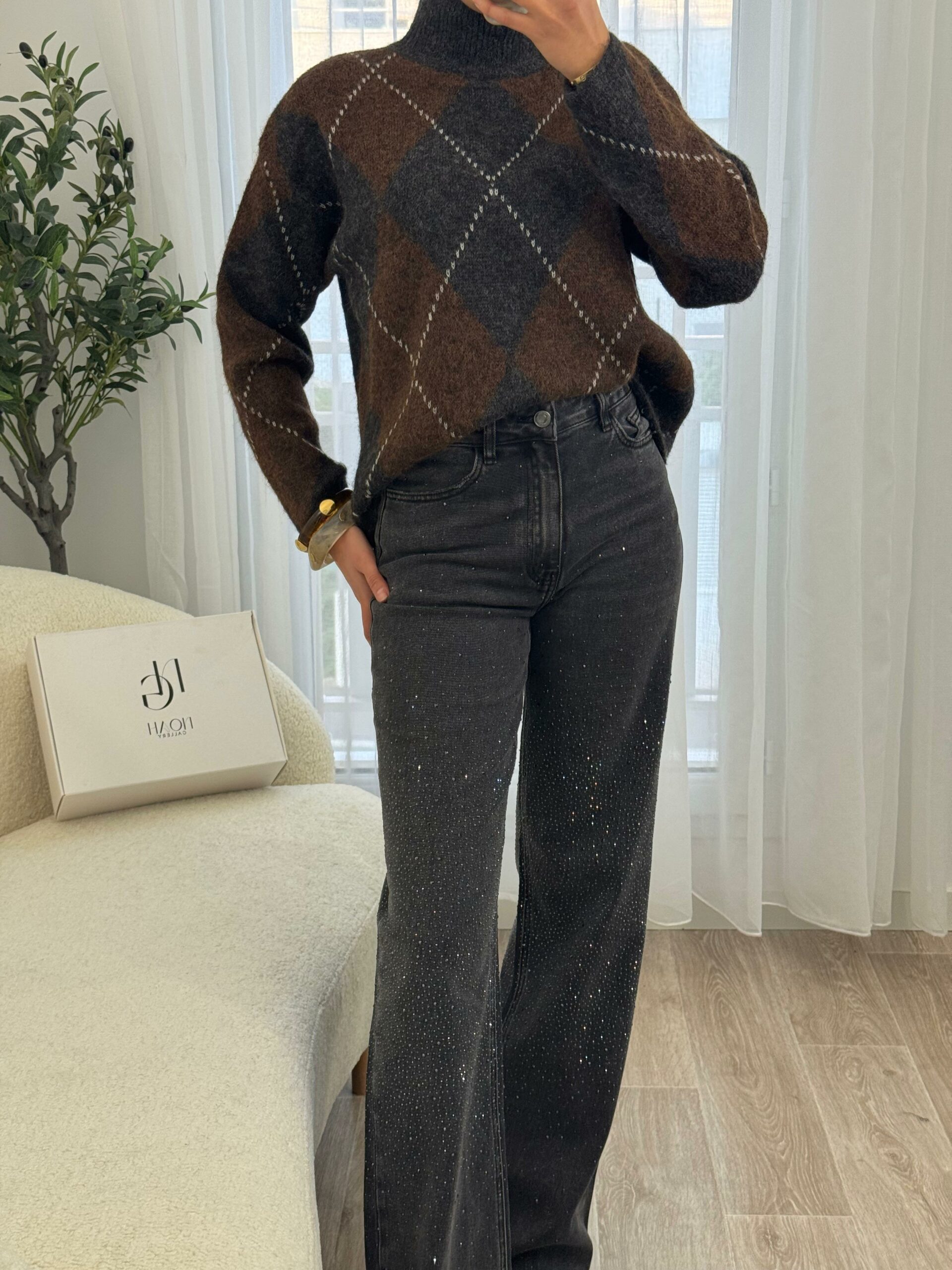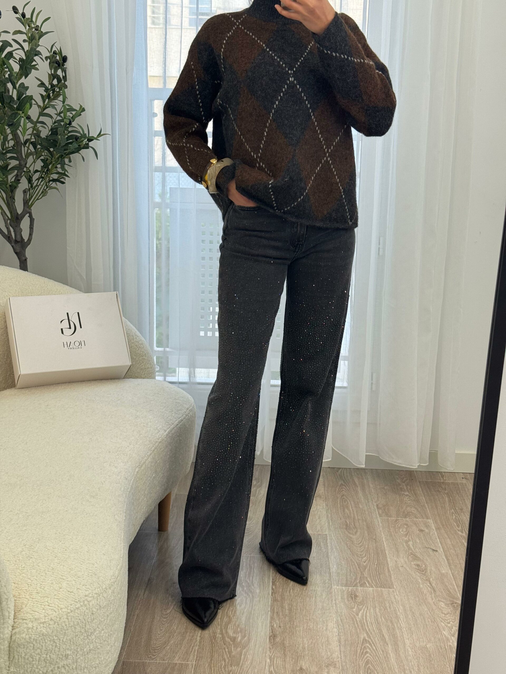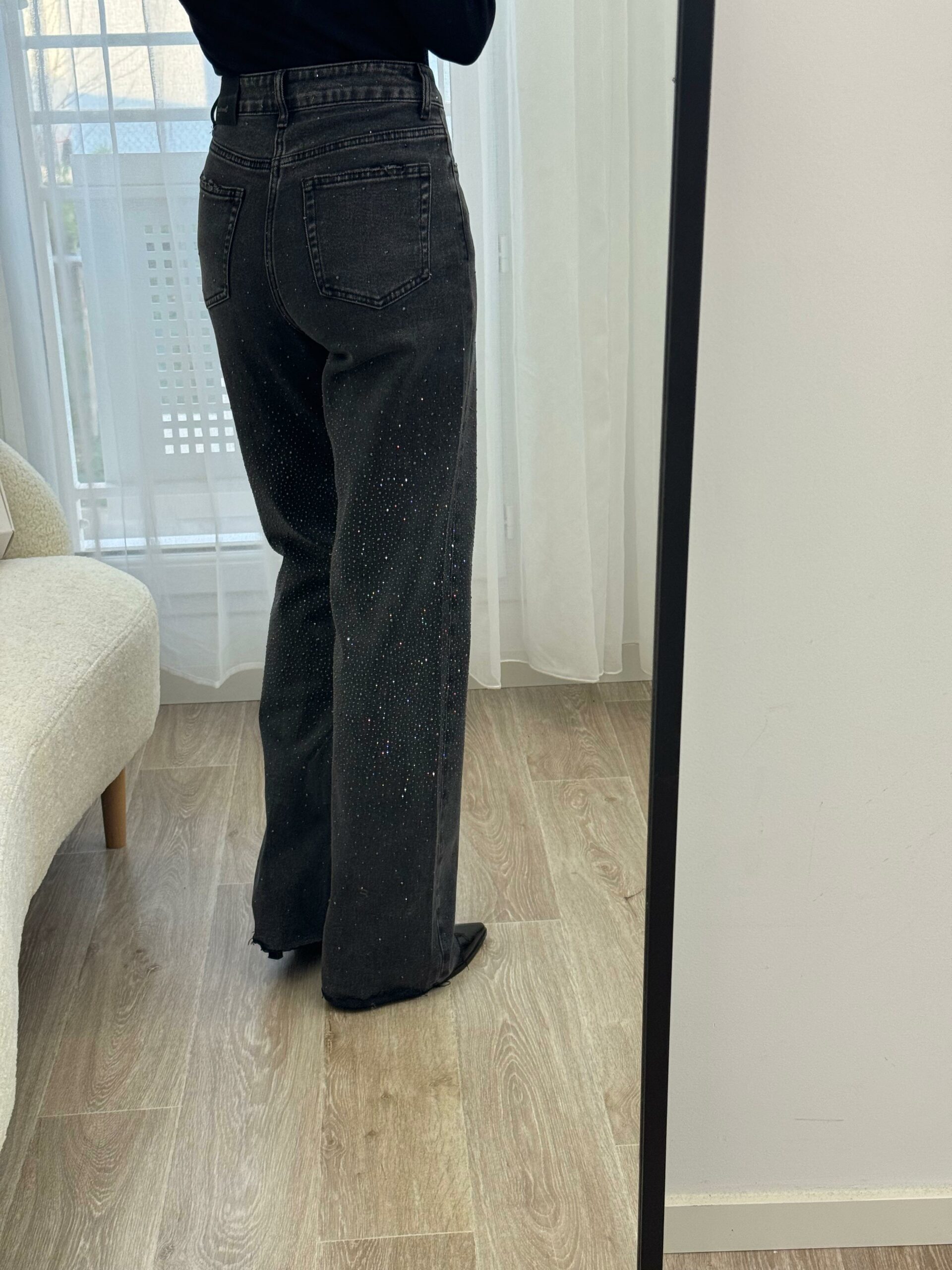 Ce jean gris orné de strass allie parfaitement élégance et modernité. Sa coupe flatteuse met en valeur la silhouette, tandis que les détails scintillants apportent une touche glamour et raffinée. Confortable et tendance, il se porte aussi bien avec un top simple pour un look chic décontracté qu’avec une pièce plus habillée pour une tenue sophistiquée. Un jean audacieux qui illumine votre style en toute occasion. ✨