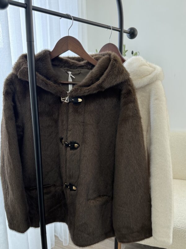 Un duffle coat douillet en fausse fourrure, parfait pour affronter l’hiver avec style. Capuche enveloppante, fermoirs duffle élégants et poches pratiques. Sa texture ultra-moelleuse et sa coupe moderne en font un essentiel chaud et tendance. Disponible en écru et marron chocolat.