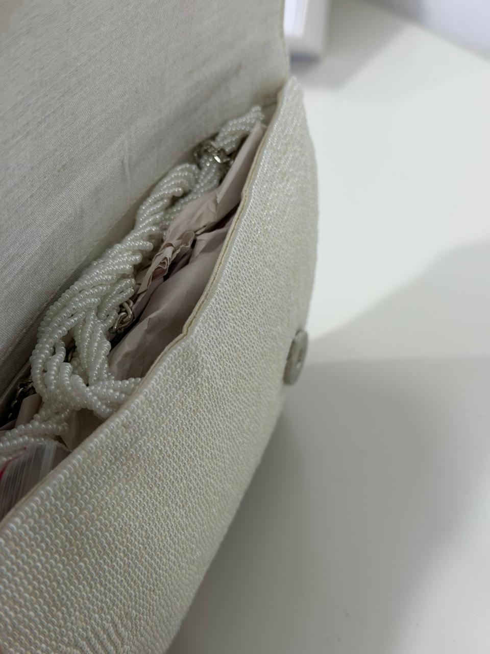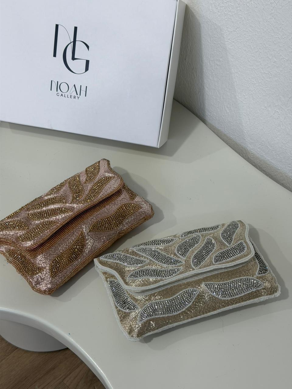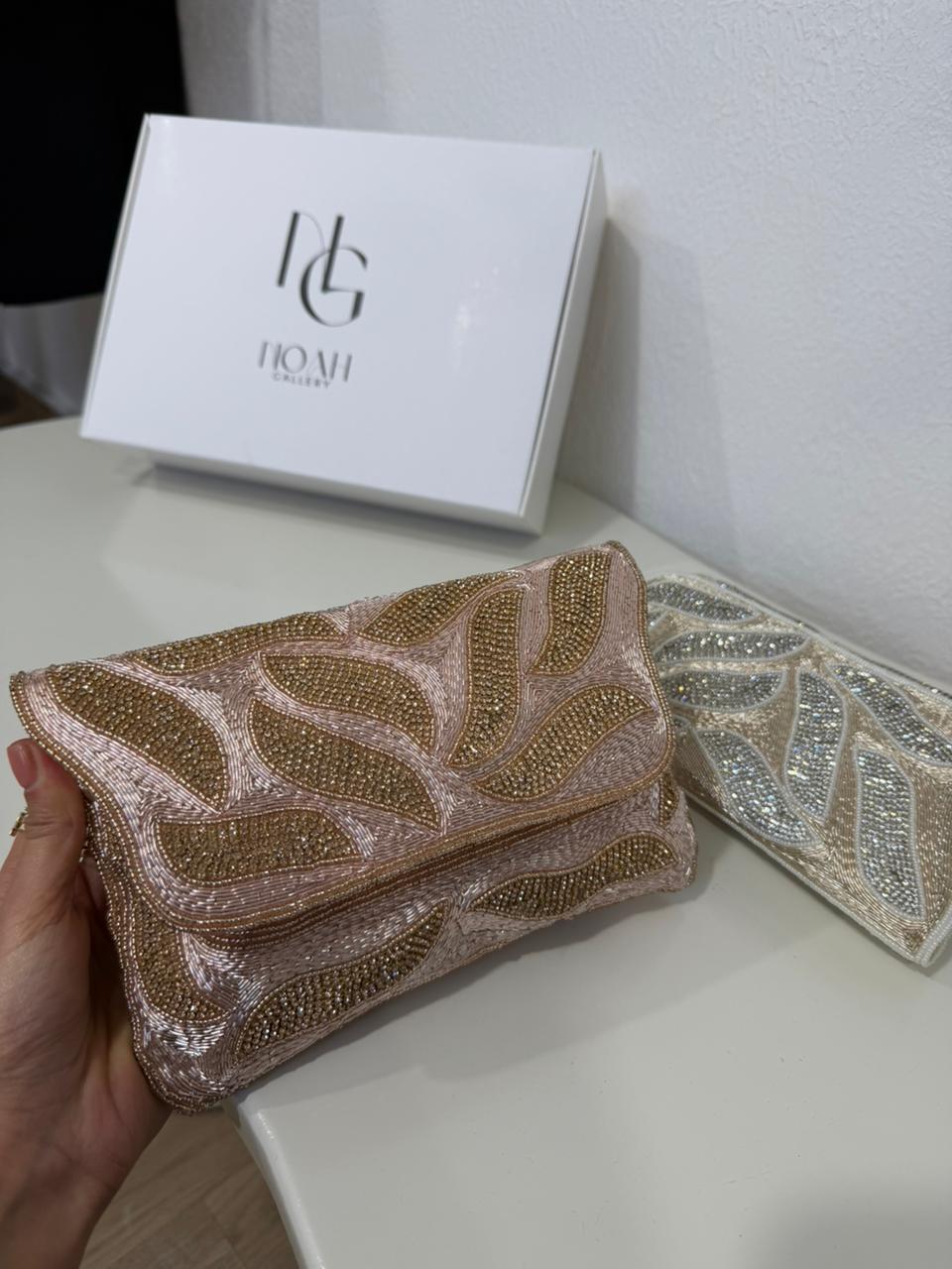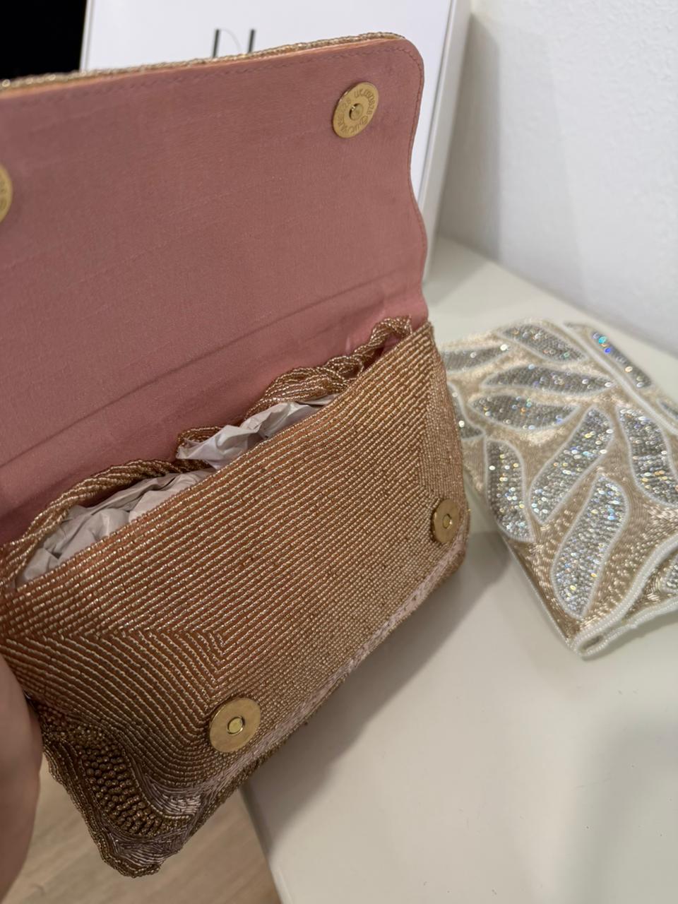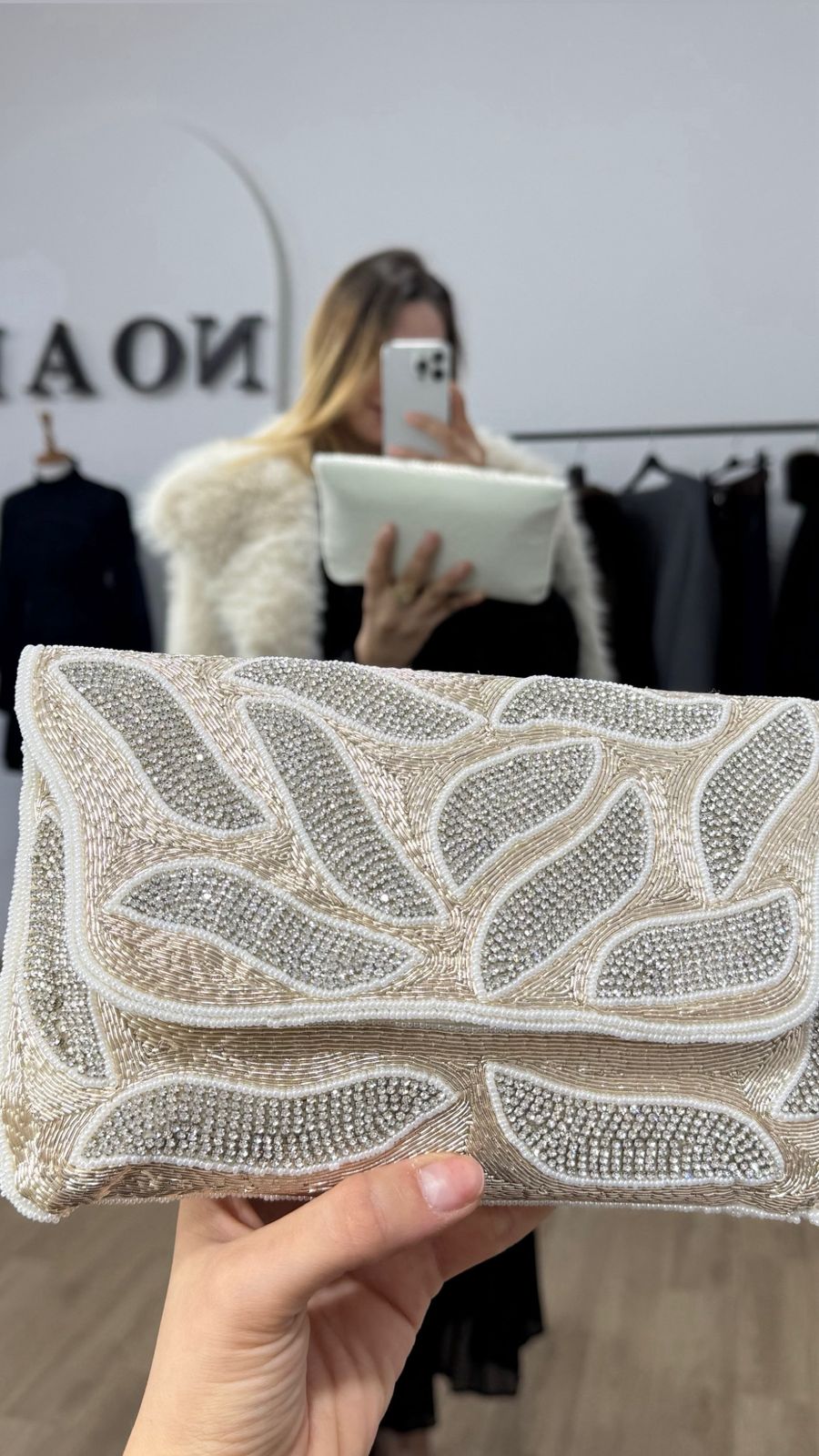 Pochette de soirée faite à la main, ornée de canetille, alliant finesse artisanale et élégance sophistiquée. Chaque détail est minutieusement travaillé pour offrir un rendu précieux et raffiné, reflétant un véritable savoir-faire. Idéale pour sublimer une tenue de soirée ou une occasion spéciale, elle apporte une touche luxueuse et intemporelle. Un accessoire unique, symbole de délicatesse, d’authenticité et de chic.