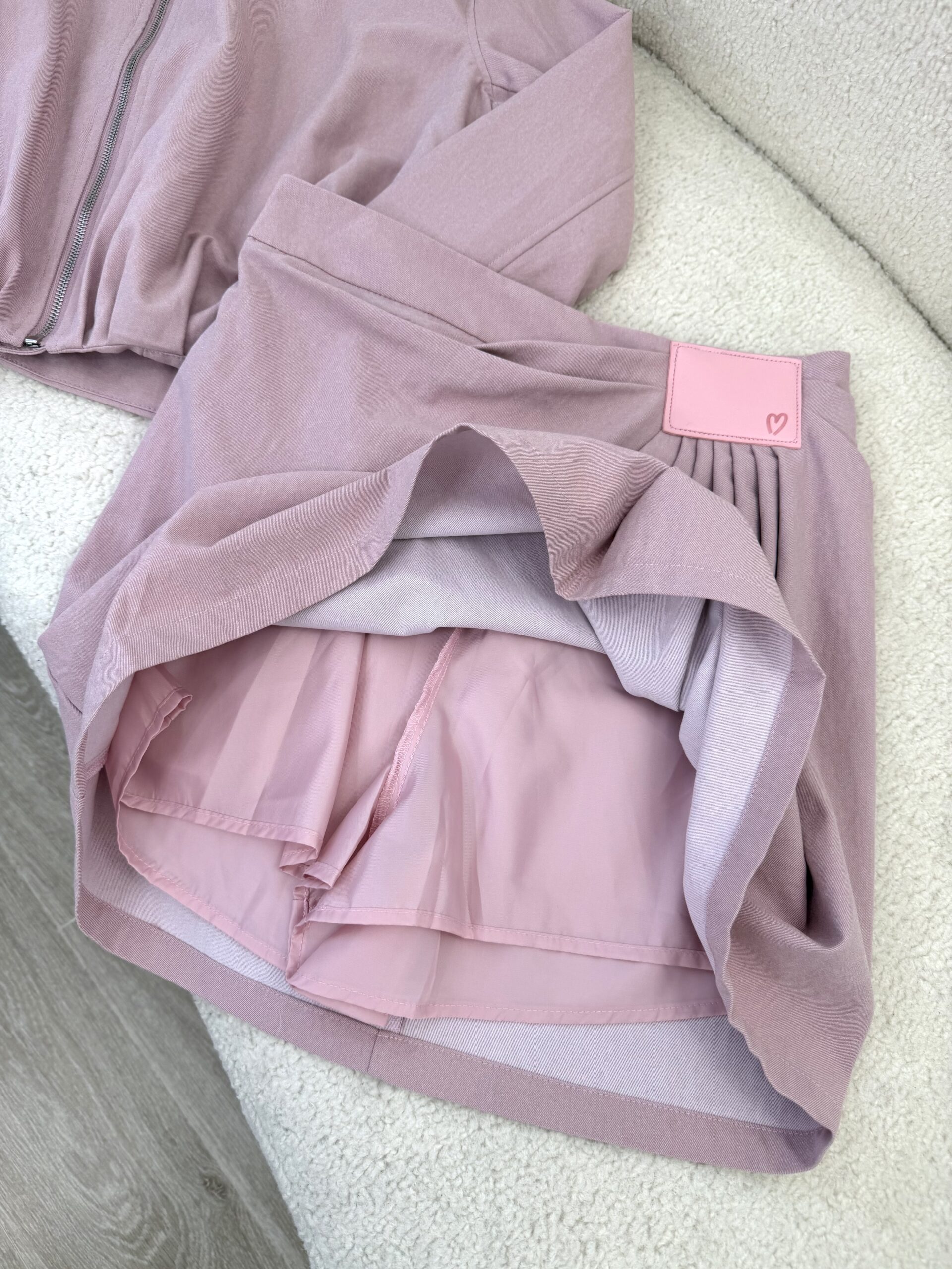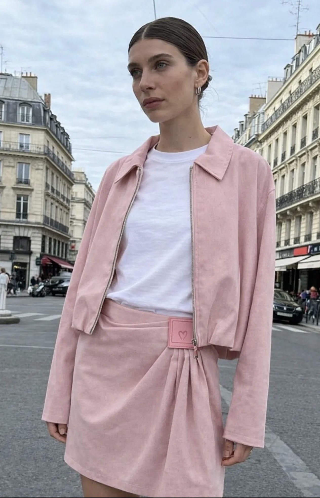 Craquez pour l’ensemble Rosalie, un duo rose poudré ultra tendance. Il se compose d’une veste courte zippée au col structuré et d’une jupe-short élégamment drapée, alliant féminité et confort. Sa coupe moderne sublime la silhouette tandis que sa teinte douce apporte une touche chic et actuelle. L’ensemble idéal pour un look stylé, de jour comme de nuit.