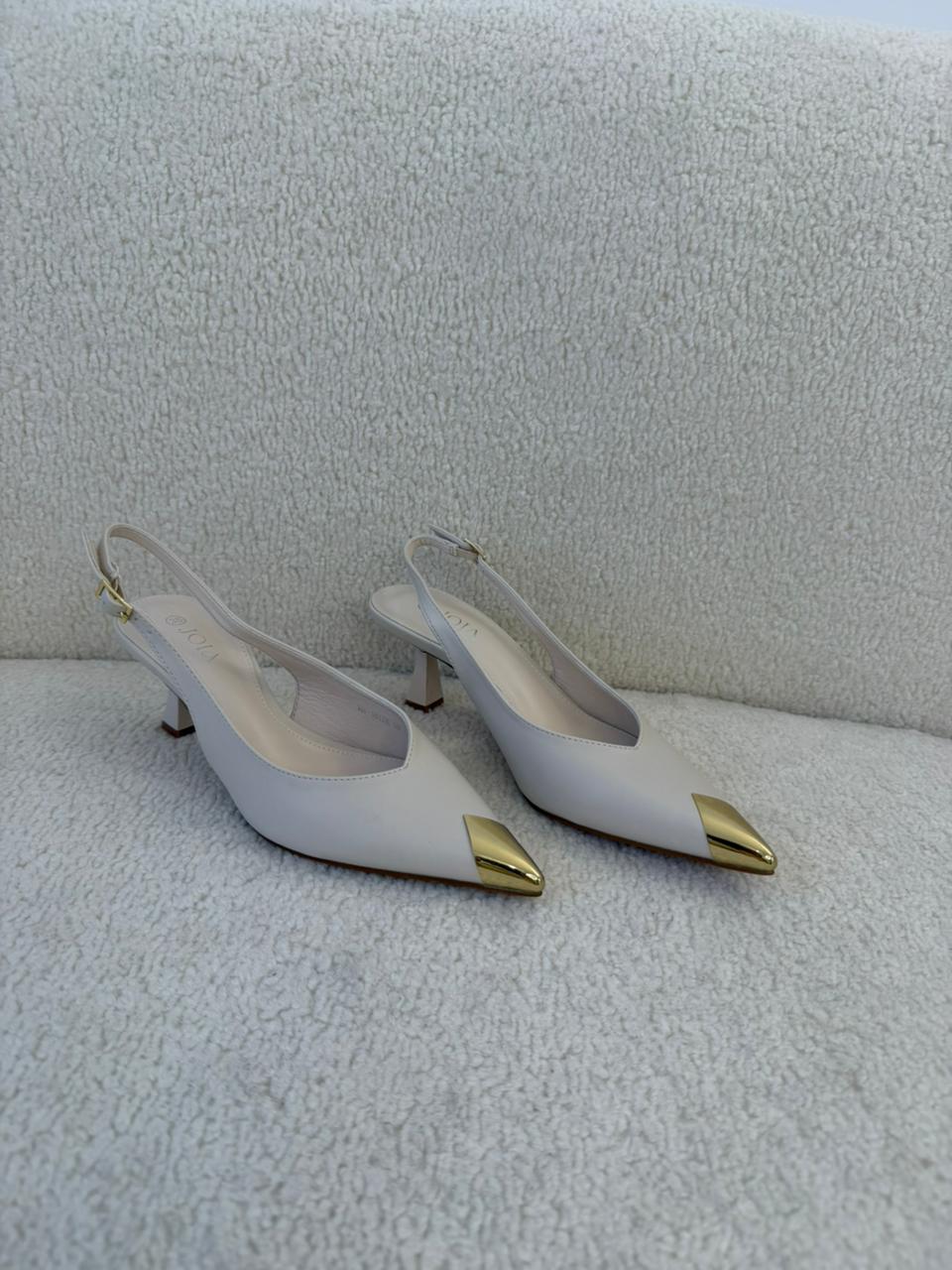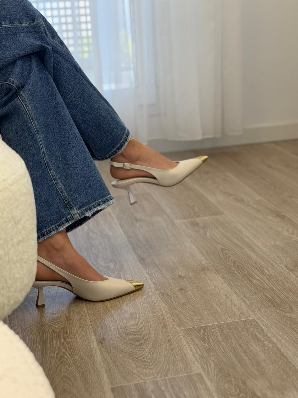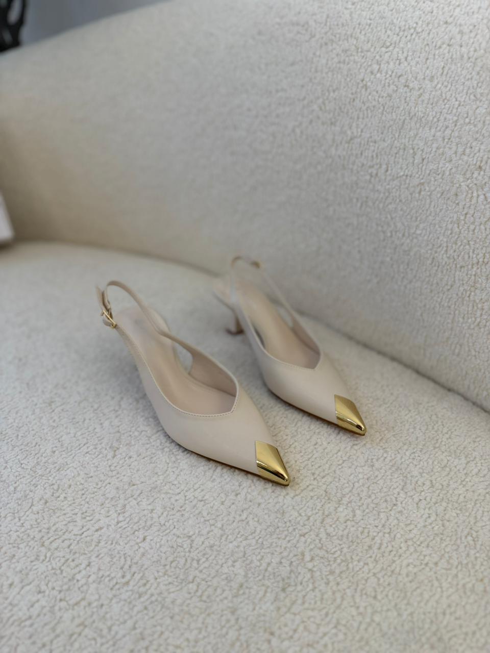 Escarpin beige au design élégant, rehaussé d’une délicate touche dorée qui apporte une note chic et raffinée. Sa silhouette féminine et intemporelle assure un porté confortable tout en sublimant la démarche. Facile à assortir avec des tenues habillées ou plus sobres, c’est la paire idéale pour les occasions spéciales comme pour un look élégant au quotidien. ✨👠