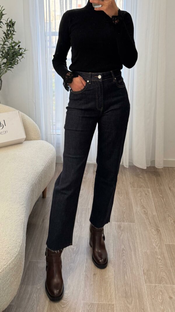 Ce jean bleu brut est une pièce essentielle pour un look à la fois chic et décontracté. Confectionné dans un denim de qualité, il offre une coupe droite flatteuse qui met en valeur la silhouette tout en garantissant un confort optimal. Sa teinte bleu profond apporte une touche d’élégance intemporelle, facile à associer avec toutes vos tenues. Idéal pour le quotidien comme pour une sortie plus habillée, ce jean s’adapte à tous les styles avec simplicité et raffinement. Taille haute et tissu légèrement stretch, il épouse parfaitement les formes