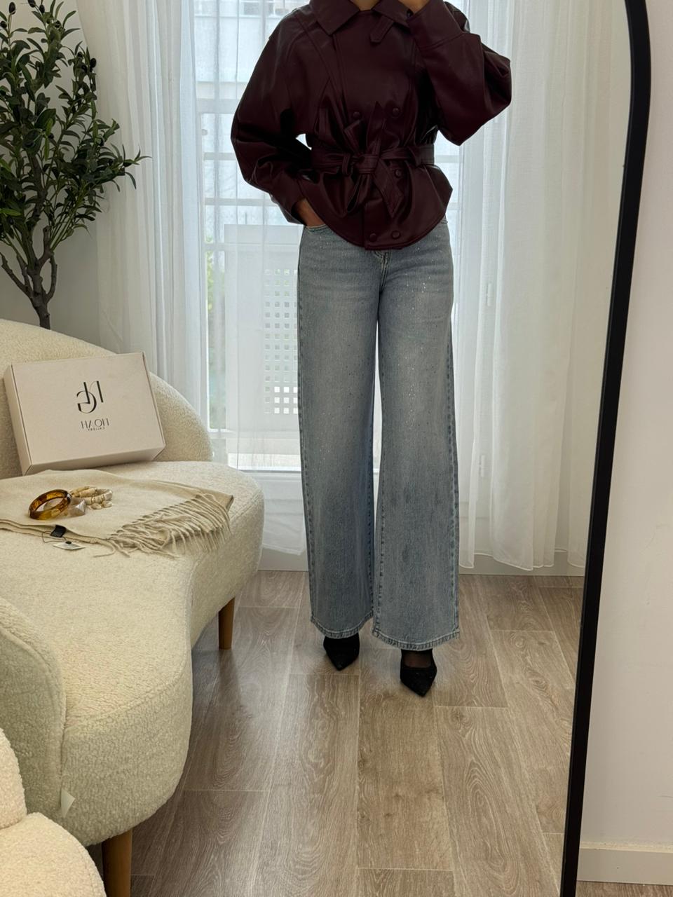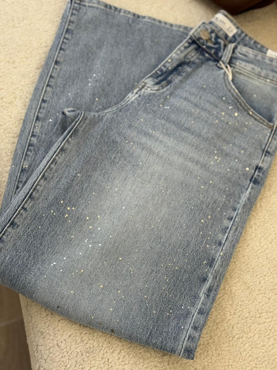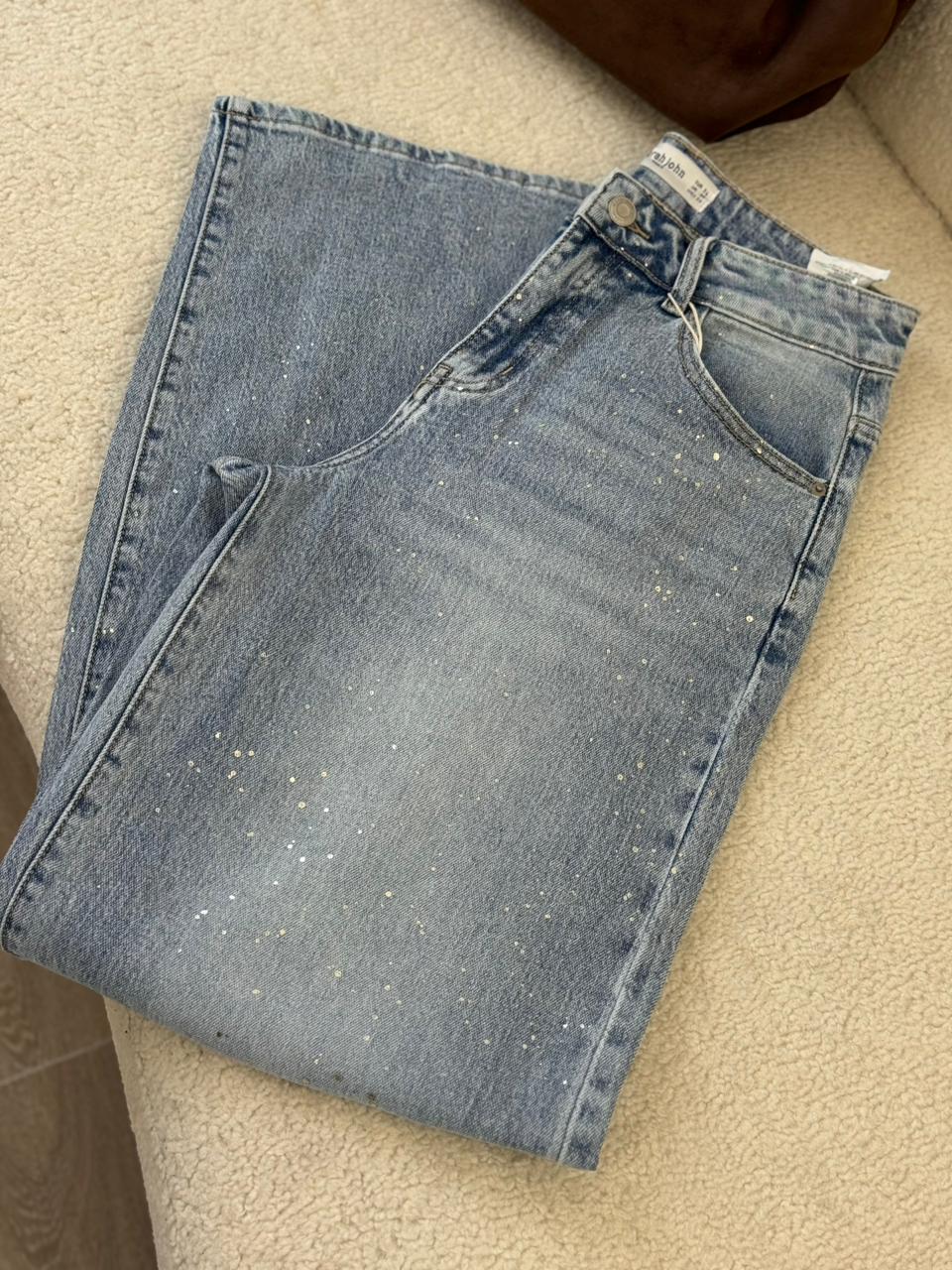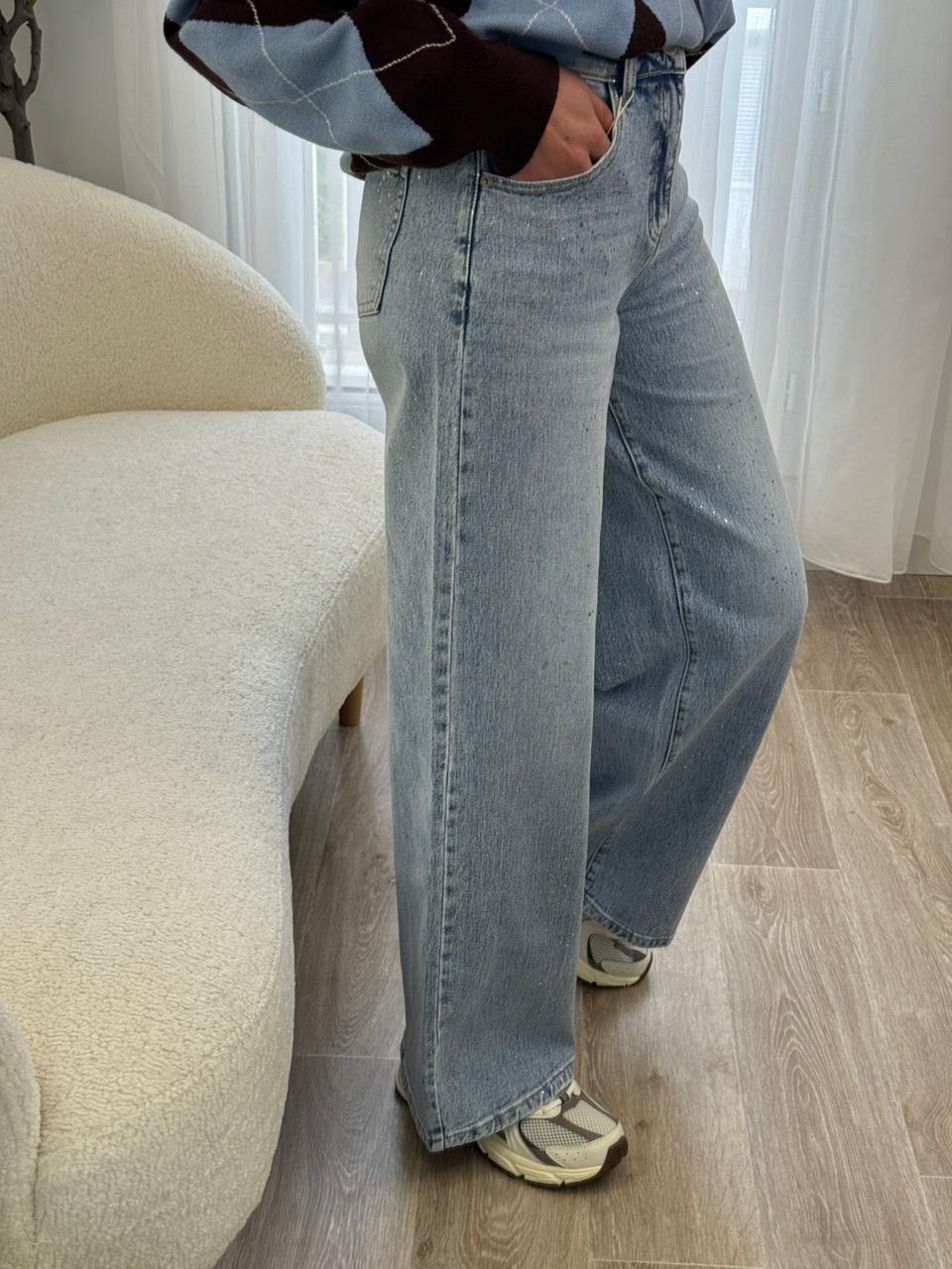 Jean coupe large au style moderne et décontracté, confectionné dans un denim bleu clair avec de délicats détails scintillants qui apportent une touche lumineuse et tendance. Sa taille confortable et sa coupe fluide allongent la silhouette tout en offrant une grande liberté de mouvement. Facile à associer avec un pull, une chemise ou un top simple, c’est la pièce idéale pour un look casual chic au quotidien.