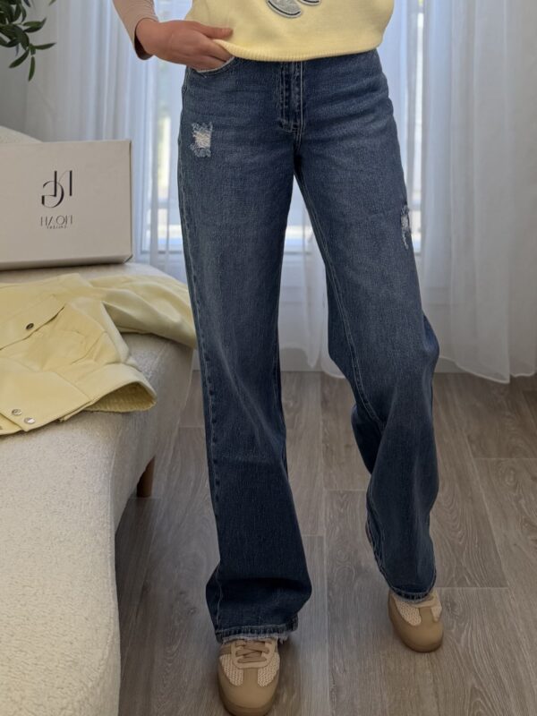 Confectionné dans un denim de qualité, il se distingue par son effet légèrement délavé et ses petits détails usés subtils qui apportent une touche casual tendance.