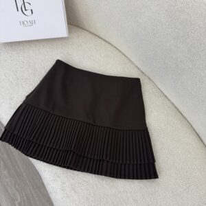 Jupe courte marron au design élégant, dotée d’un plissé en bas qui apporte du mouvement et une touche féminine. Sa coupe structurée à la taille assure un porté flatteur et confortable. Facile à associer avec un pull, une chemise ou un blazer pour un look chic ou casual.