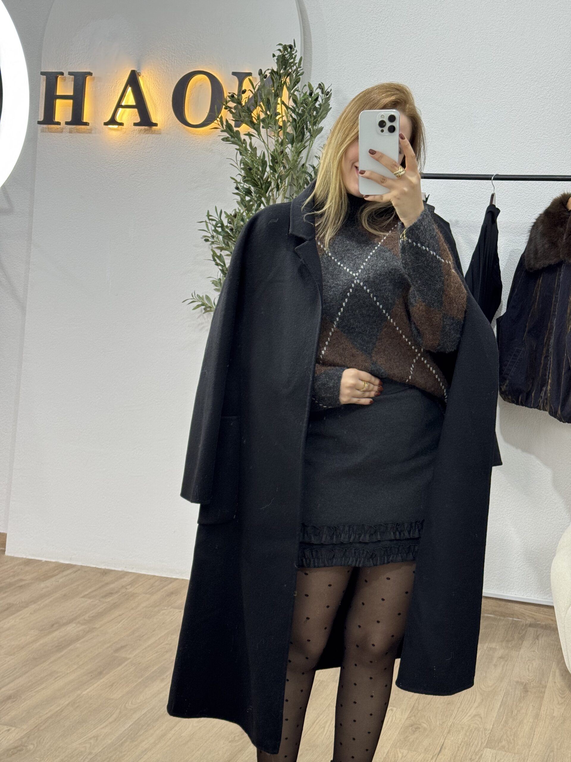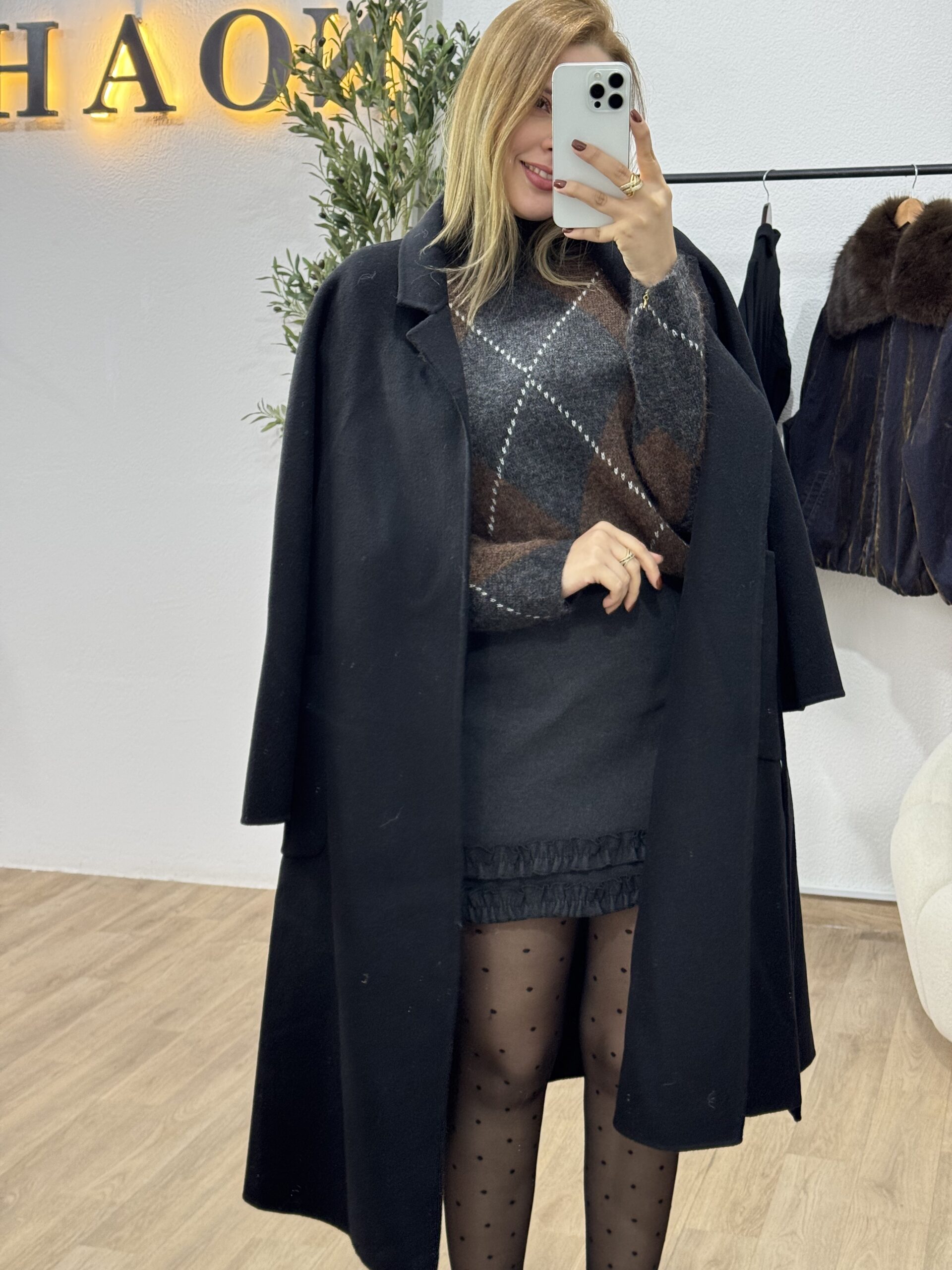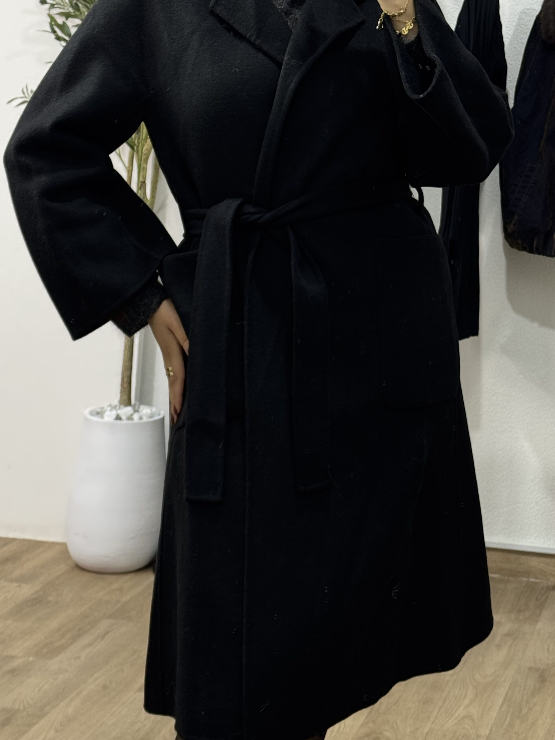 Manteau long ceinturé en laine mélangée (70 %), au toucher cachemire. Coupe élégante et intemporelle, offrant chaleur et sophistication au quotidien.
