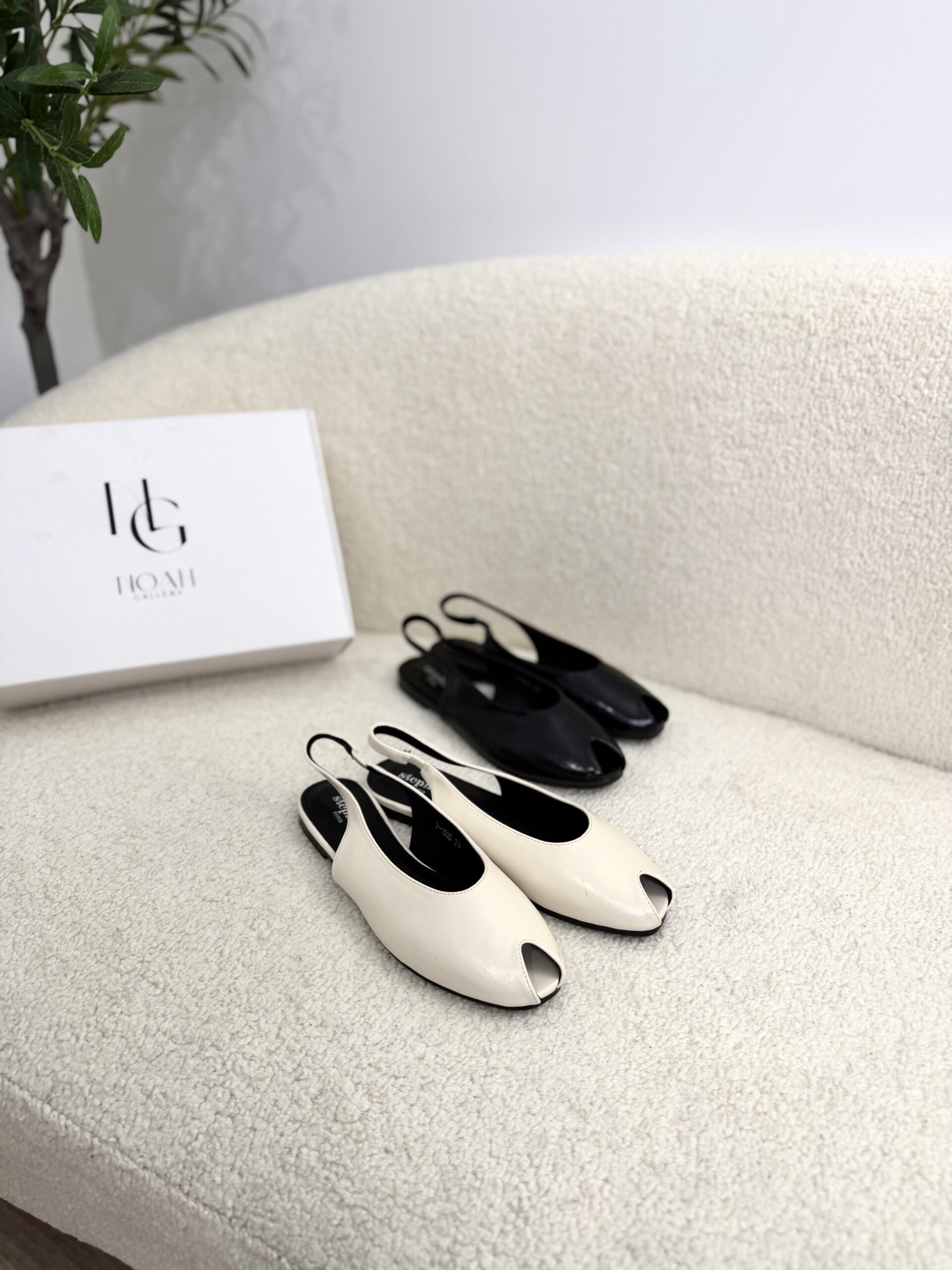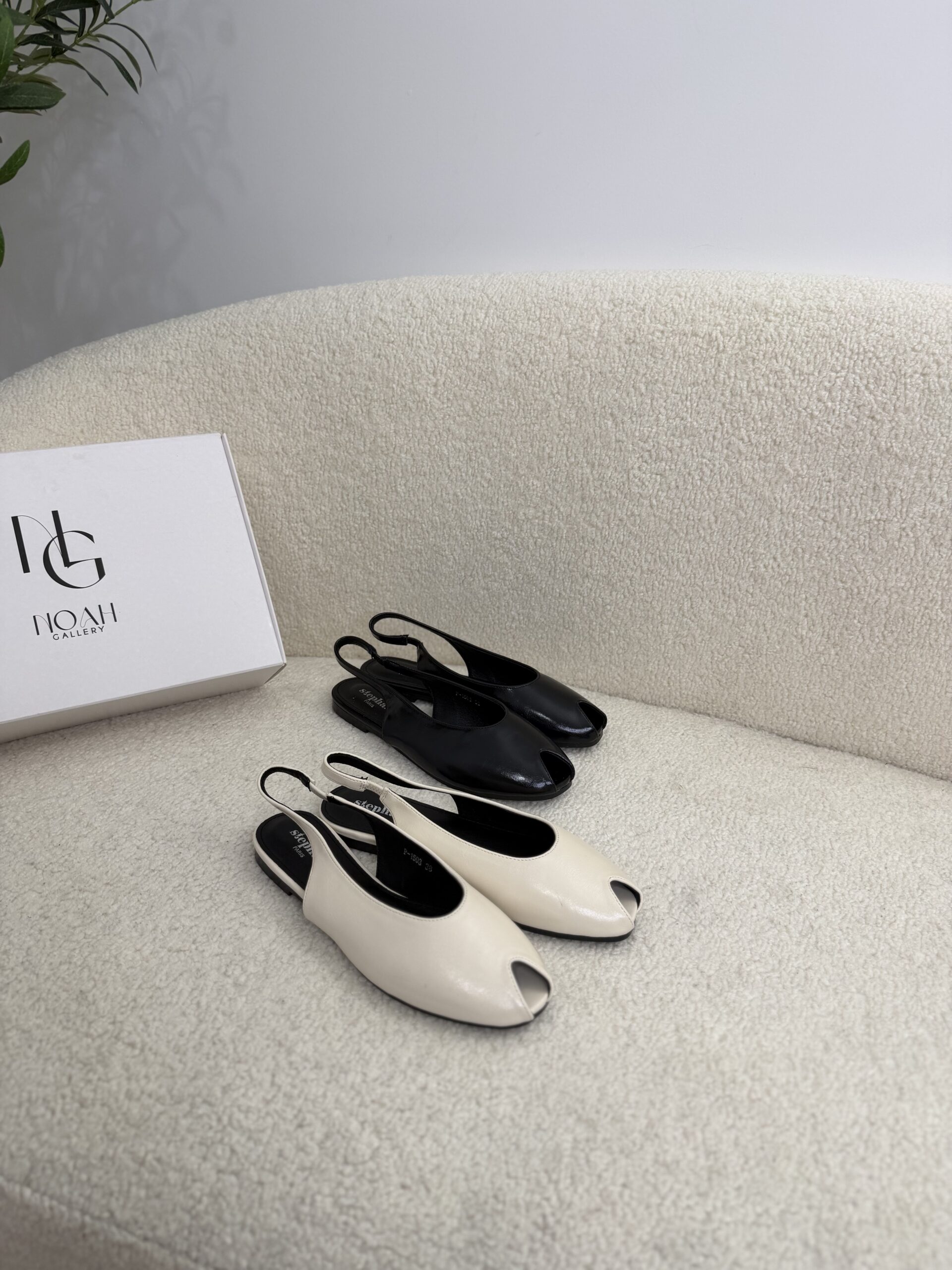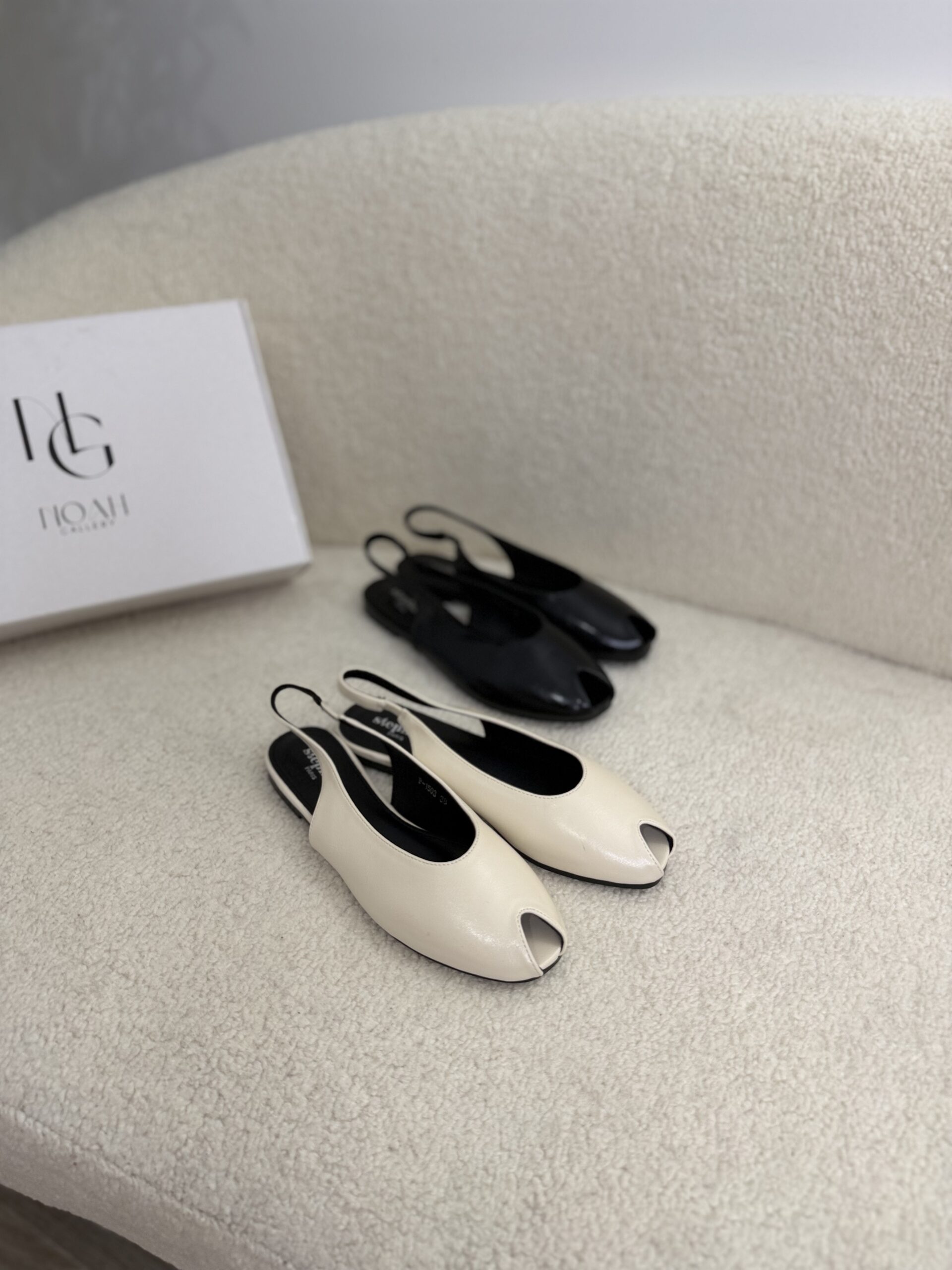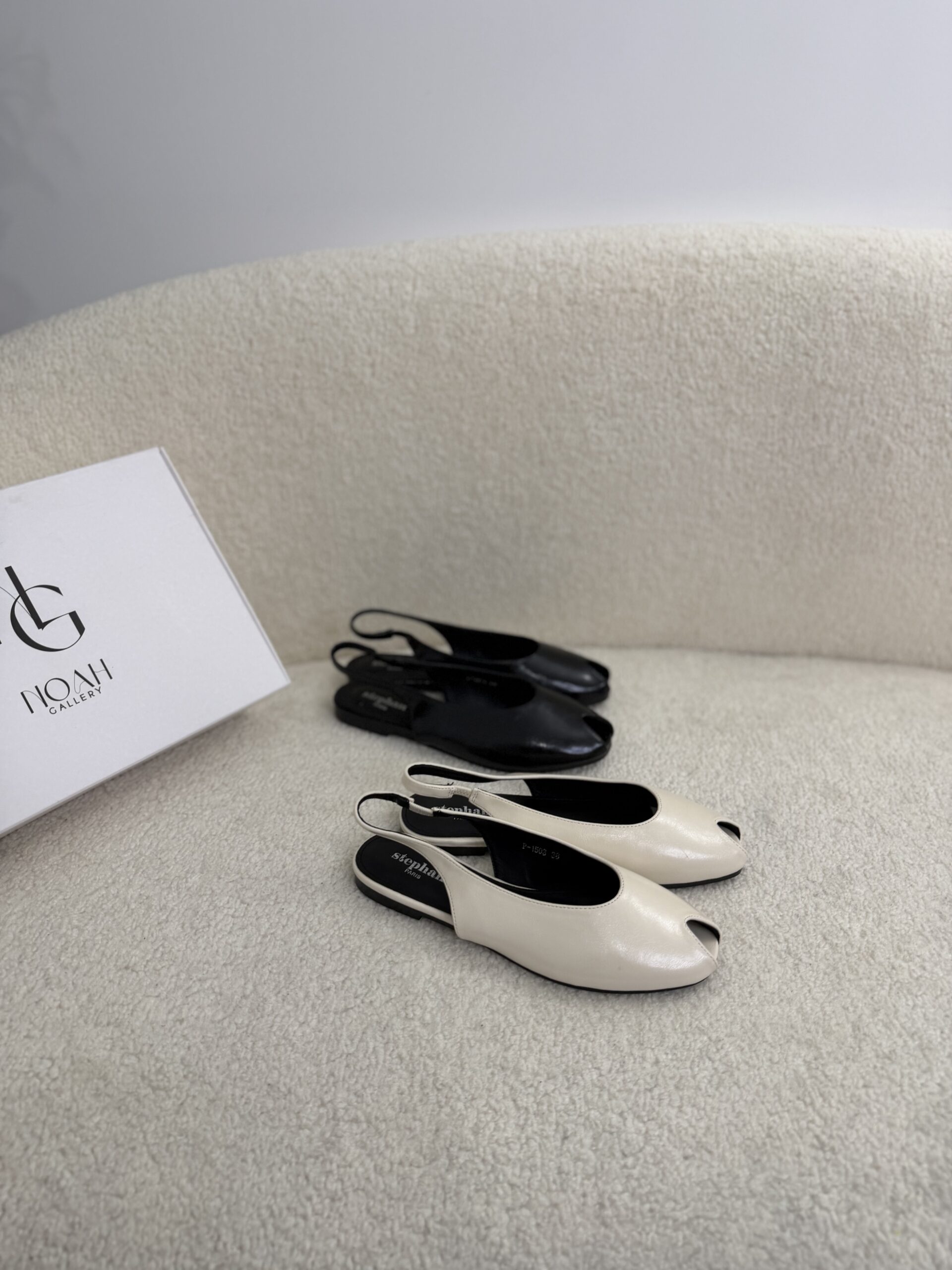 Mules plates en noir brillant au design épuré et sophistiqué. Bout légèrement ouvert pour une touche moderne, avec une finition lisse qui apporte chic et minimalisme. Confortables et faciles à porter, elles complètent parfaitement un jean à strass ou une tenue habillée pour un look raffiné et tendance.