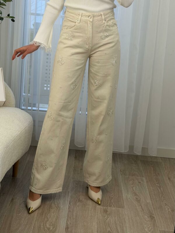 Ce pantalon beige brodé allie élégance et délicatesse grâce à sa coupe droite flatteuse et ses fines broderies qui ajoutent une touche raffinée. Confectionné dans une matière confortable et agréable à porter, il sublime la silhouette tout en restant facile à associer avec différents styles. Parfait pour un look chic au quotidien ou pour une occasion spéciale, ce pantalon apporte une note sophistiquée et féminine à votre tenue. ✨