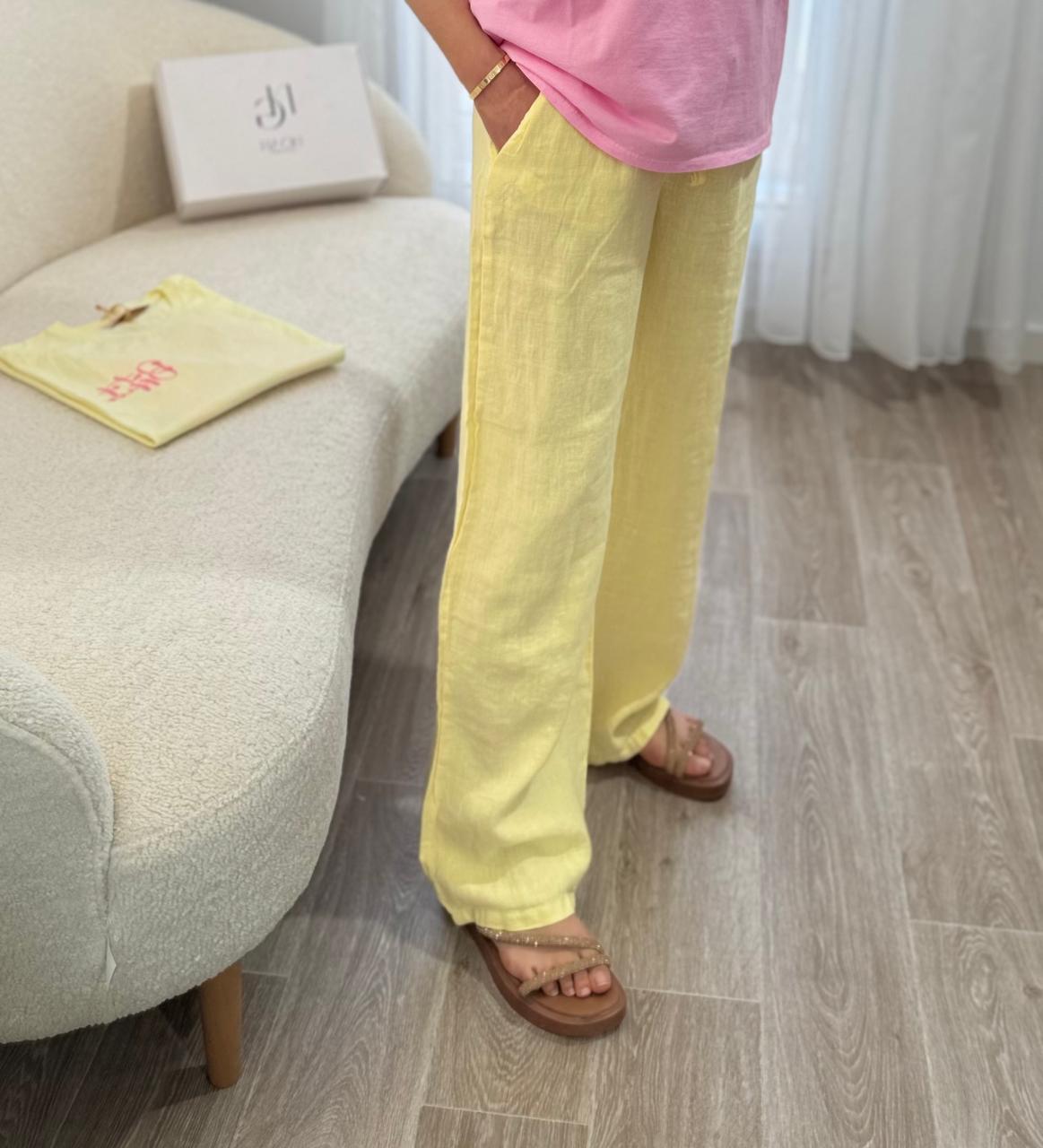 Ce pantalon en lin doux est une véritable invitation à l’évasion. Sa teinte lumineuse et son tombé fluide créent un look frais et naturel, parfait pour une allure bohème-chic en toute simplicité.
