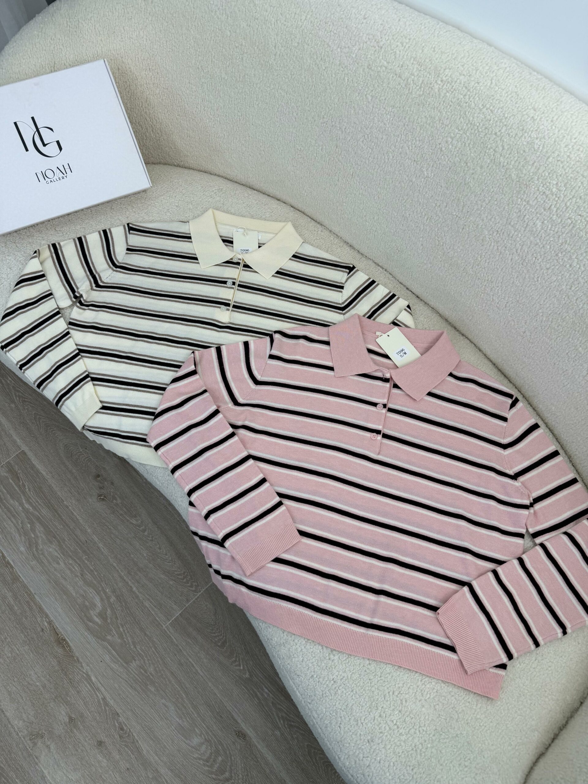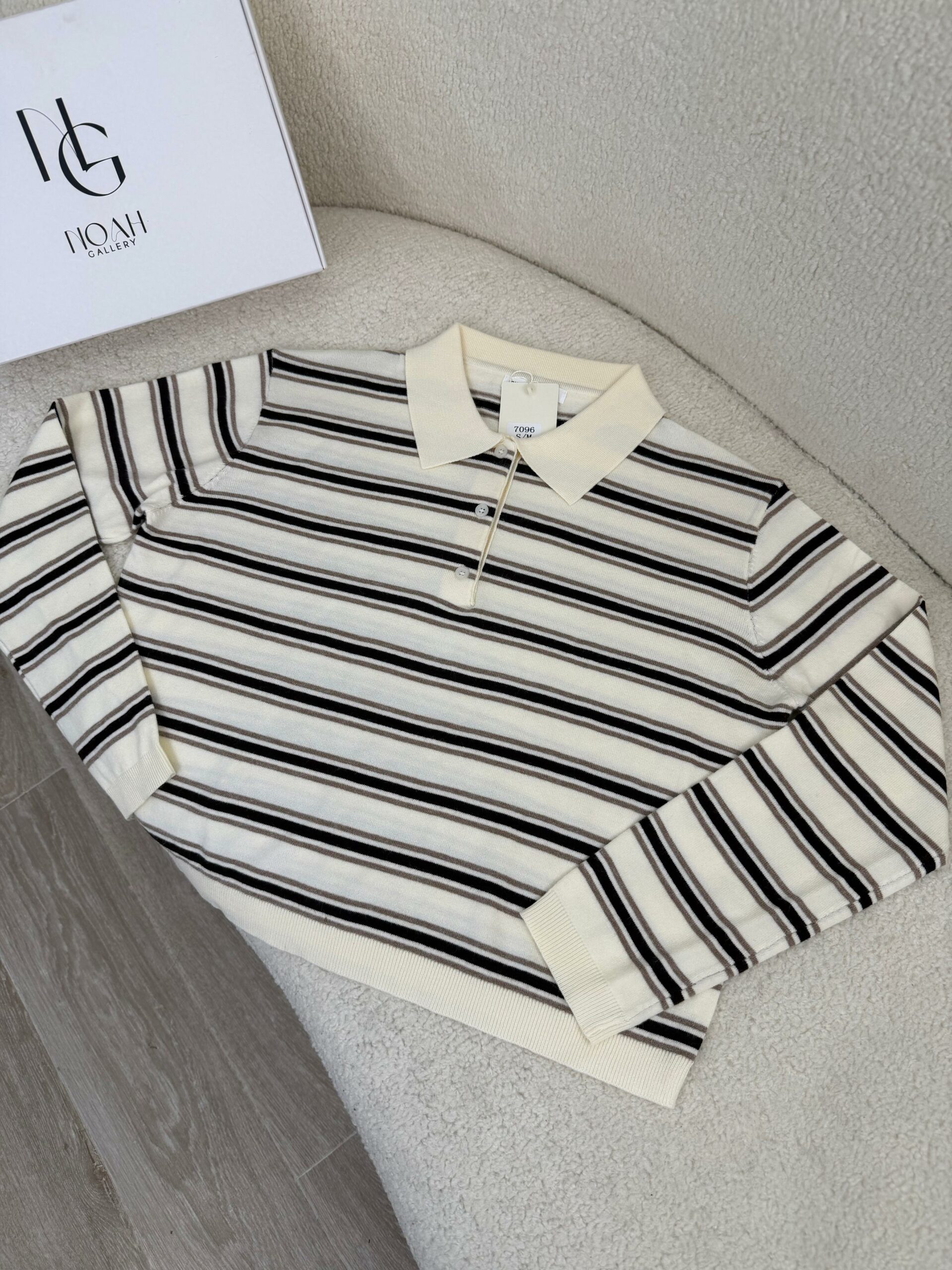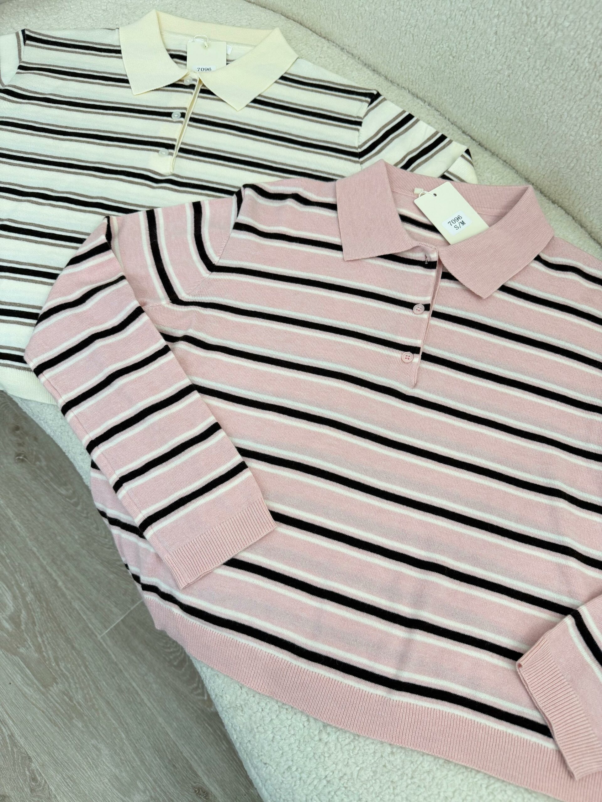 Le pull “Polo Rayé Chic” allie élégance et confort avec son col polo raffiné et ses rayures modernes. Sa matière douce et sa coupe soignée en font une pièce facile à porter au quotidien, parfaite pour un look casual mais stylé. Disponible en couleurs délicates, il apporte une touche fraîche et tendance à ta garde-robe.