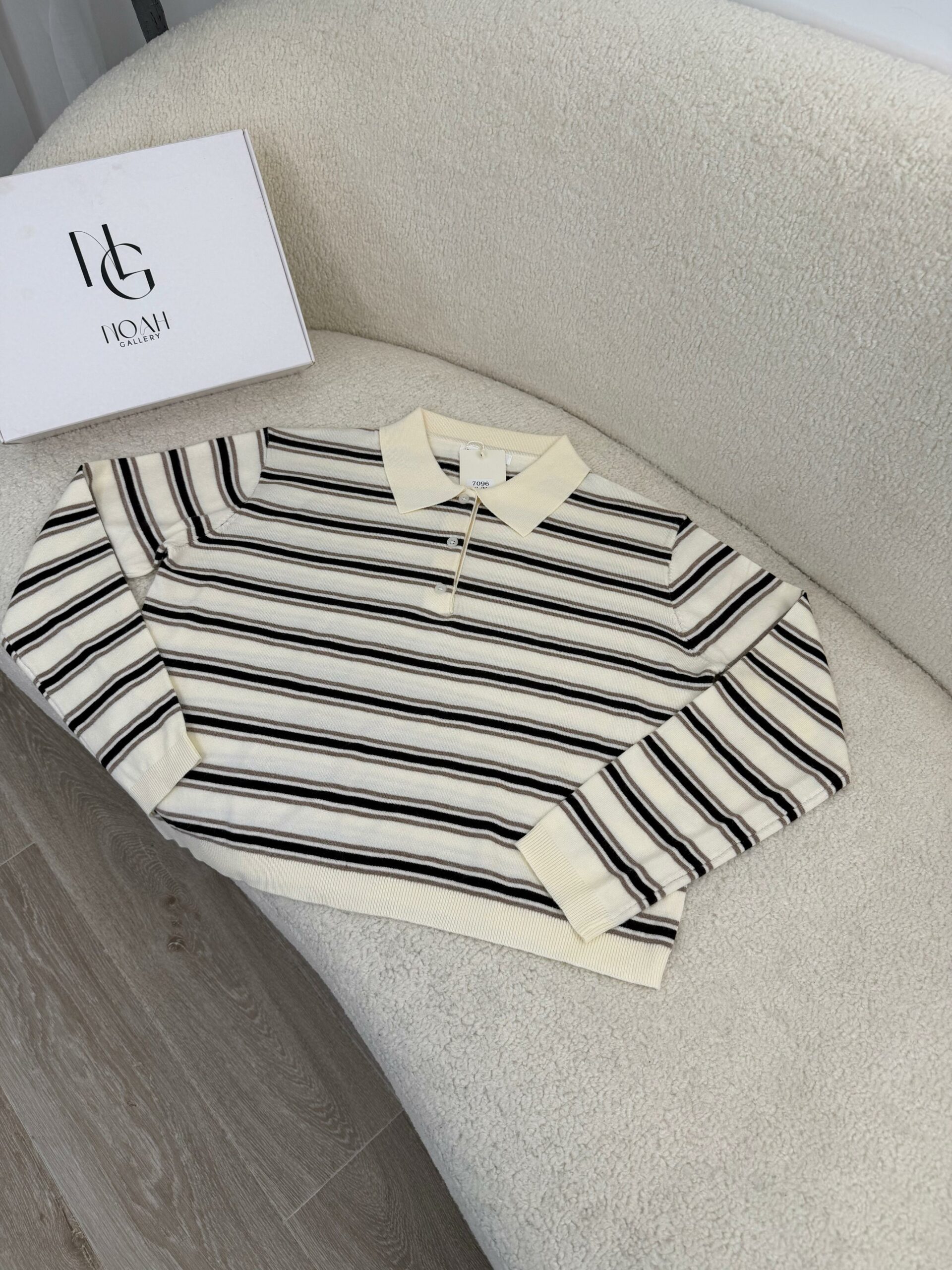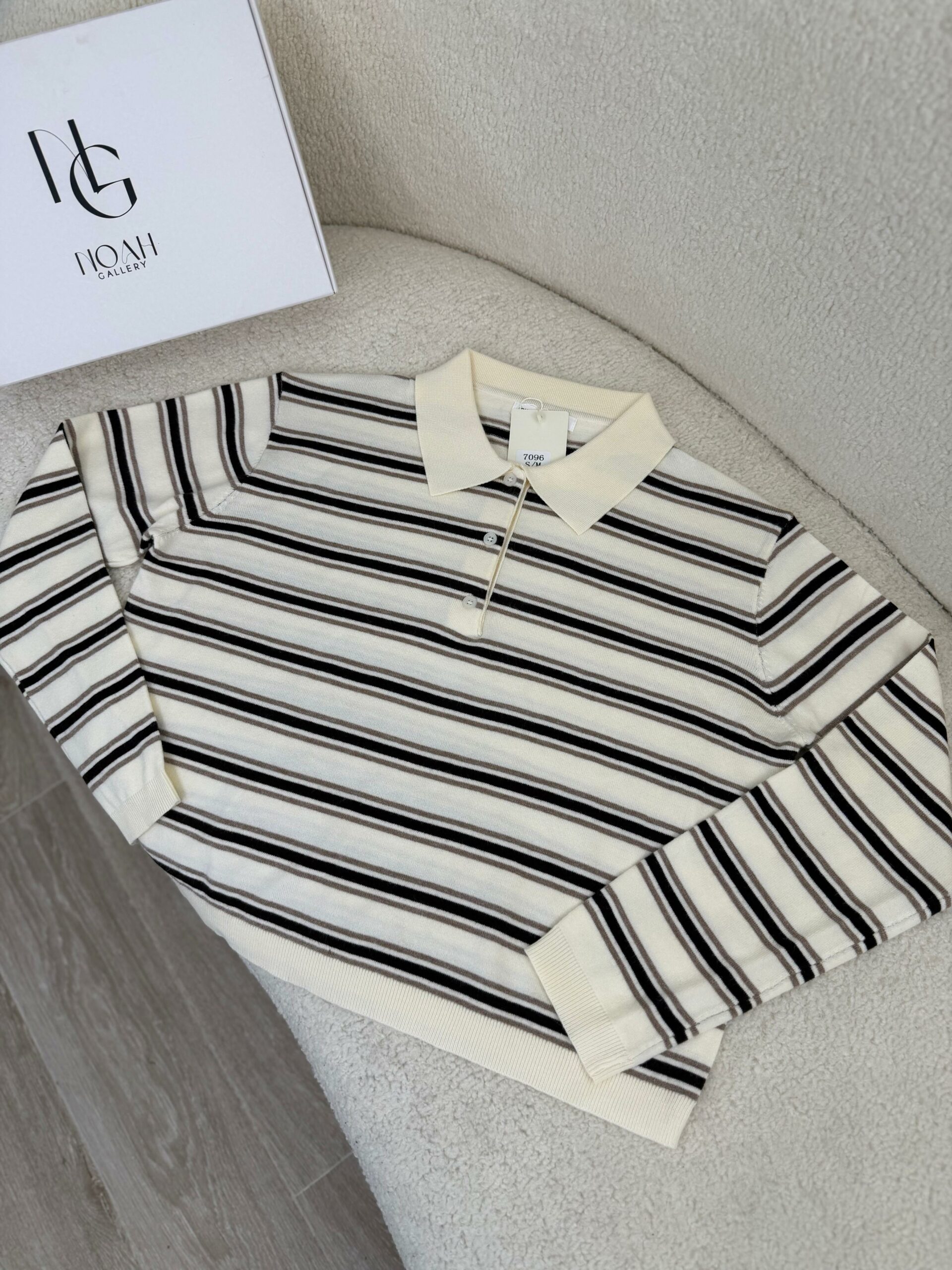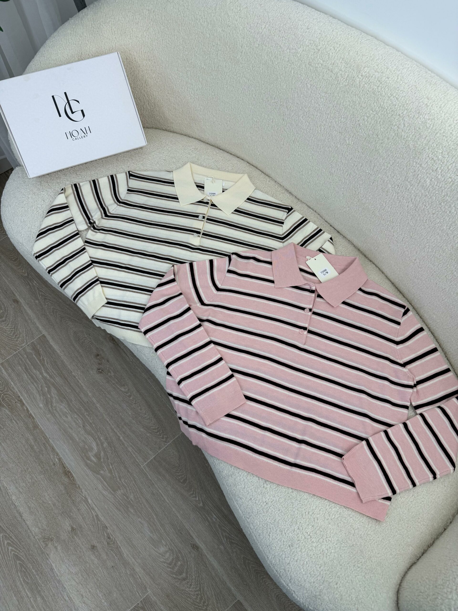 Le pull “Polo Rayé Chic” allie élégance et confort avec son col polo raffiné et ses rayures modernes. Sa matière douce et sa coupe soignée en font une pièce facile à porter au quotidien, parfaite pour un look casual mais stylé. Disponible en couleurs délicates, il apporte une touche fraîche et tendance à ta garde-robe.