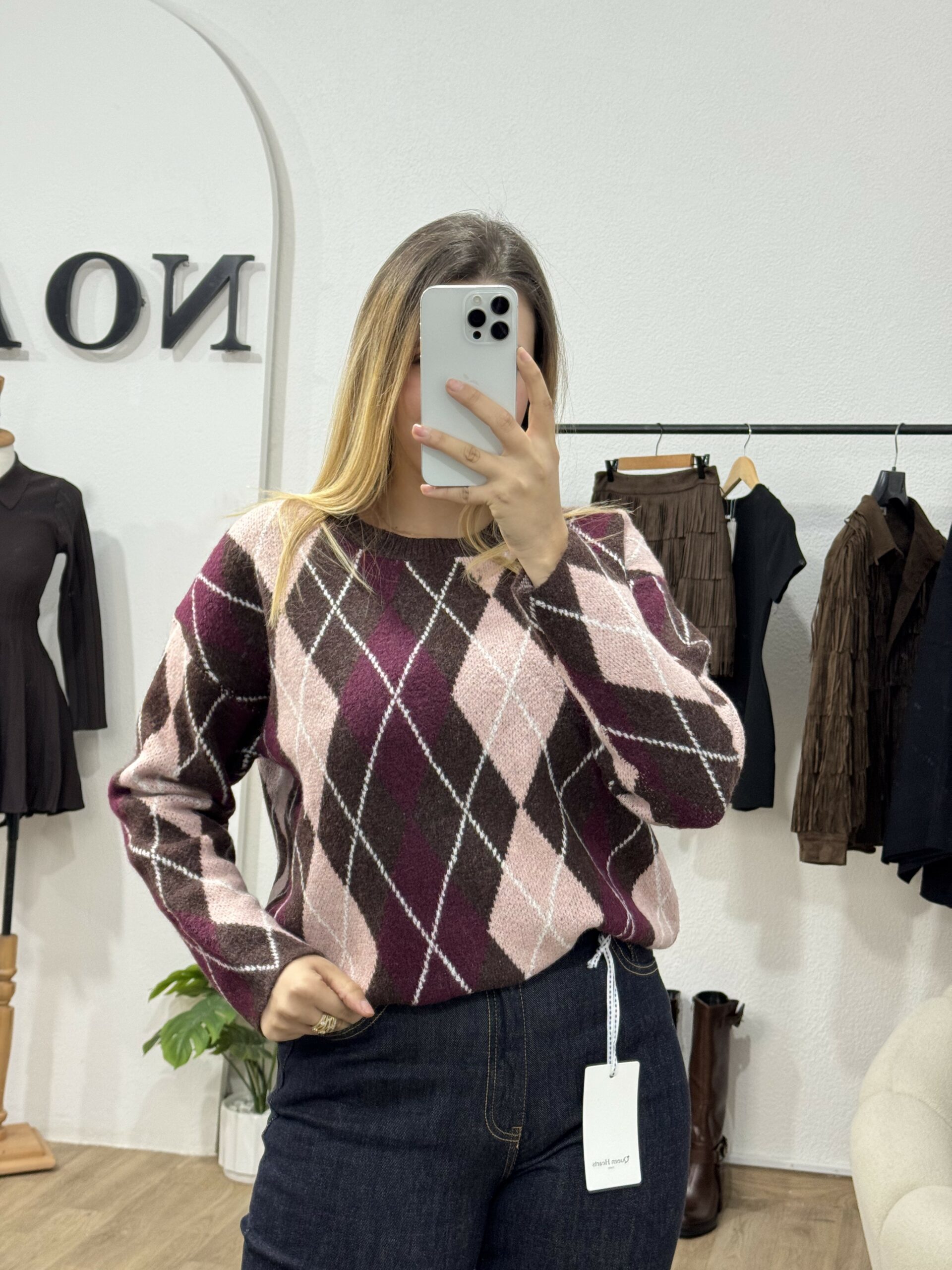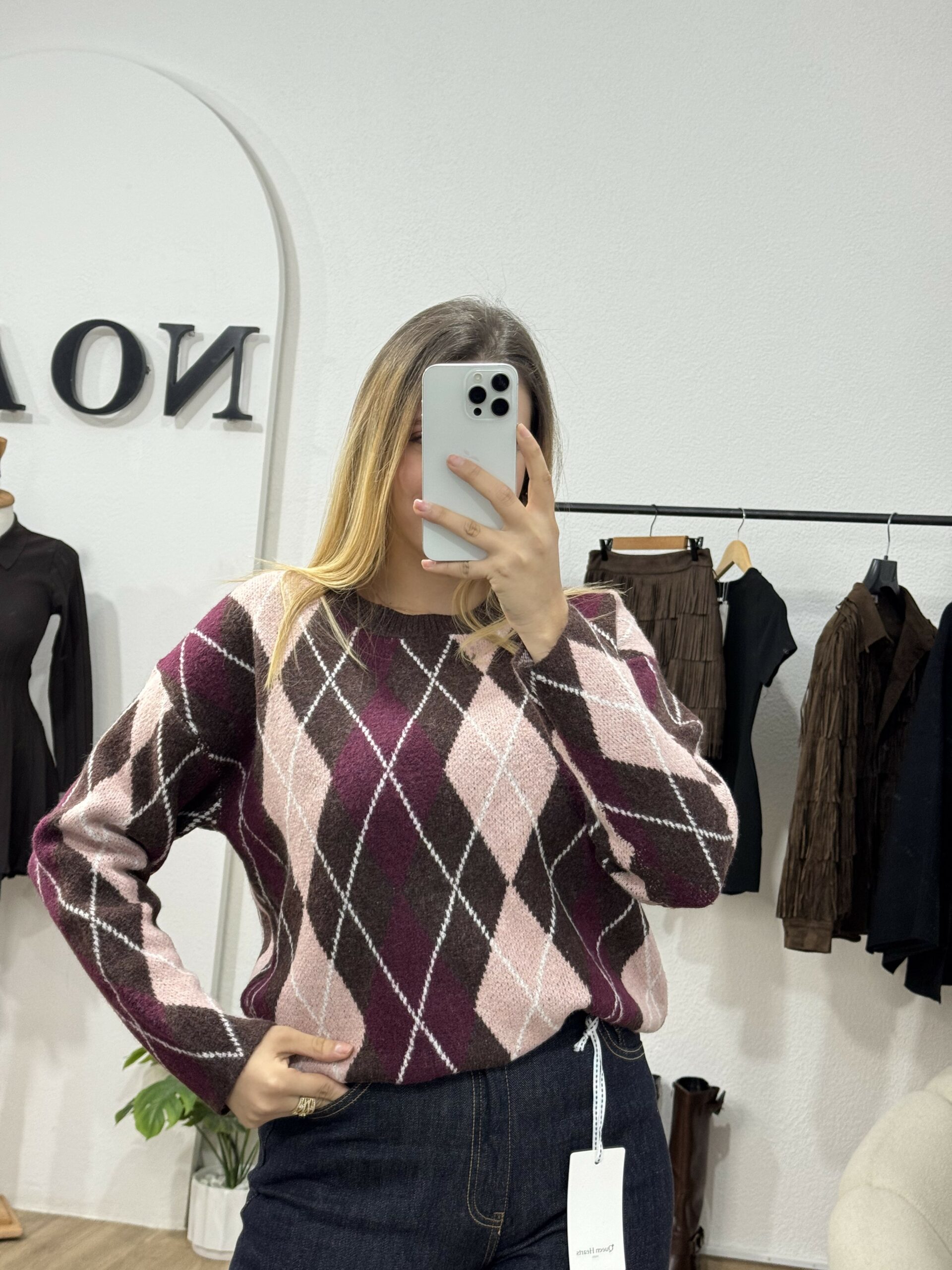 Ce pull “Argyle Rose” séduit par son motif argyle moderne mêlant rose, bordeaux et brun pour un style à la fois doux et tendance. Sa matière chaude et confortable en fait une pièce parfaite pour la saison, tandis que ses couleurs harmonieuses apportent une touche féminine et élégante à n’importe quel look. Facile à porter avec un jean, un pantalon classique ou même une jupe, c’est le pull idéal pour un outfit chic et cosy au quotidien.