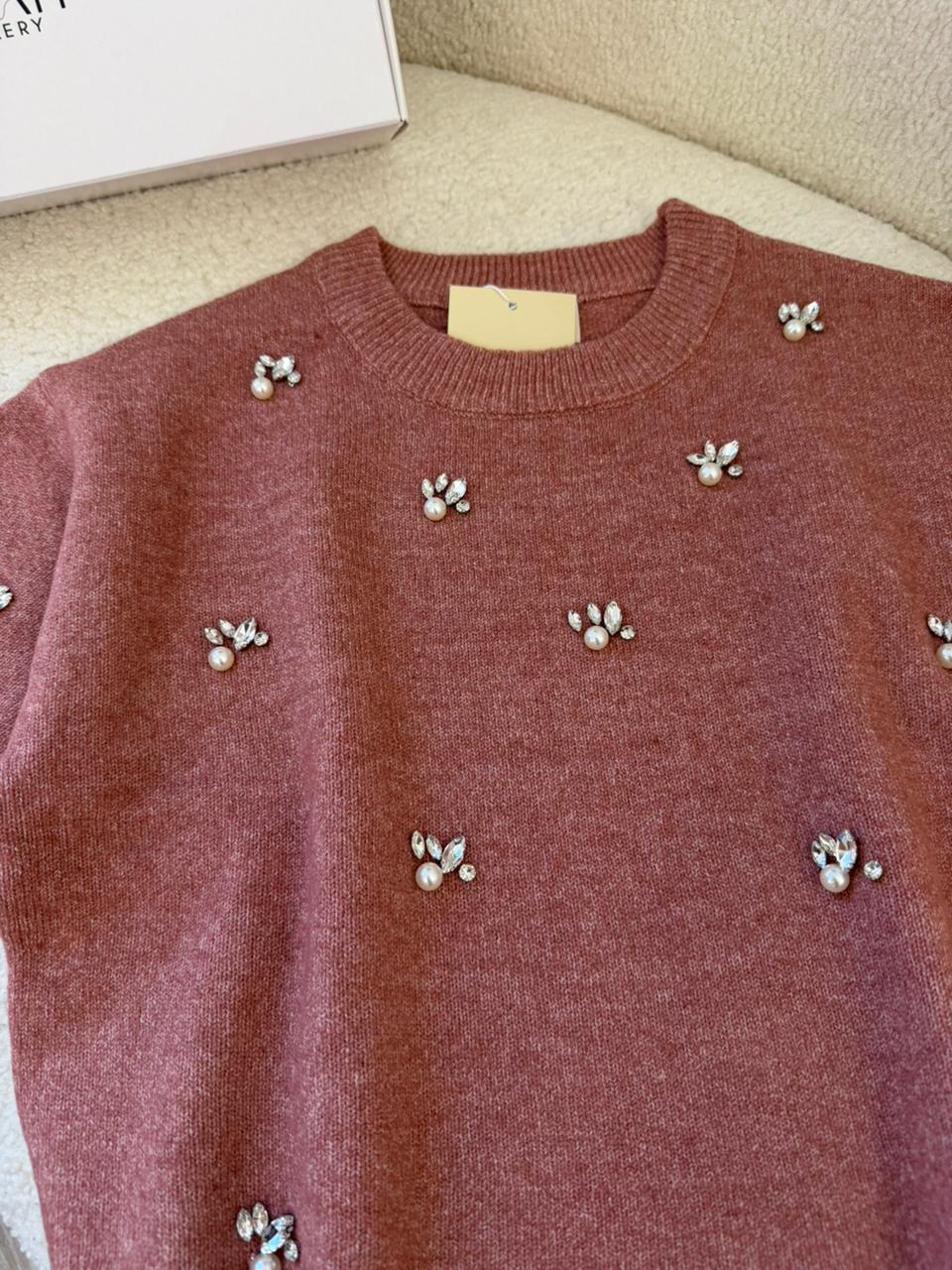Pull Blush Éclat au style délicat et féminin, sublimé par de fins strass qui apportent une touche lumineuse et raffinée. Sa coupe à demi-manches offre un équilibre parfait entre élégance et confort, idéal pour la mi-saison. Confectionné dans une matière douce et agréable à porter, ce pull se marie facilement avec un pantalon, une jupe ou un jean pour un look chic et moderne, aussi bien au quotidien que pour une occasion spéciale ✨💗