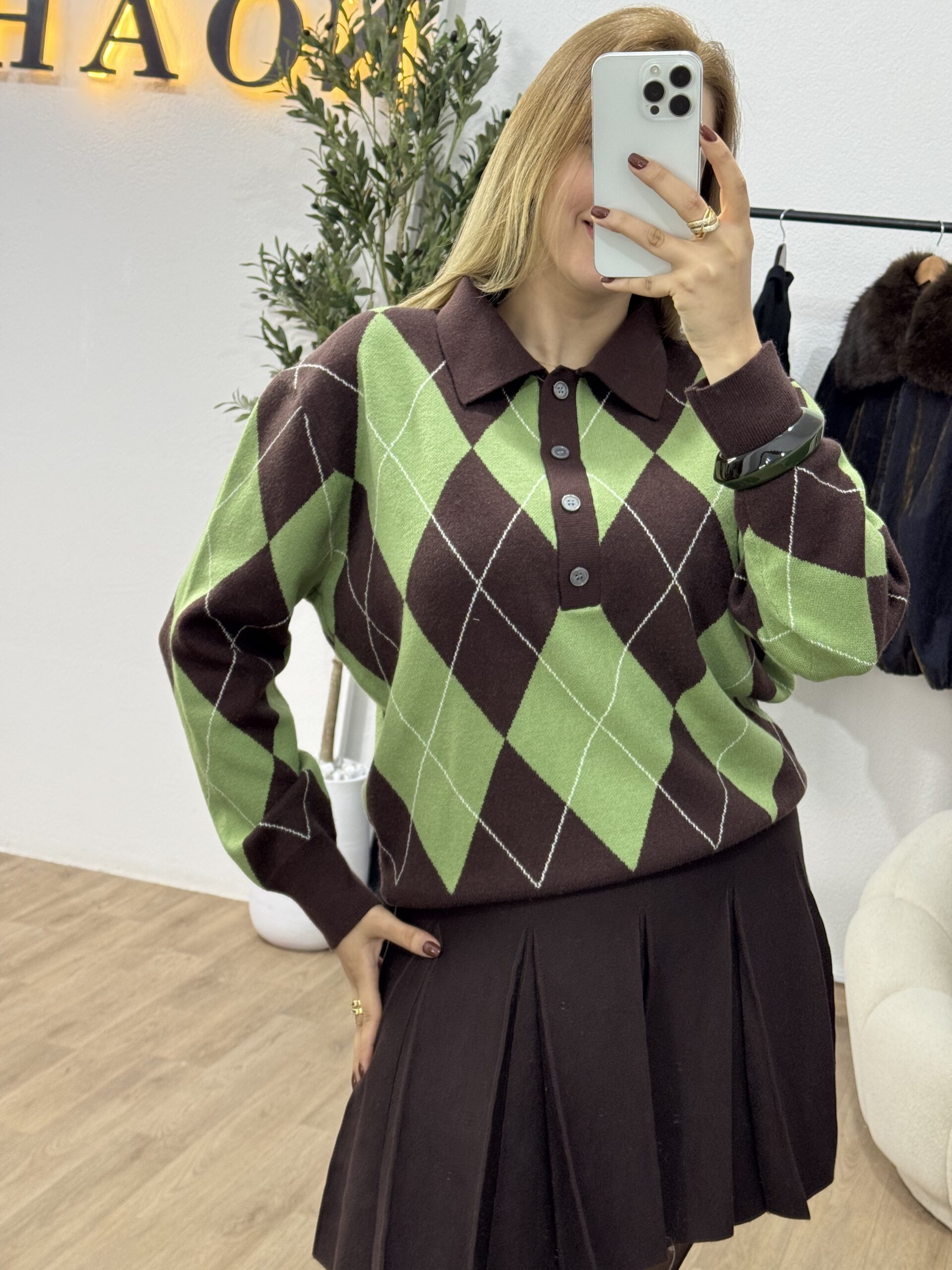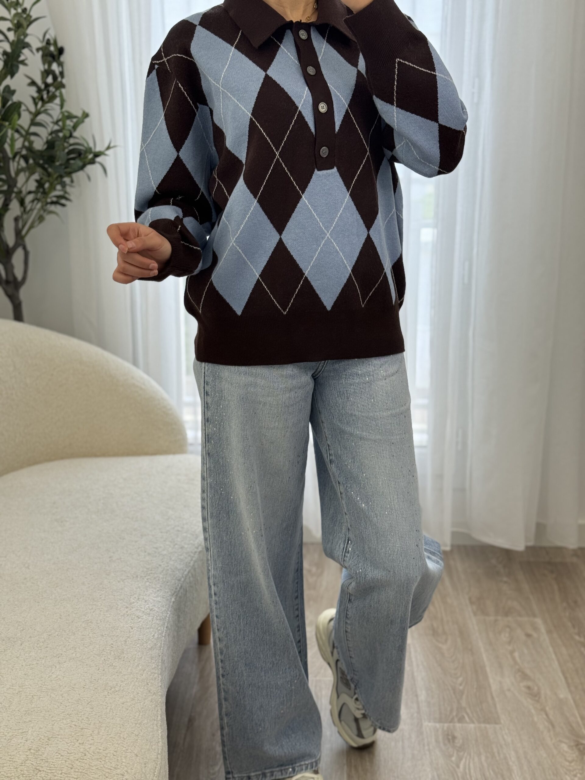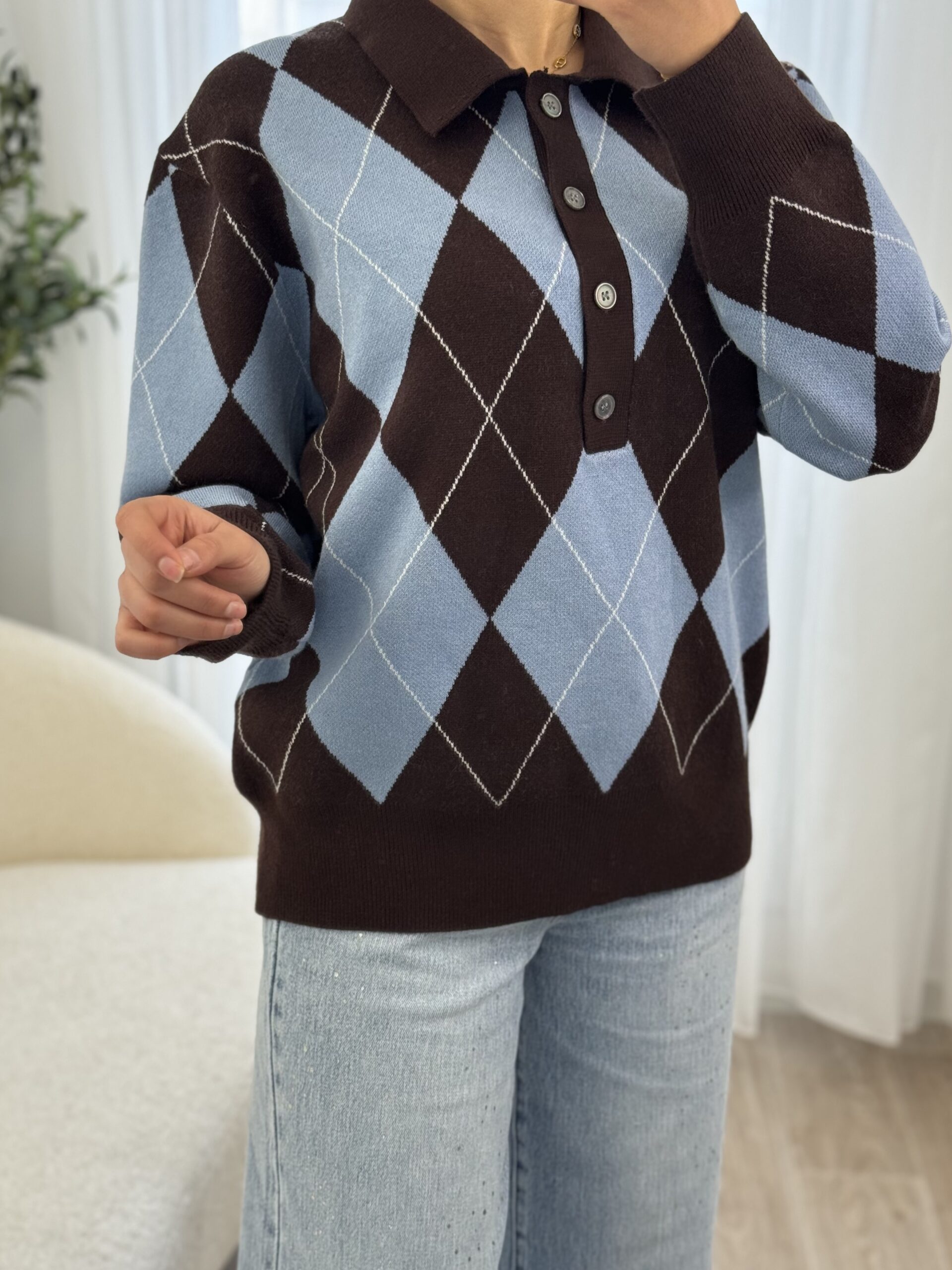 Pull élégant au motif argyle intemporel, doté d’un col polo qui apporte une touche chic et moderne. Confectionné dans une maille douce et confortable, il se distingue par son style classique revisité, parfait pour une allure soignée au quotidien. Facile à associer avec un jean ou un pantalon habillé, ce pull est idéal pour un look casual chic en toute saison.