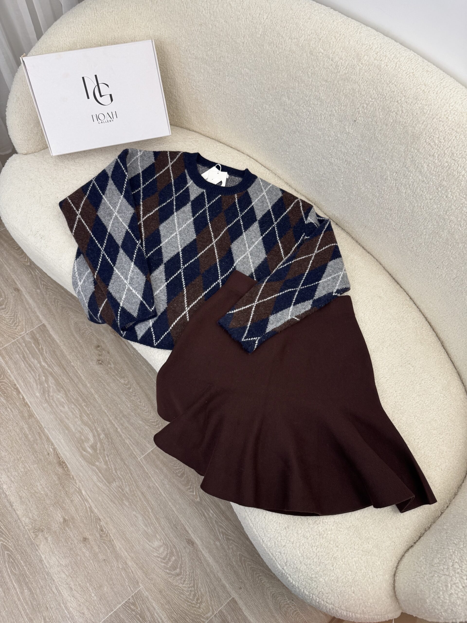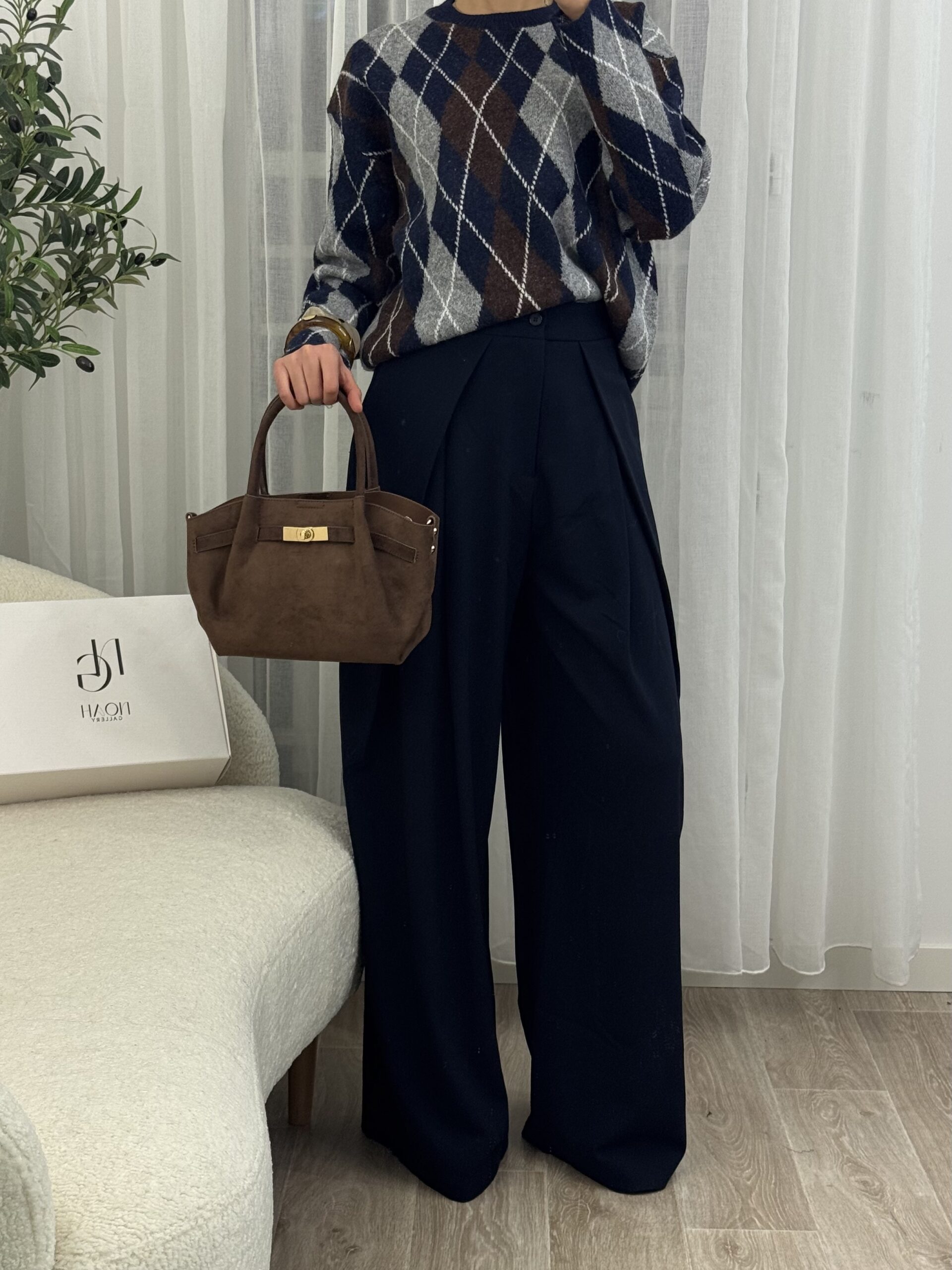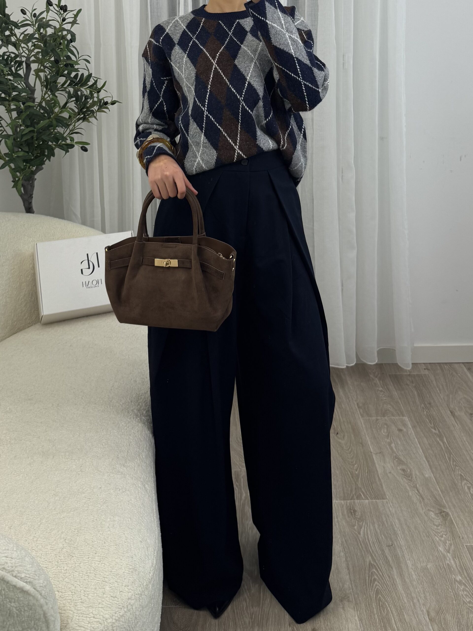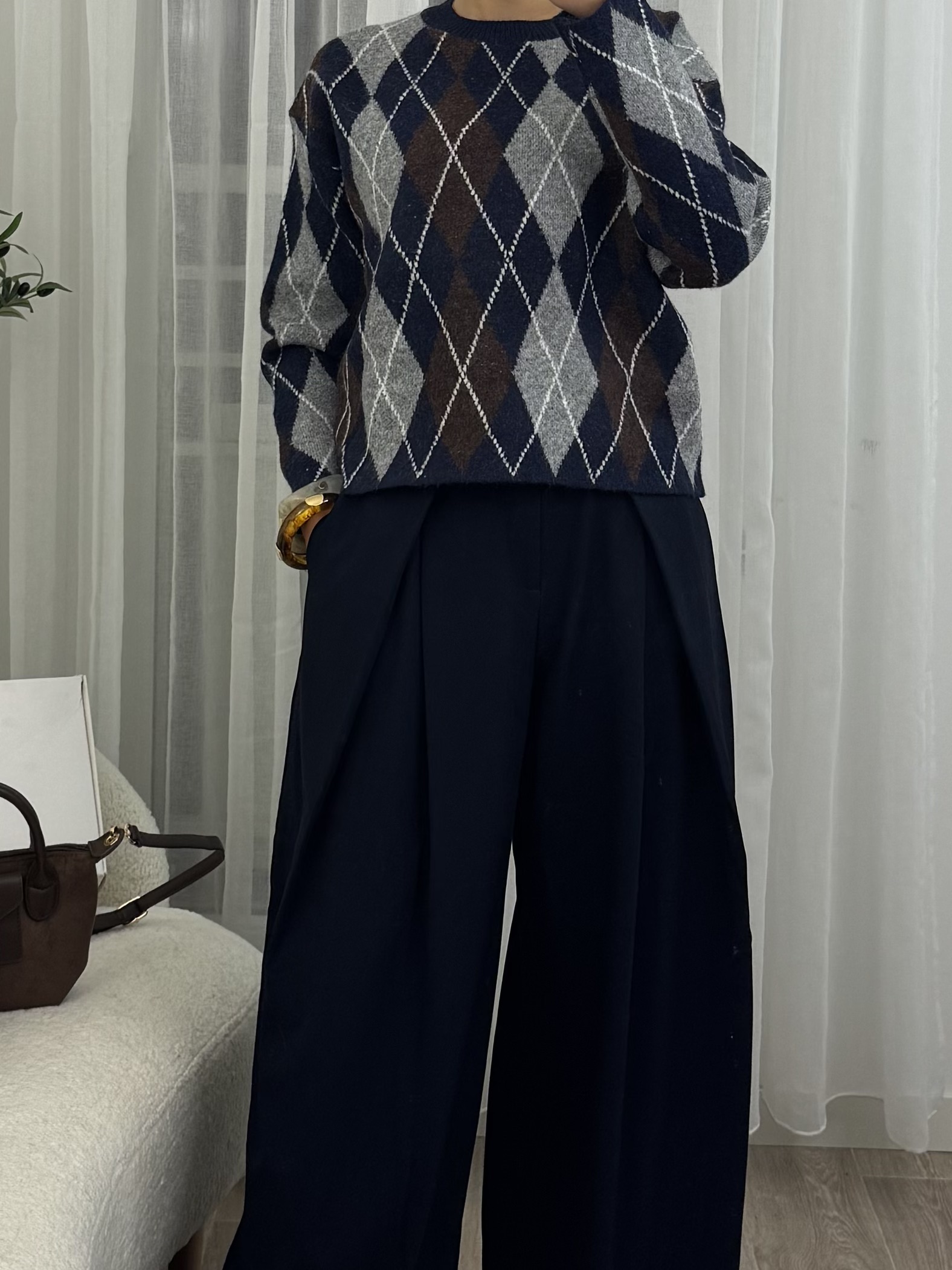 Pull en maille jacquard aux tons bleu et gris, alliant élégance et confort. Son motif jacquard apporte une touche graphique et chaleureuse, idéale pour la saison automne-hiver. Confectionné dans une maille douce et agréable à porter, il se marie parfaitement avec un jean, une jupe ou un pantalon pour un look à la fois casual et soigné.