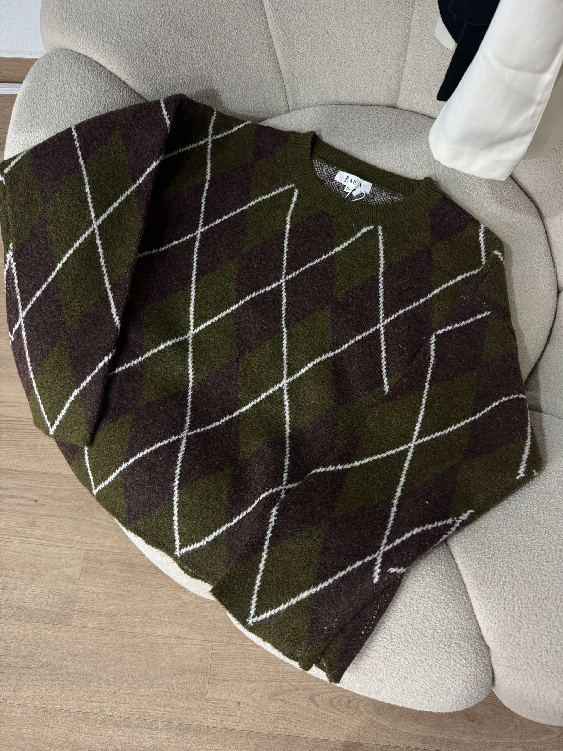 Pull jacquard vert et marron au design chaleureux et élégant, inspiré par les tons naturels et l’esprit authentique. Son motif jacquard raffiné apporte du relief et du caractère, tandis que l’association du vert et du marron crée une harmonie douce et sophistiquée. Confortable et agréable à porter, il s’adapte aussi bien à un look décontracté qu’à une tenue plus soignée. Une pièce intemporelle, idéale pour les journées fraîches, qui allie style, confort et originalité.