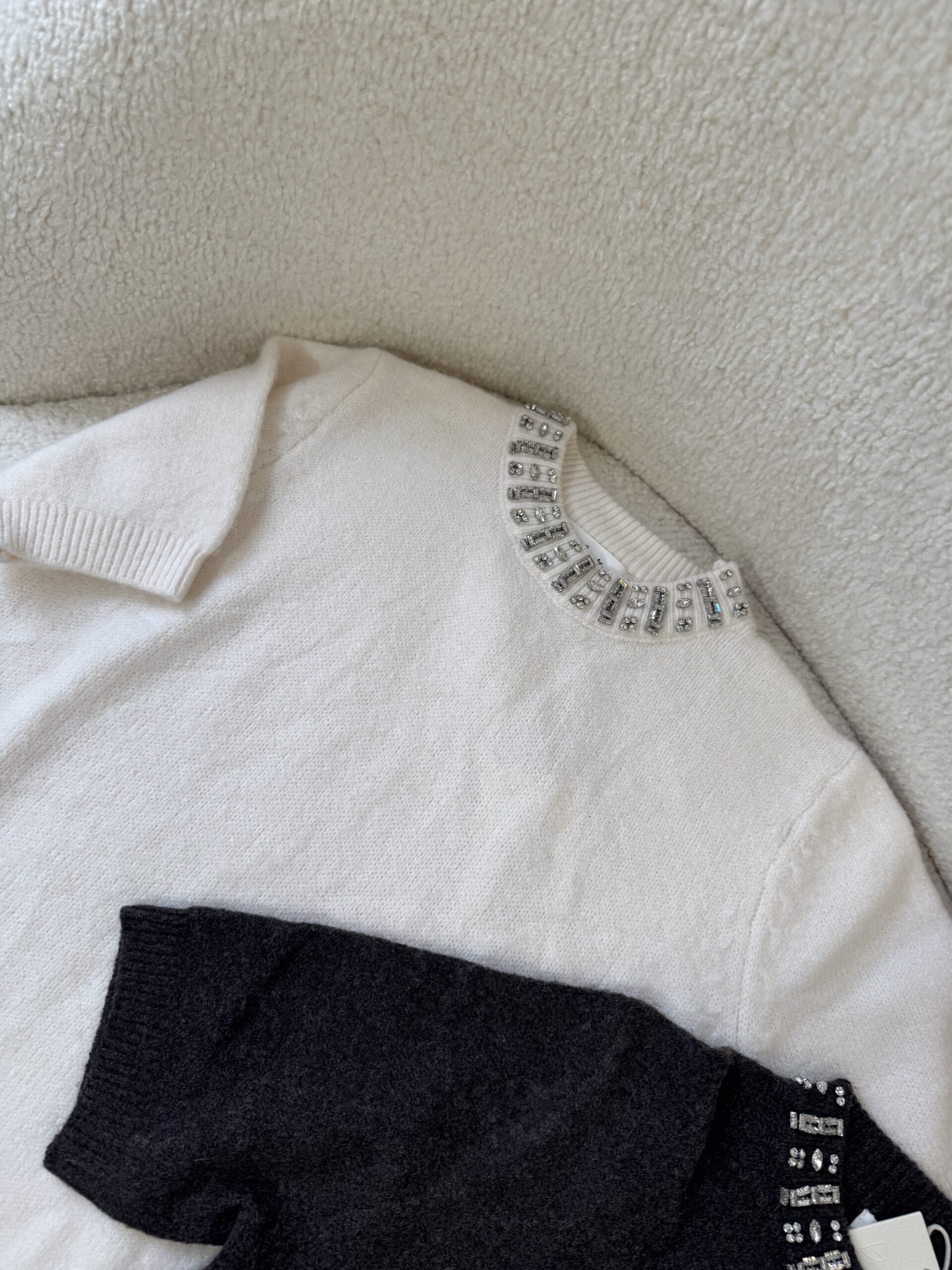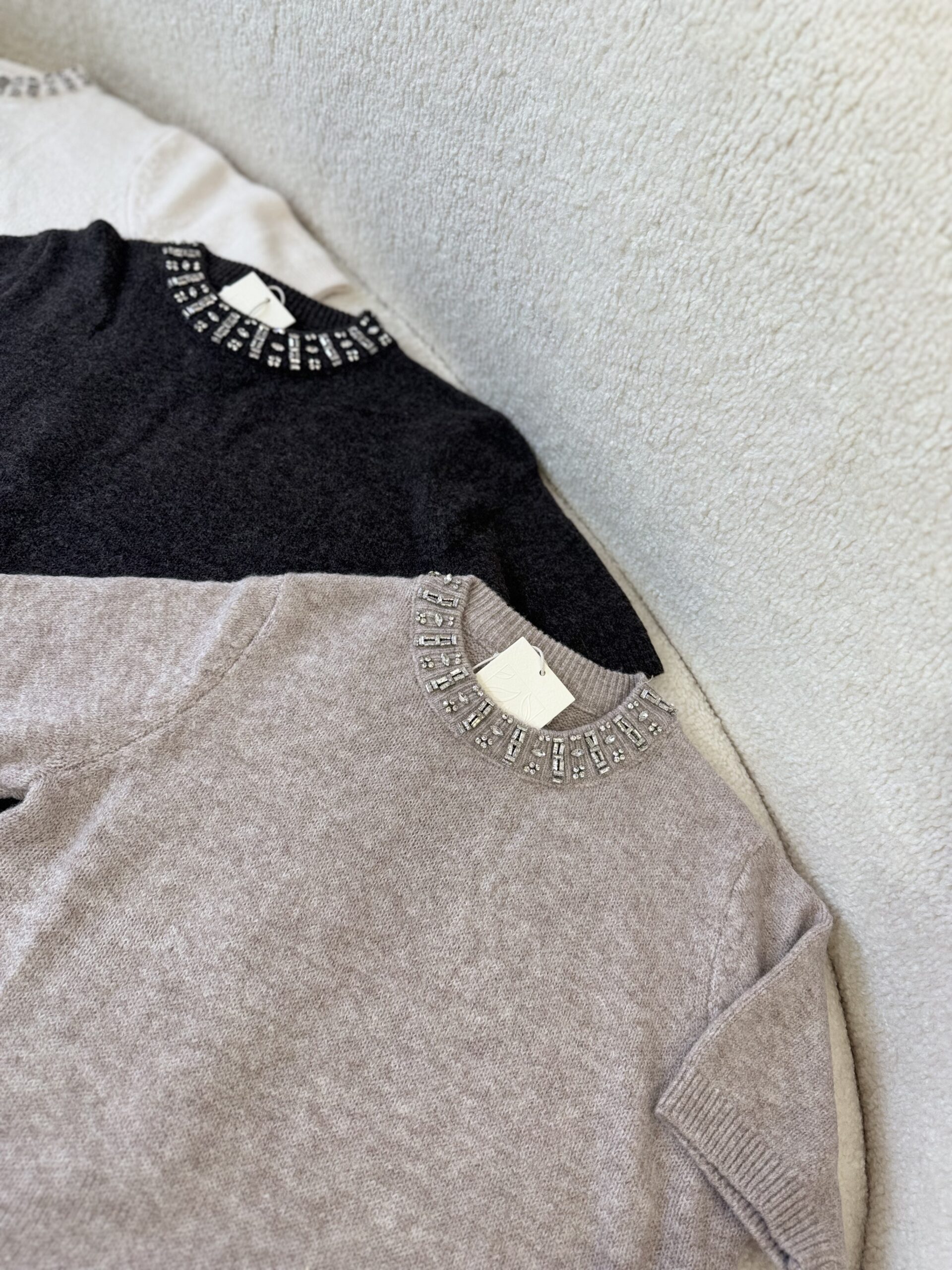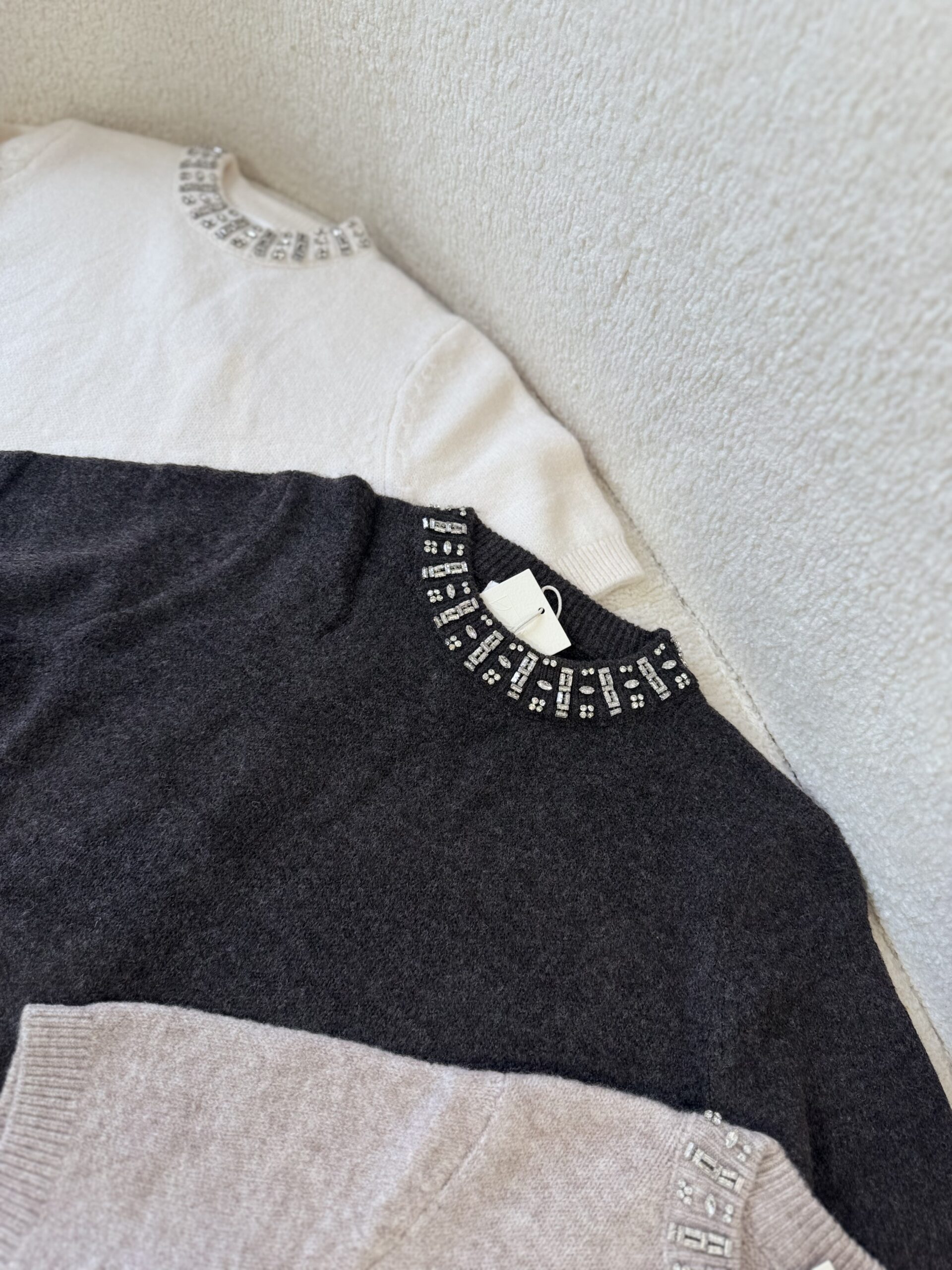 Pull en laine douce orné de strass délicats pour une touche d’éclat.