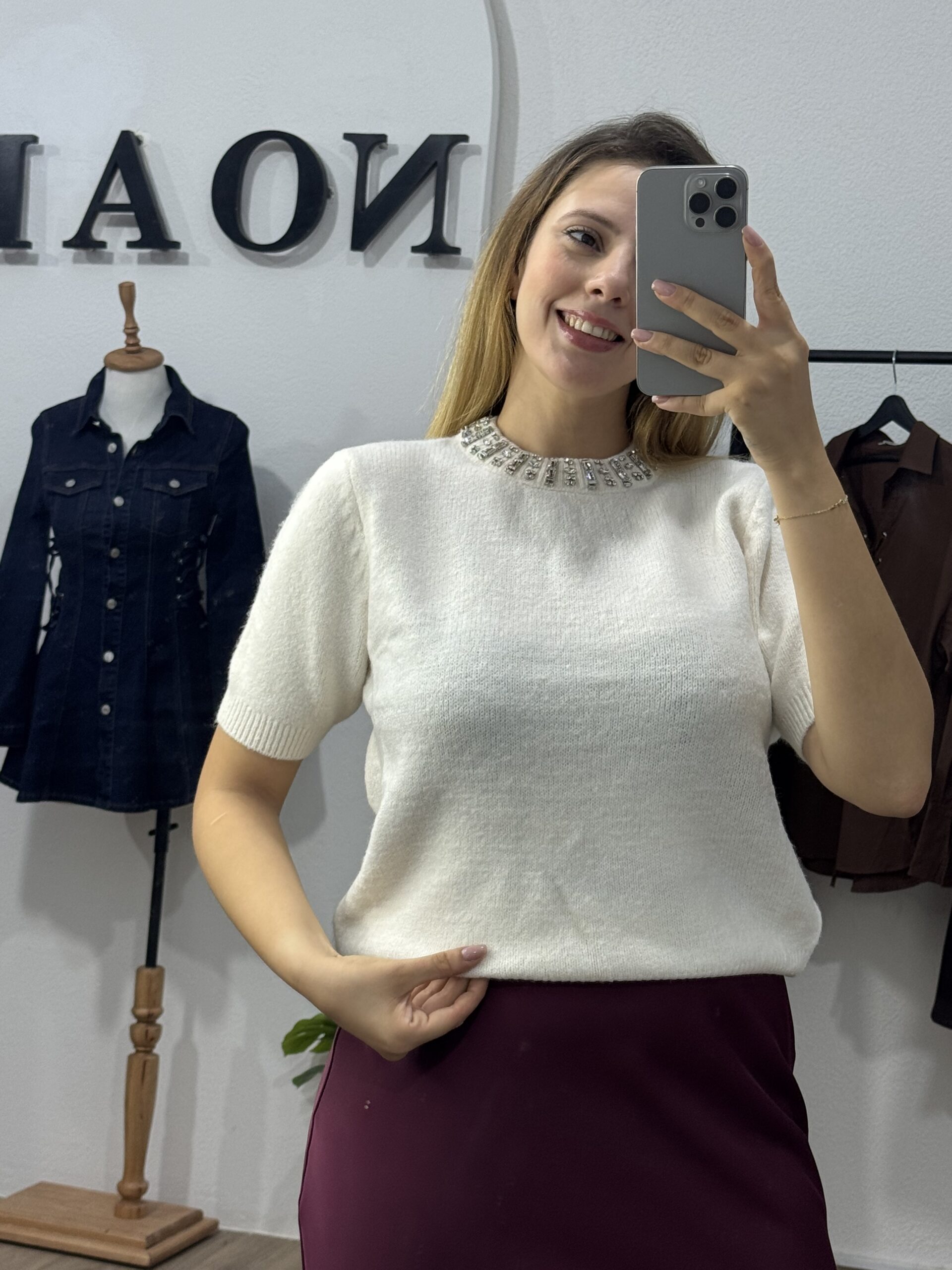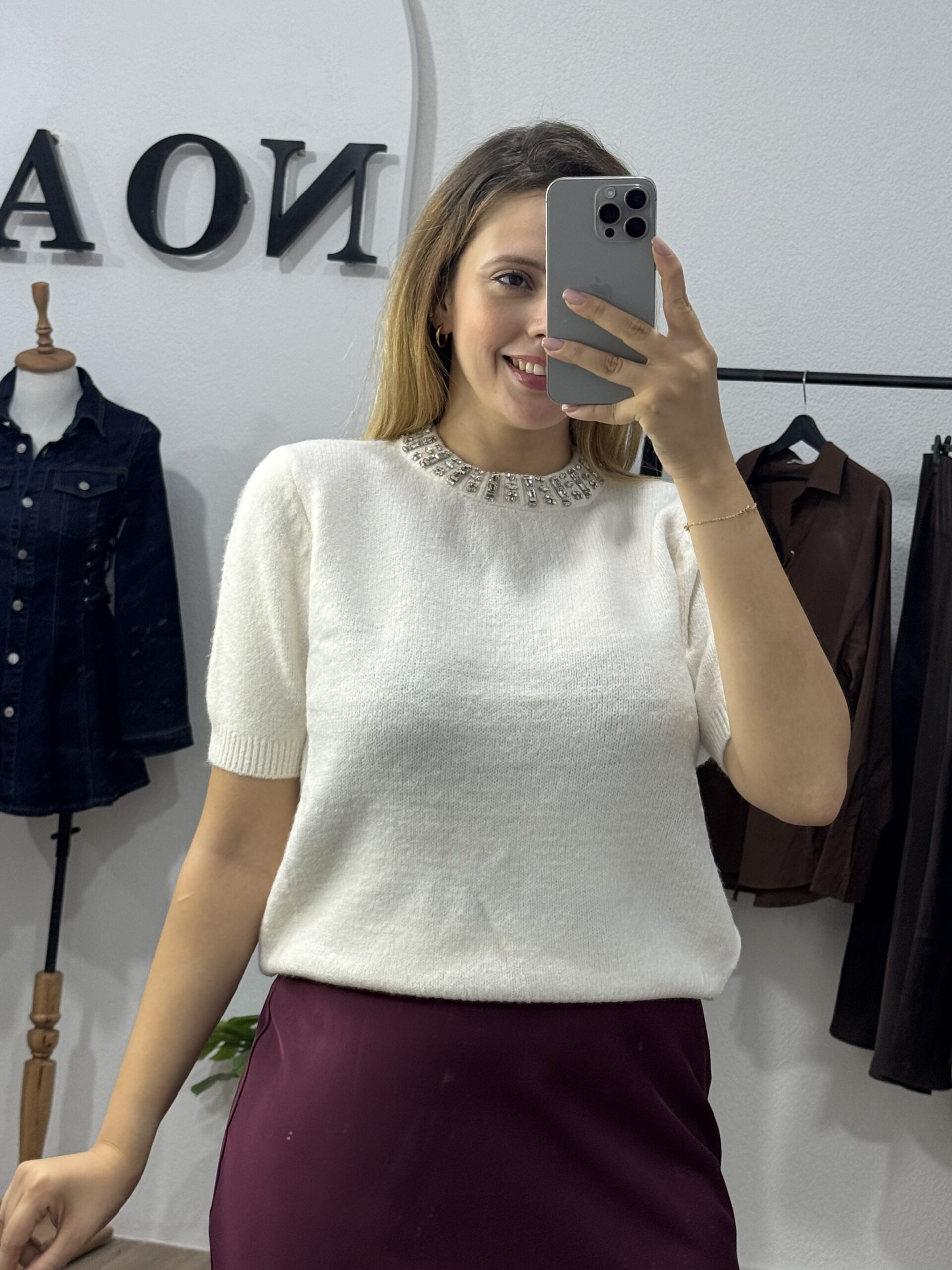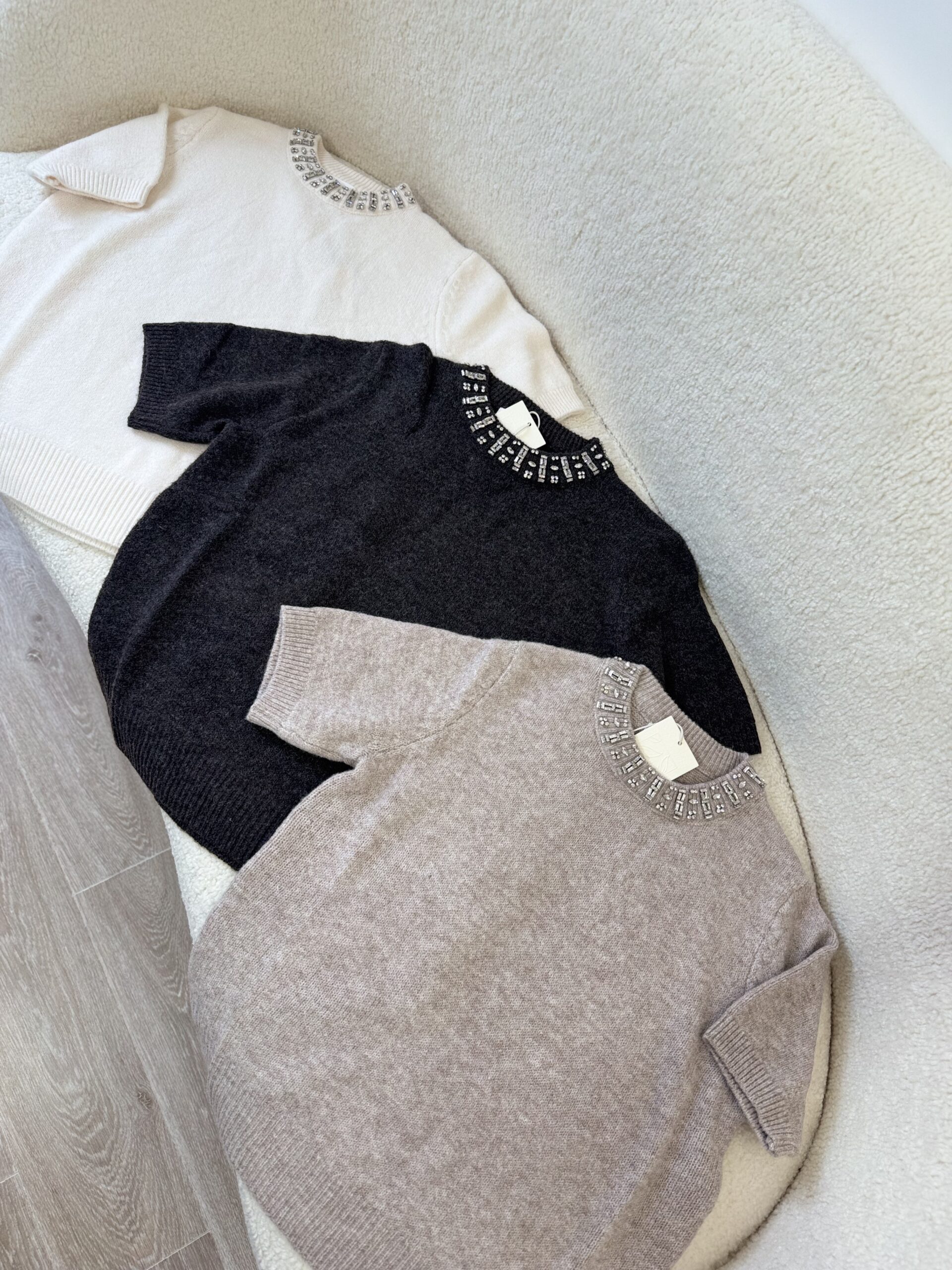 Pull en laine douce orné de strass délicats pour une touche d’éclat.