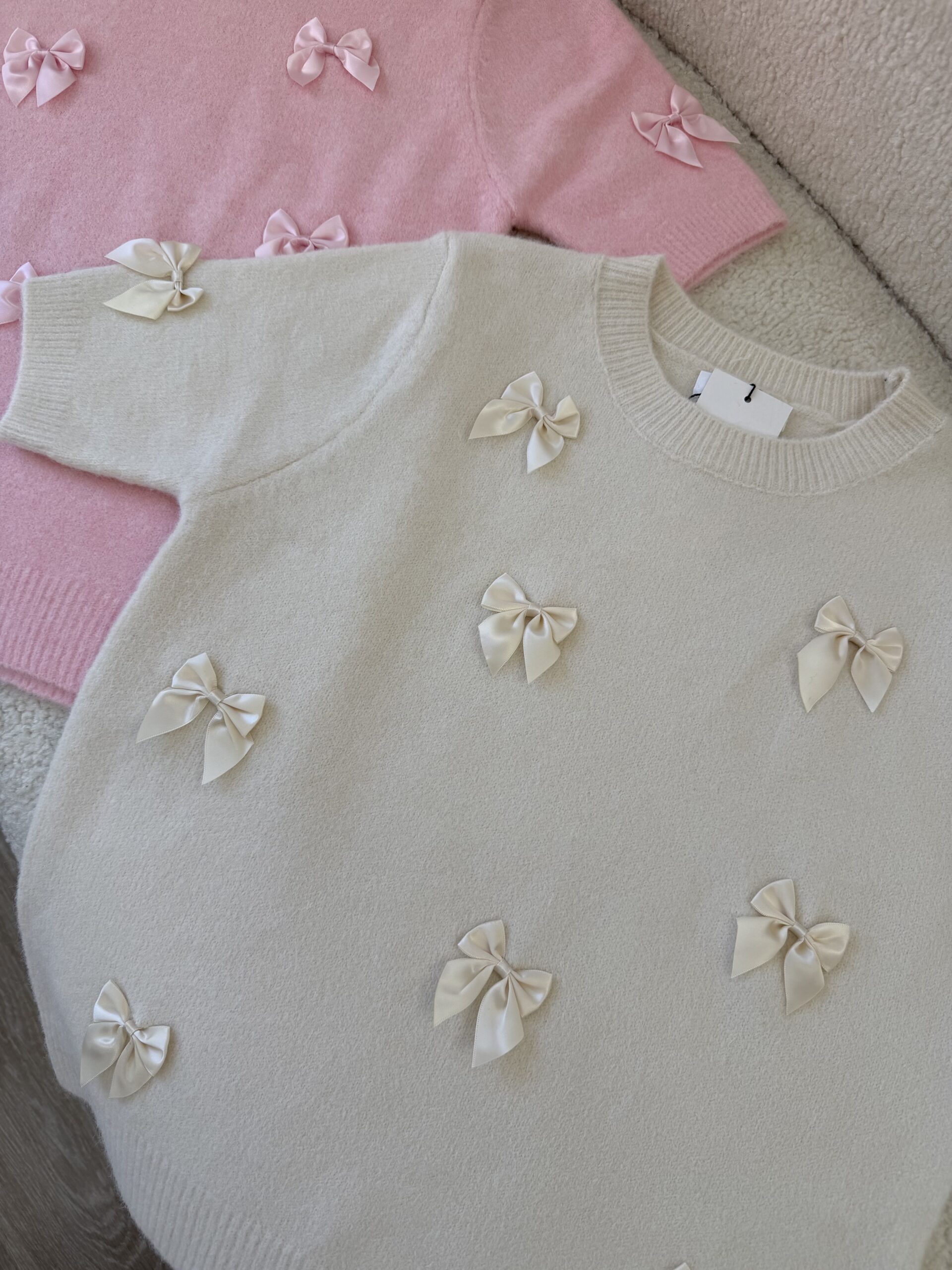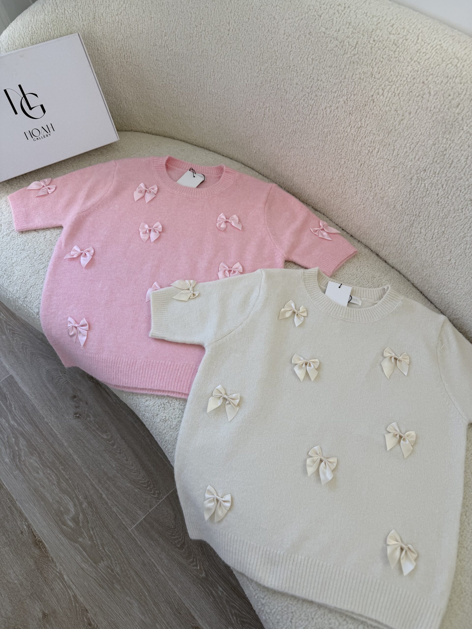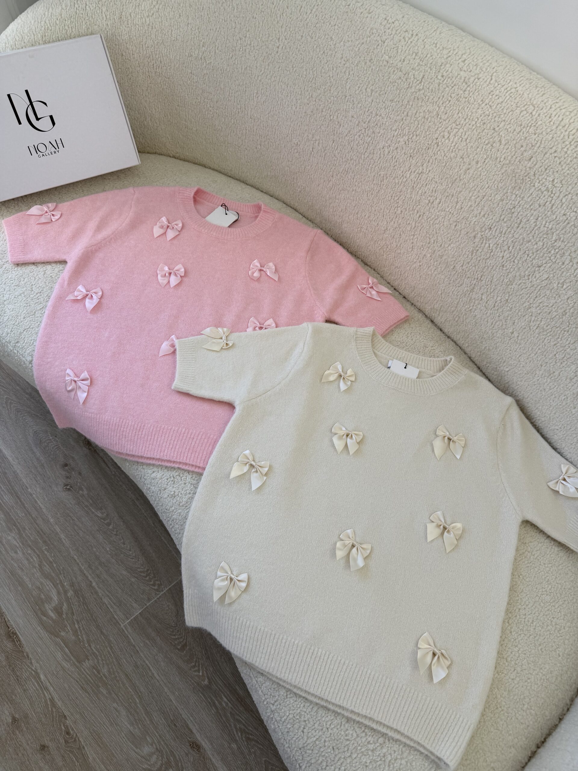 Pull en maille douce et confortable, sublimé par de jolis petits nœuds décoratifs pour une allure féminine et délicate. Sa coupe simple et élégante en fait une pièce facile à porter au quotidien, tout en apportant une touche romantique au look.