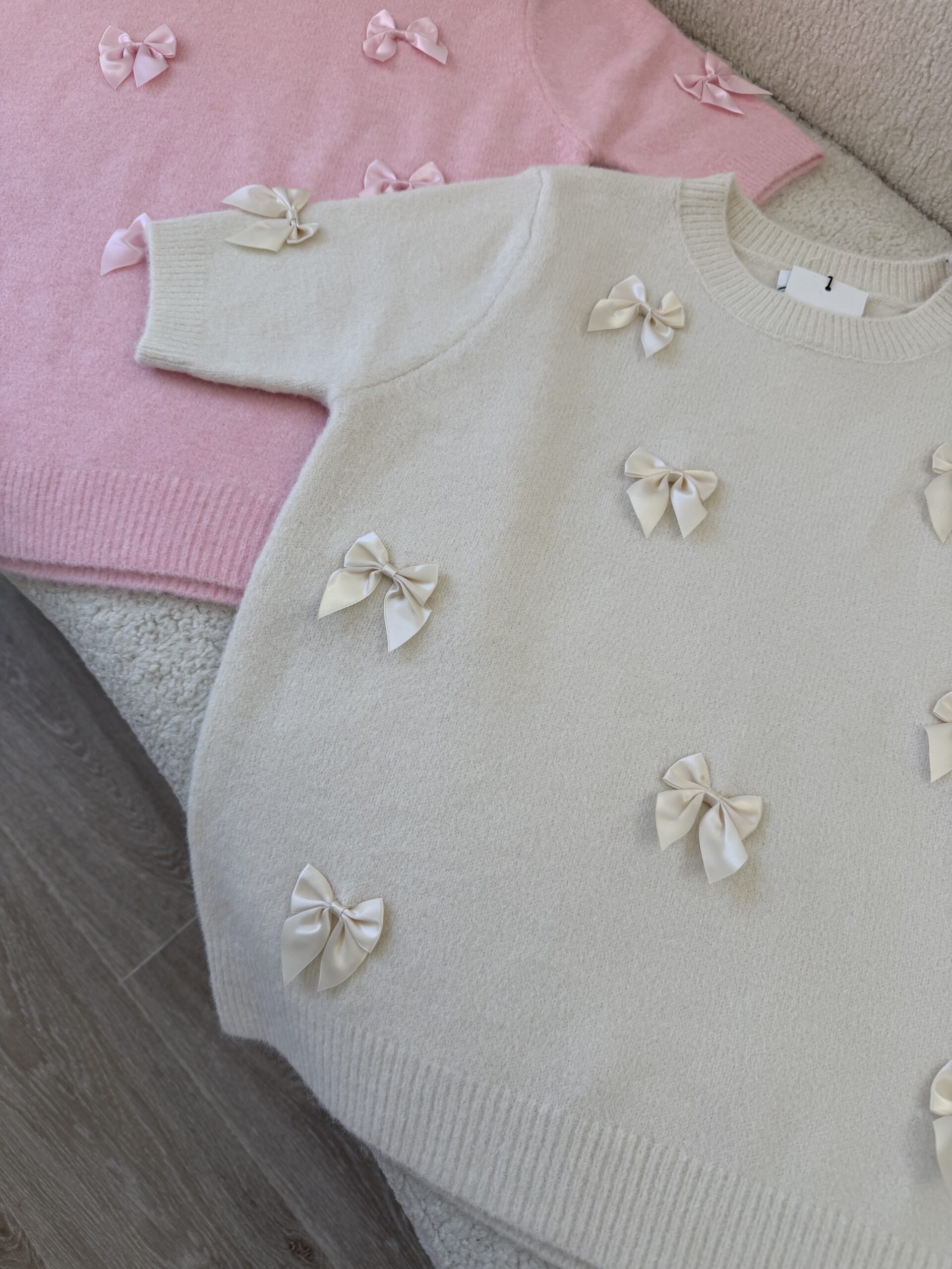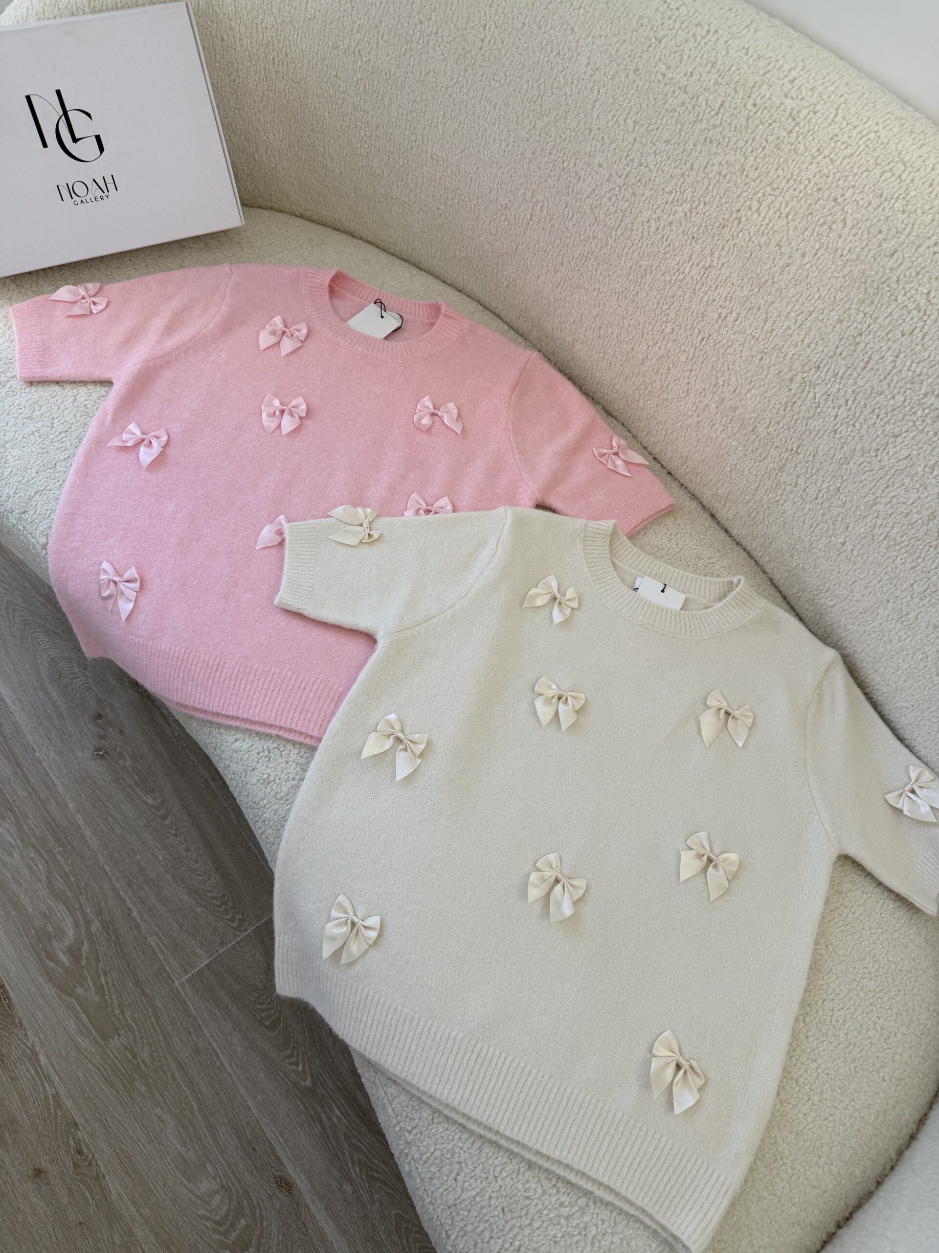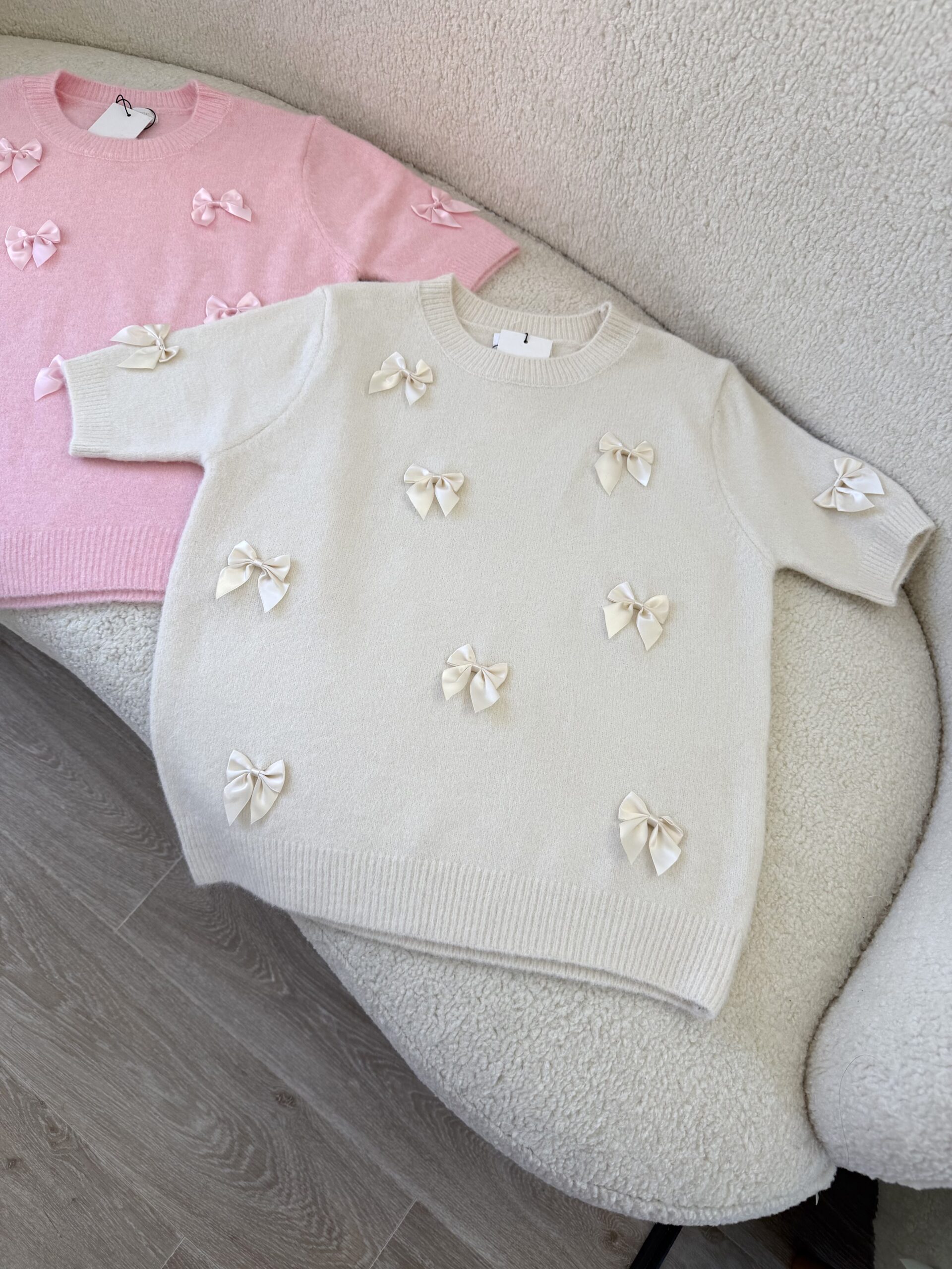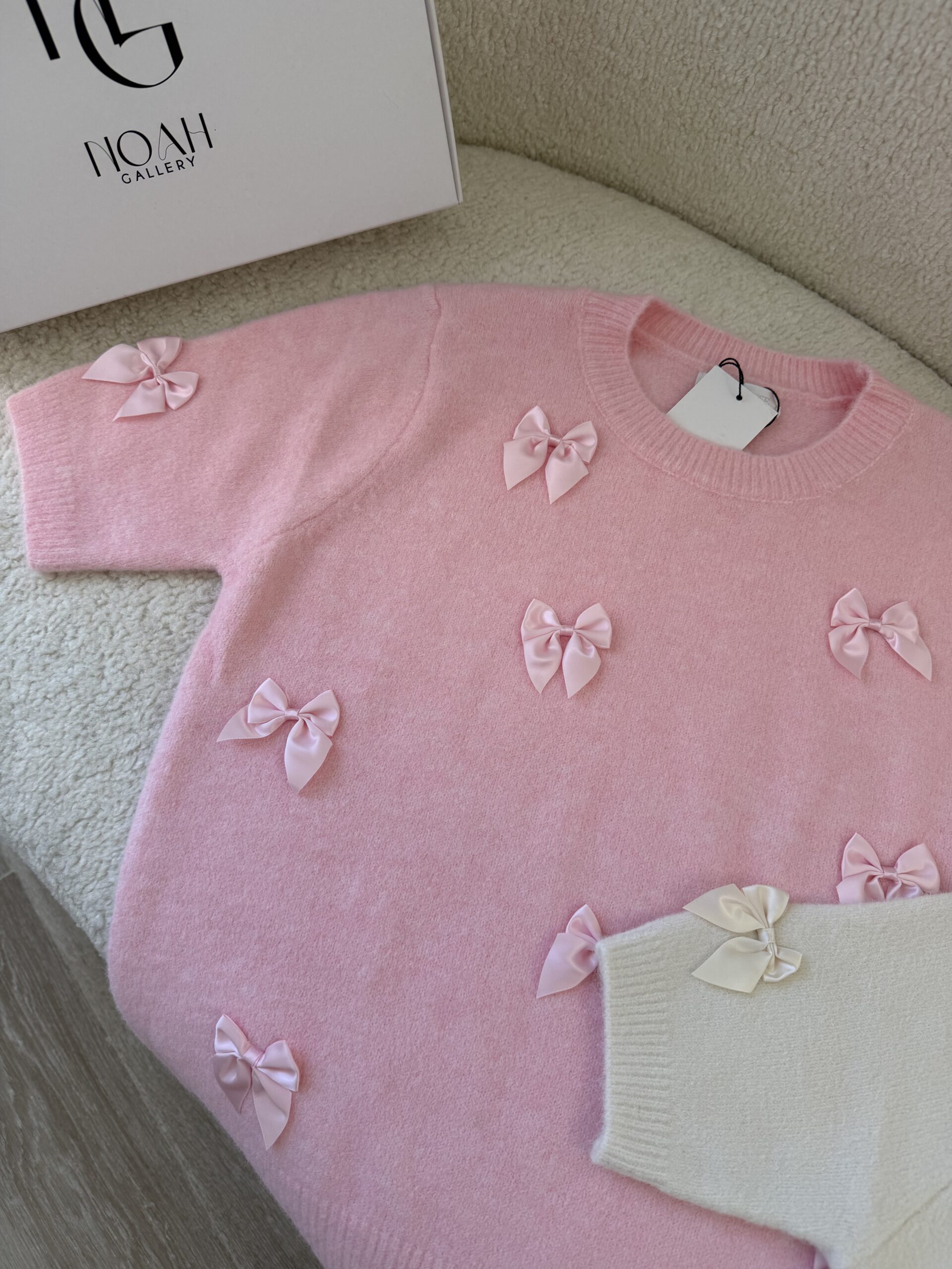 Pull en maille douce et confortable, sublimé par de jolis petits nœuds décoratifs pour une allure féminine et délicate. Sa coupe simple et élégante en fait une pièce facile à porter au quotidien, tout en apportant une touche romantique au look.