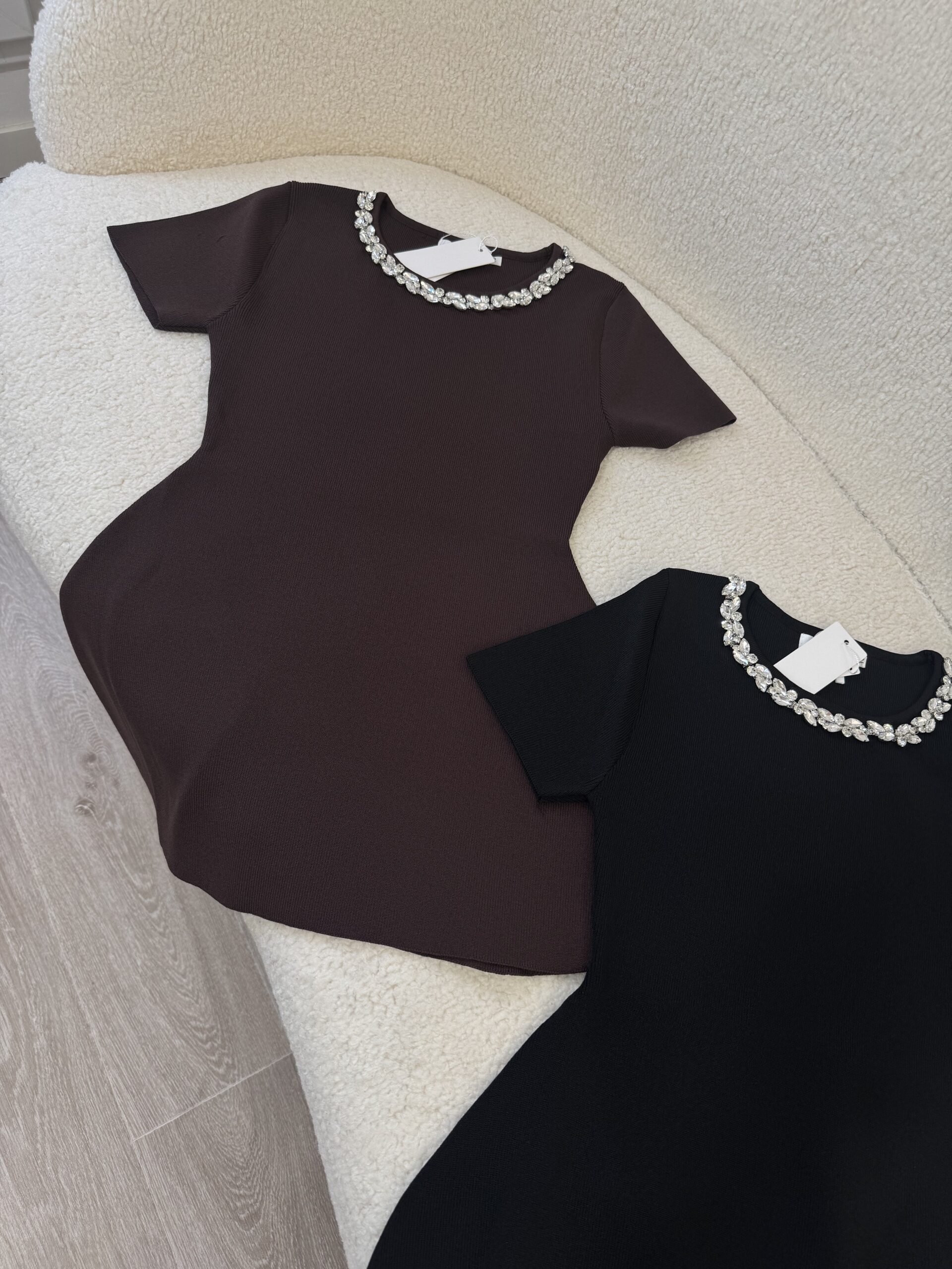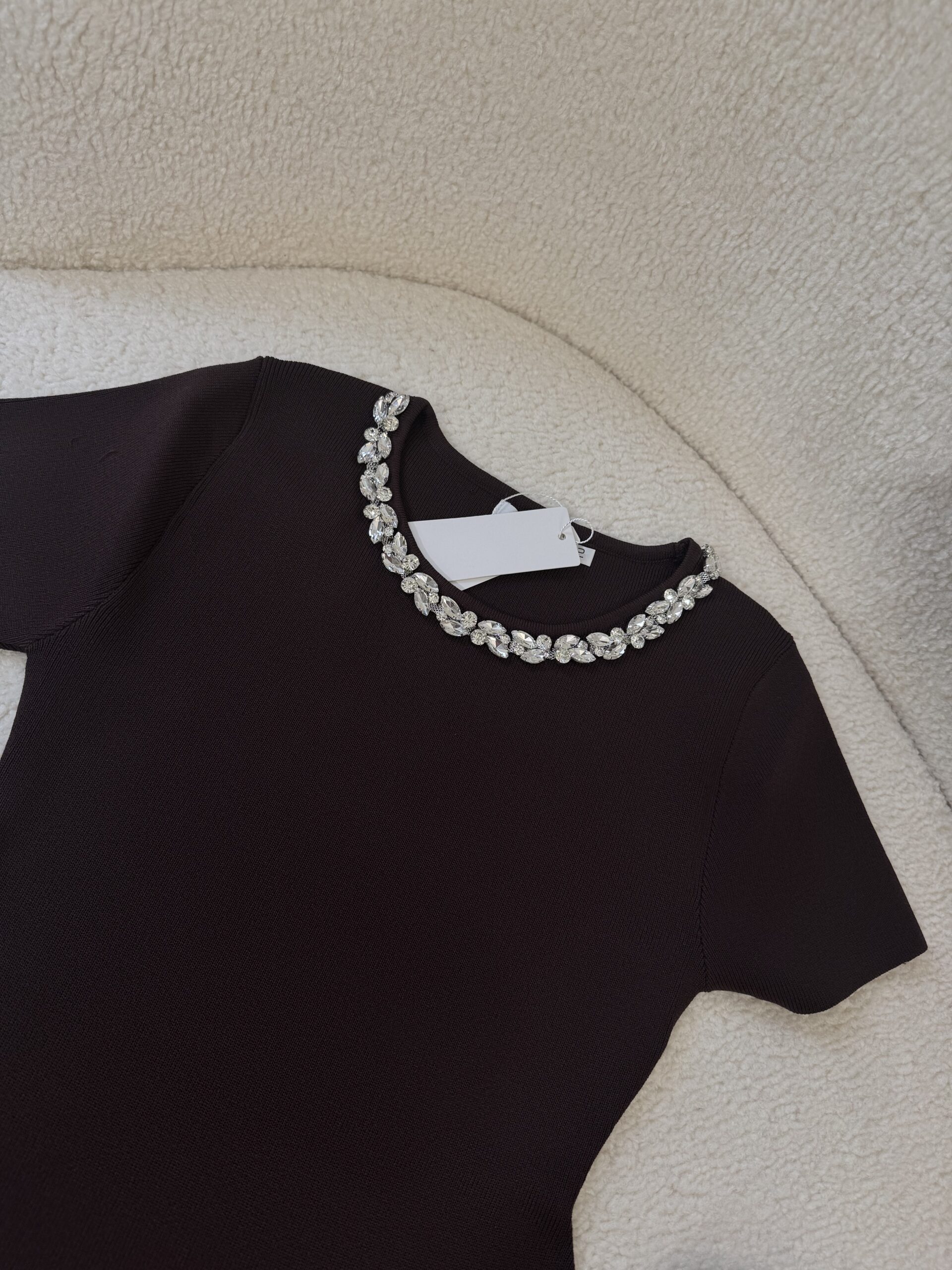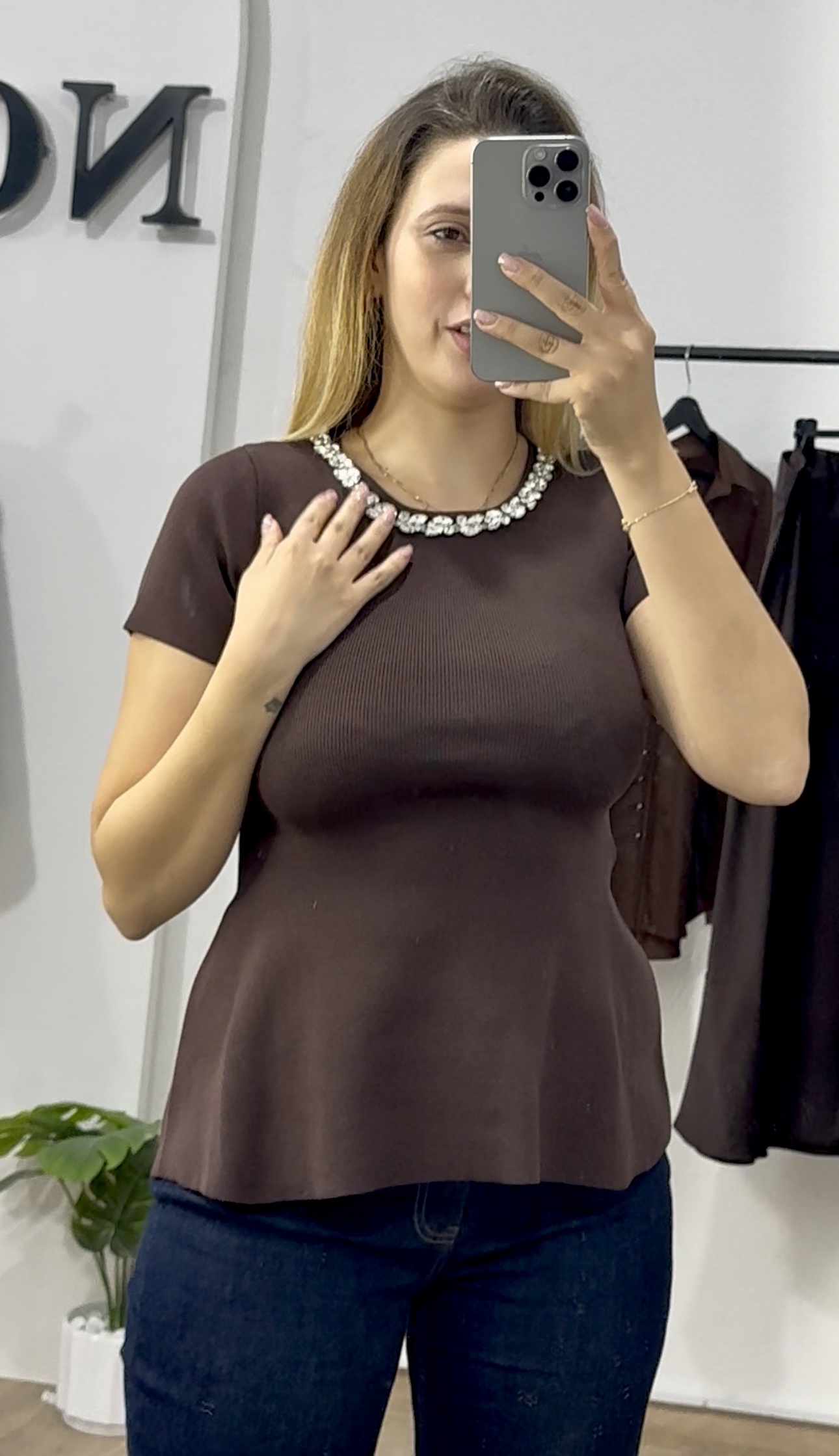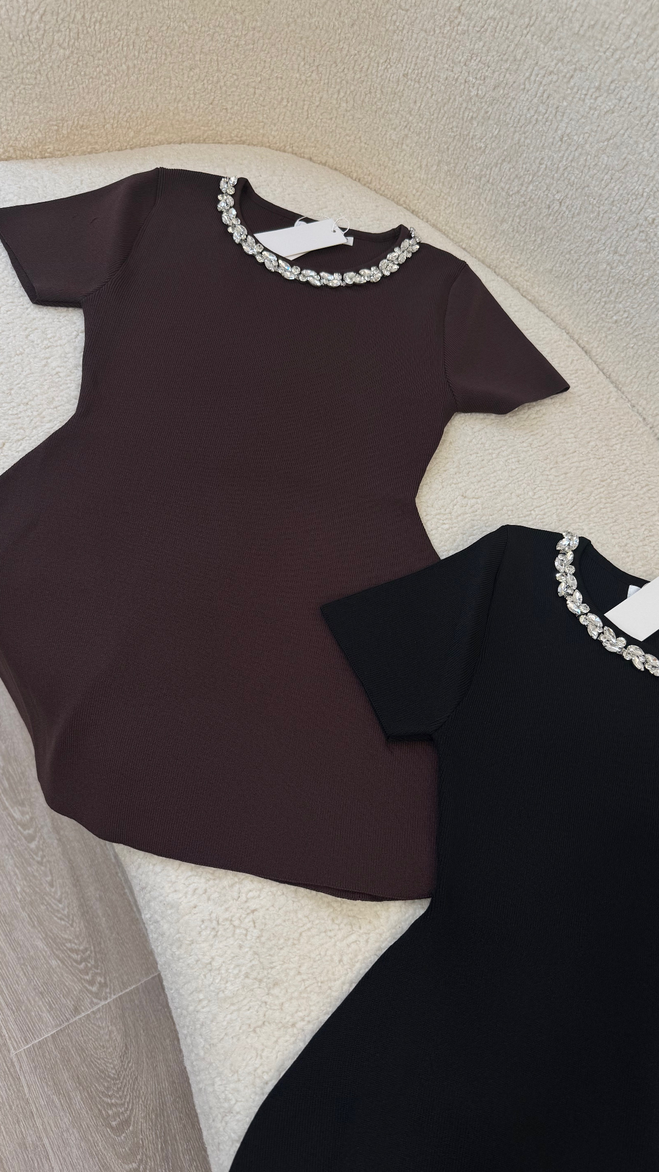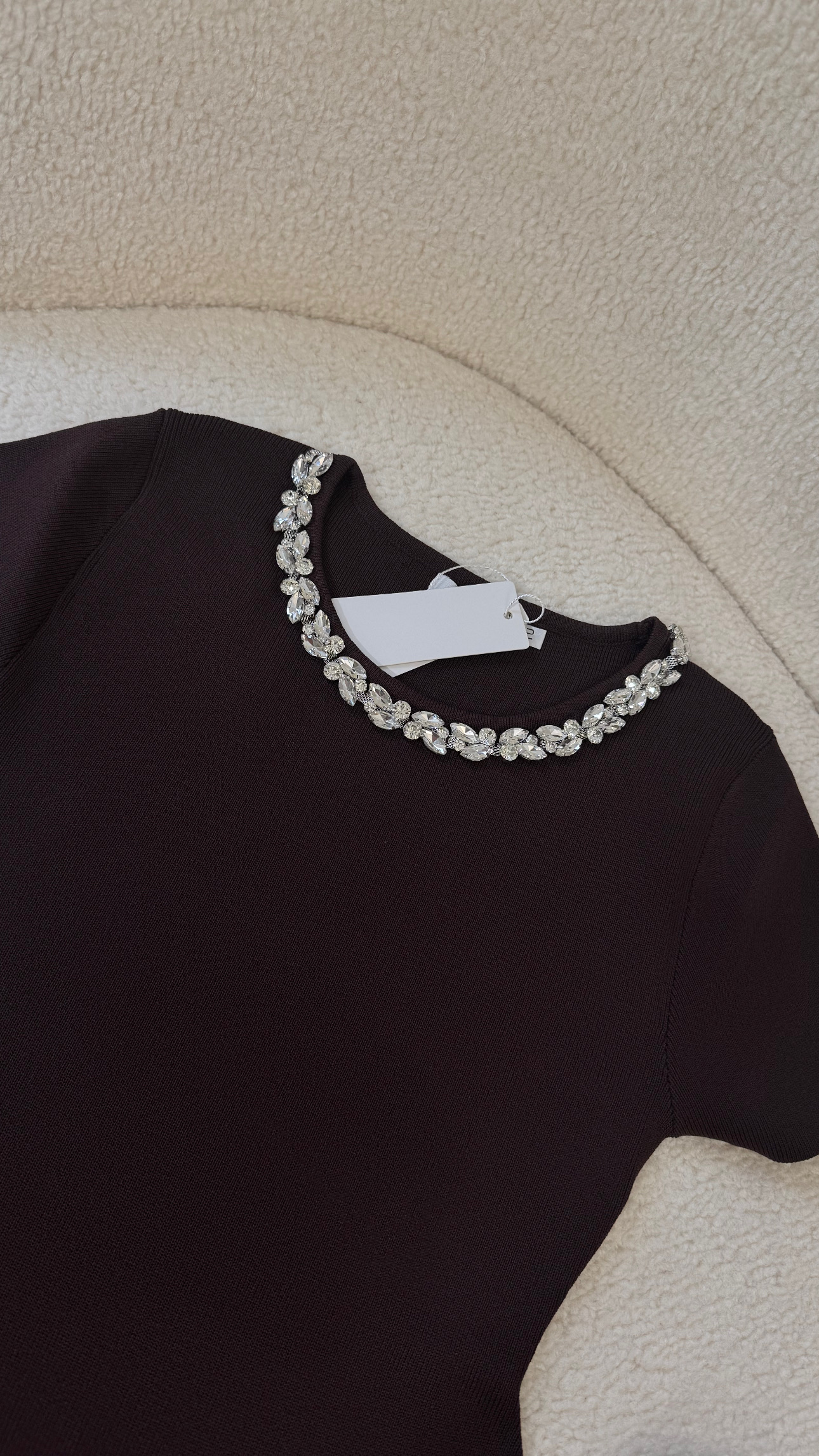 Pull en maille fine, cintré à la taille puis légèrement évasé sur le bas, offrant une silhouette élégante et féminine. Le col orné de strass apporte une touche lumineuse et raffinée, parfaite pour sublimer une tenue sans effort. Doux, confortable et chic, c’est le pull idéal pour des looks sophistiqués du quotidien ou des soirées habillées.