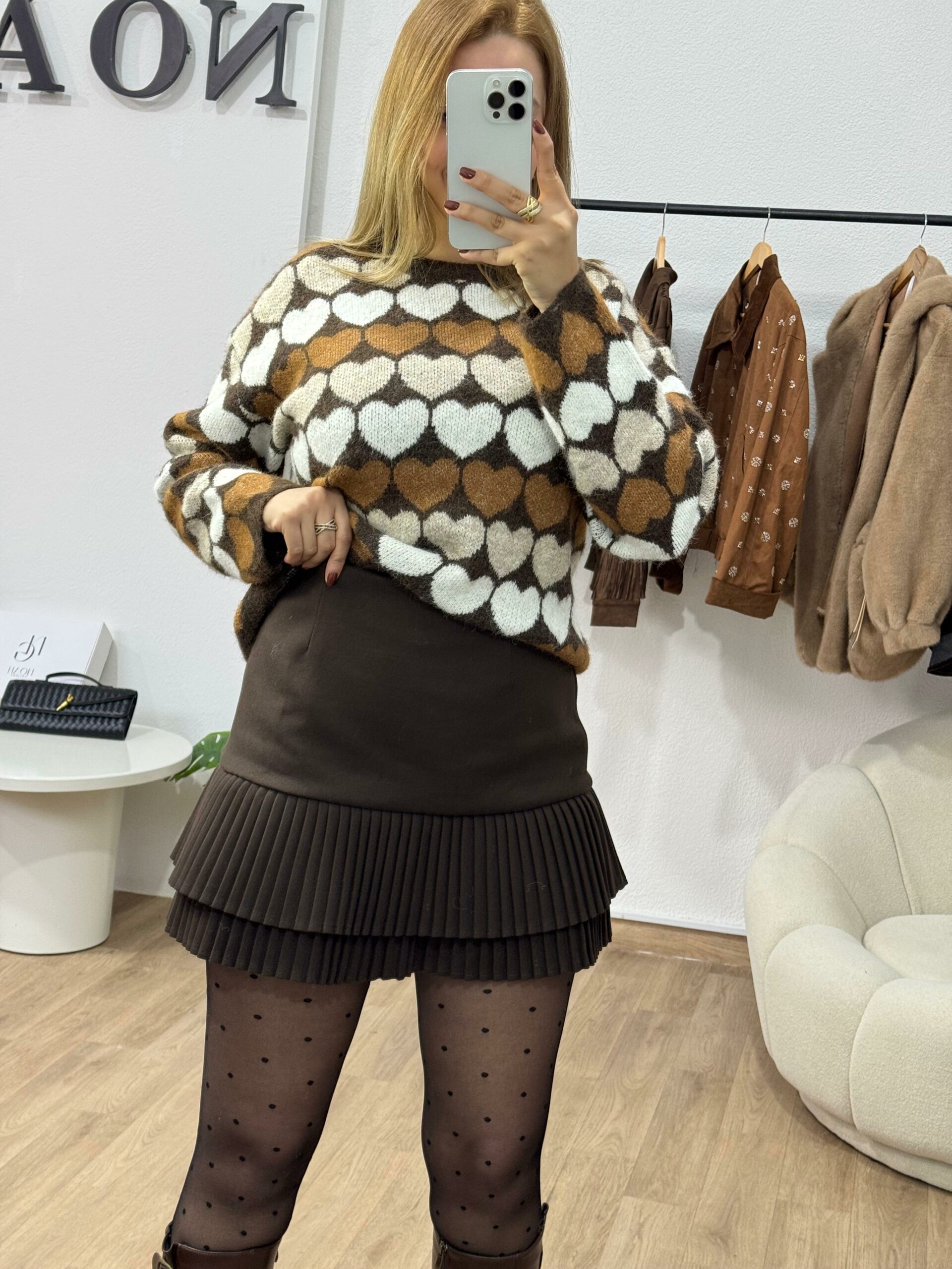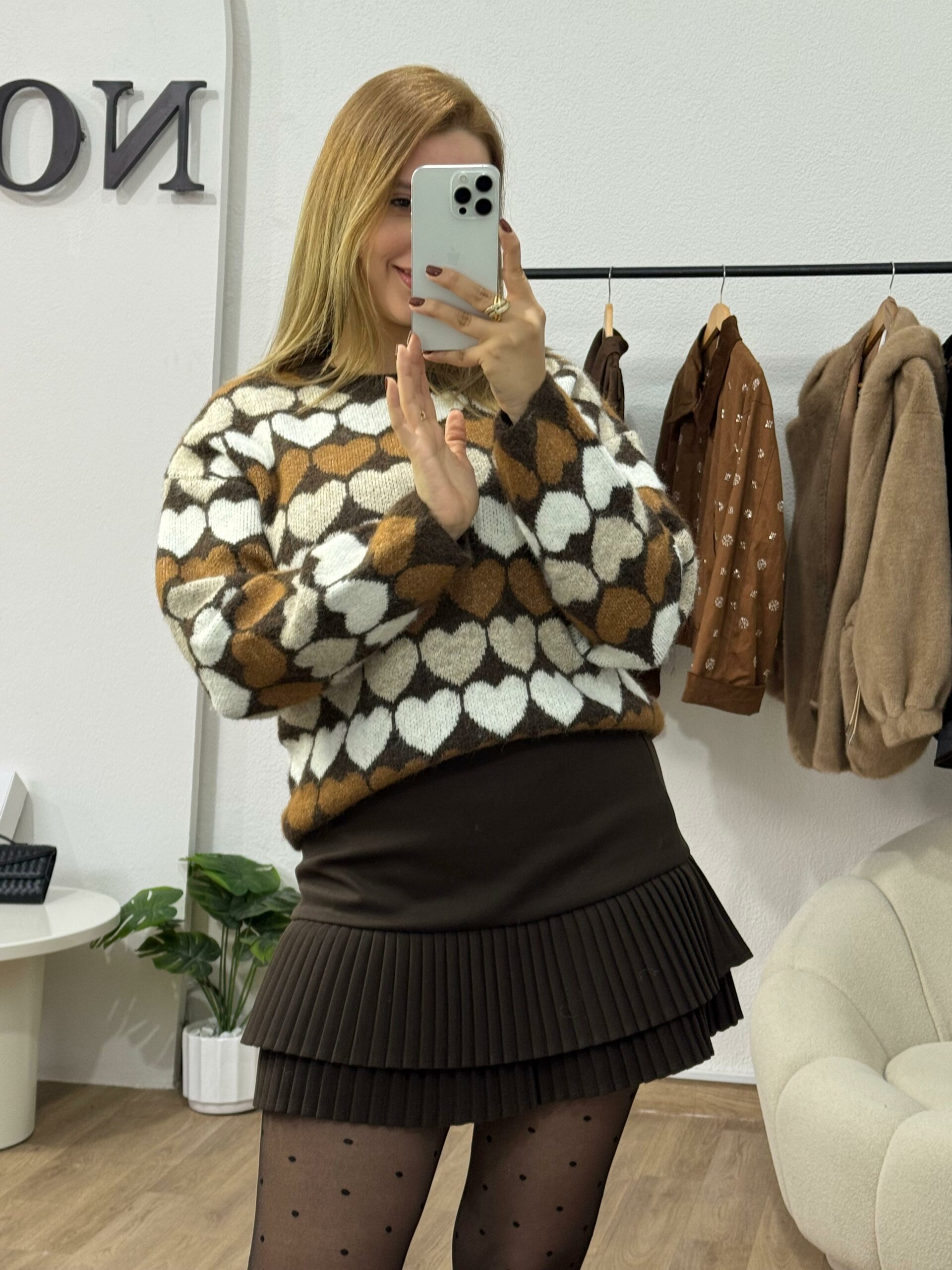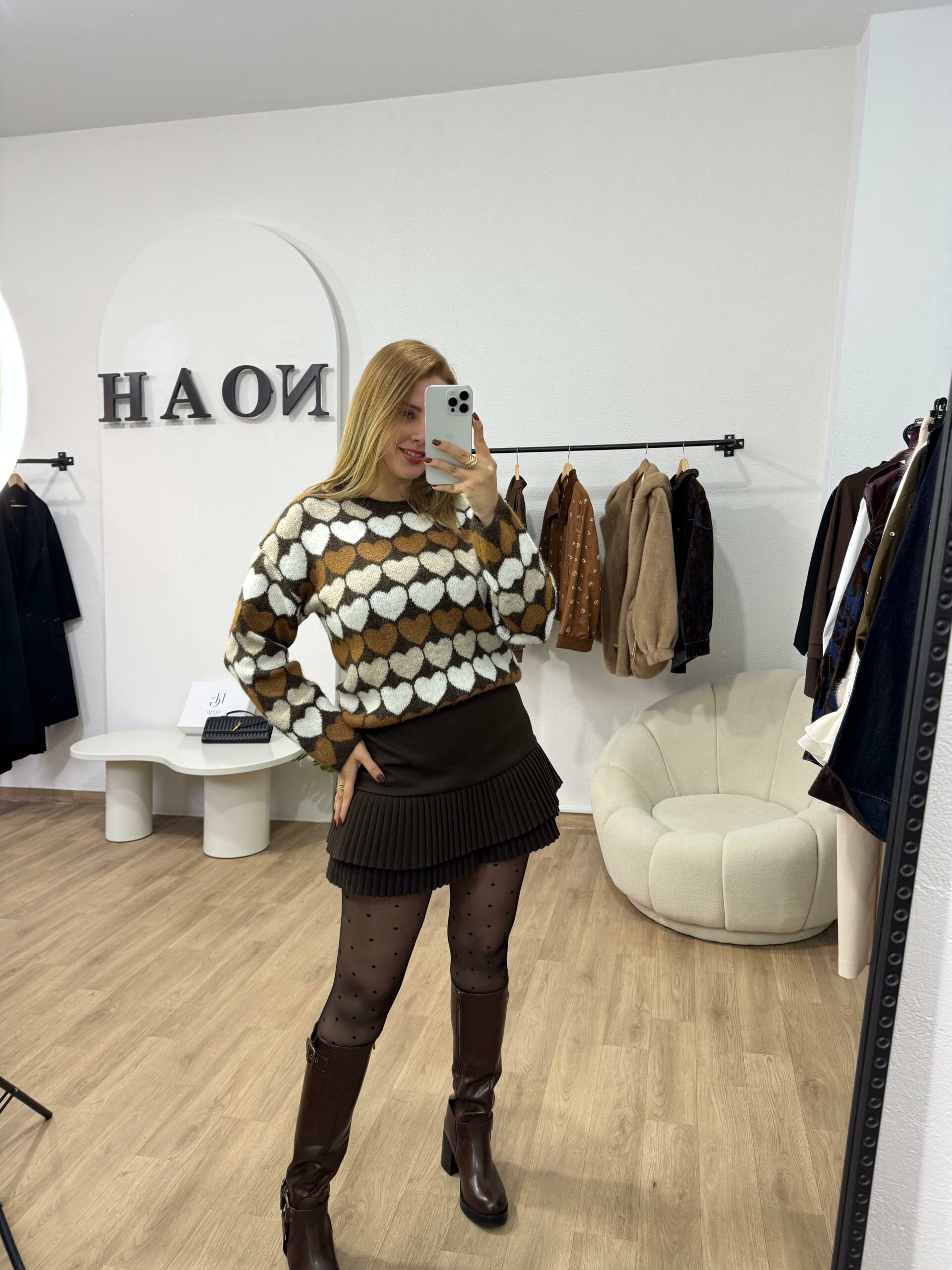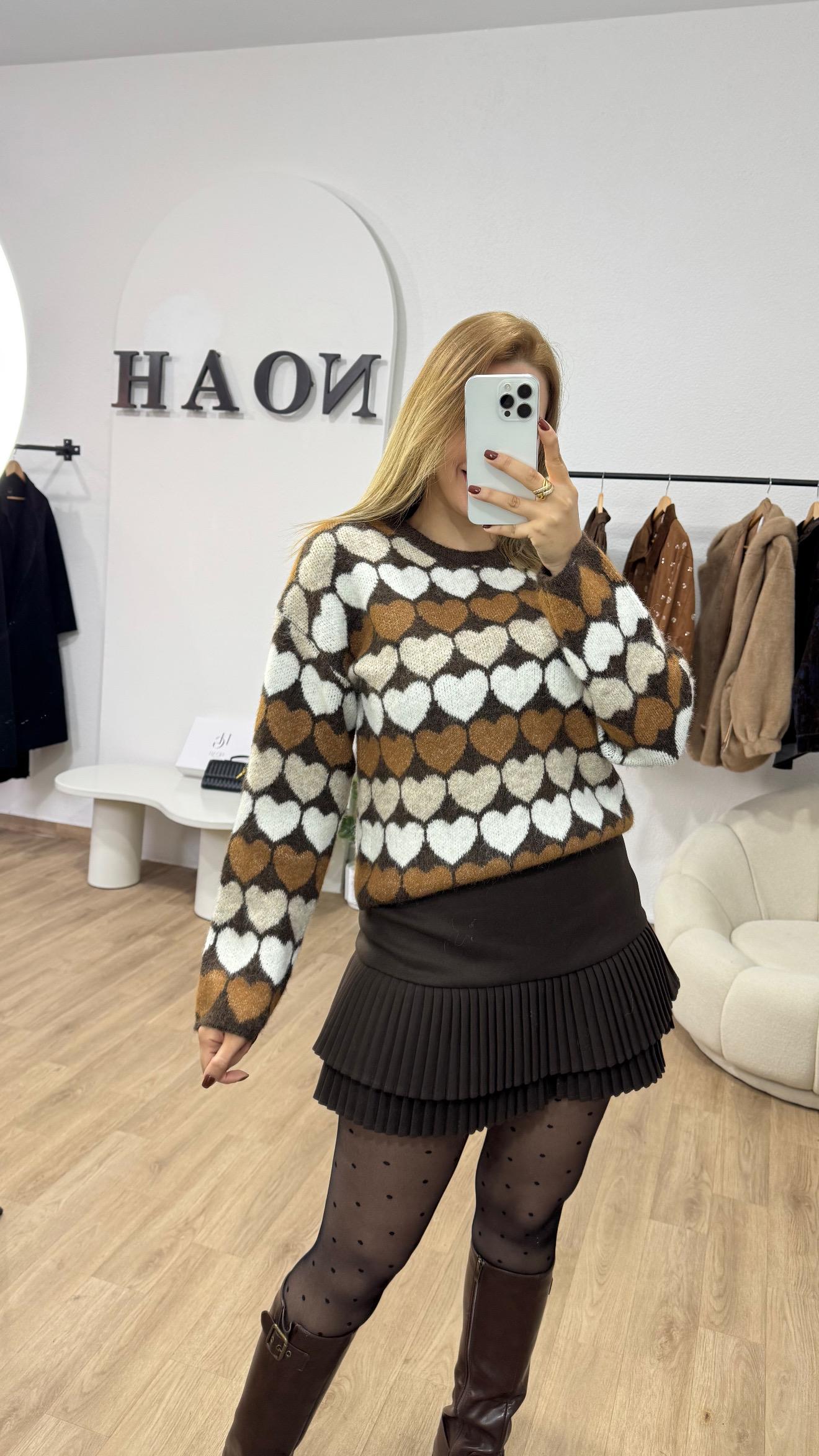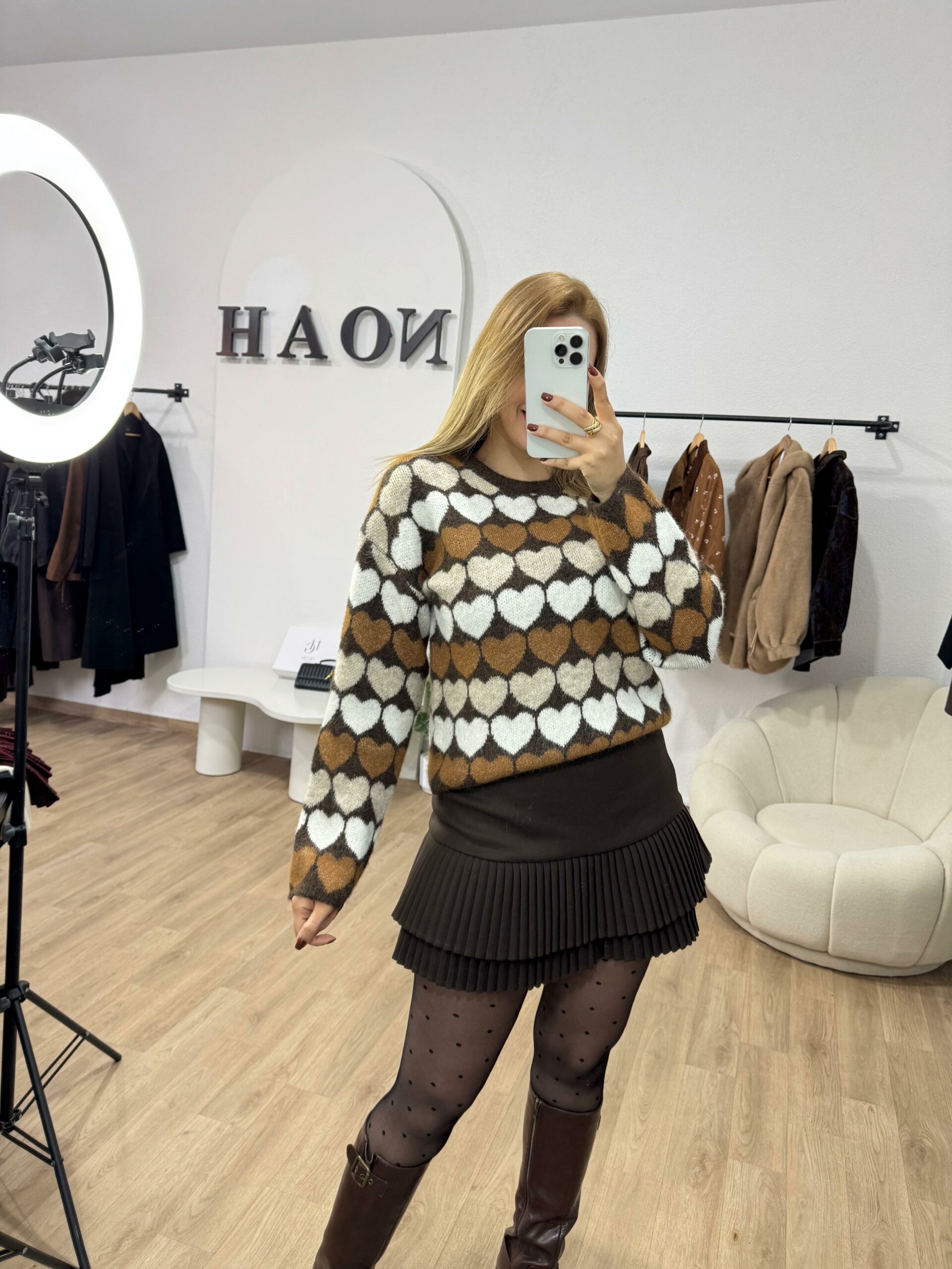 Pull orné de motifs en cœurs, à la fois doux et féminin, idéal pour apporter une touche romantique à votre tenue. Confectionné dans une matière confortable et agréable à porter, il allie chaleur et style au quotidien. Facile à associer avec un jean, une jupe ou un pantalon, ce pull est parfait pour un look casual chic, plein de douceur et de charme. ❤️✨