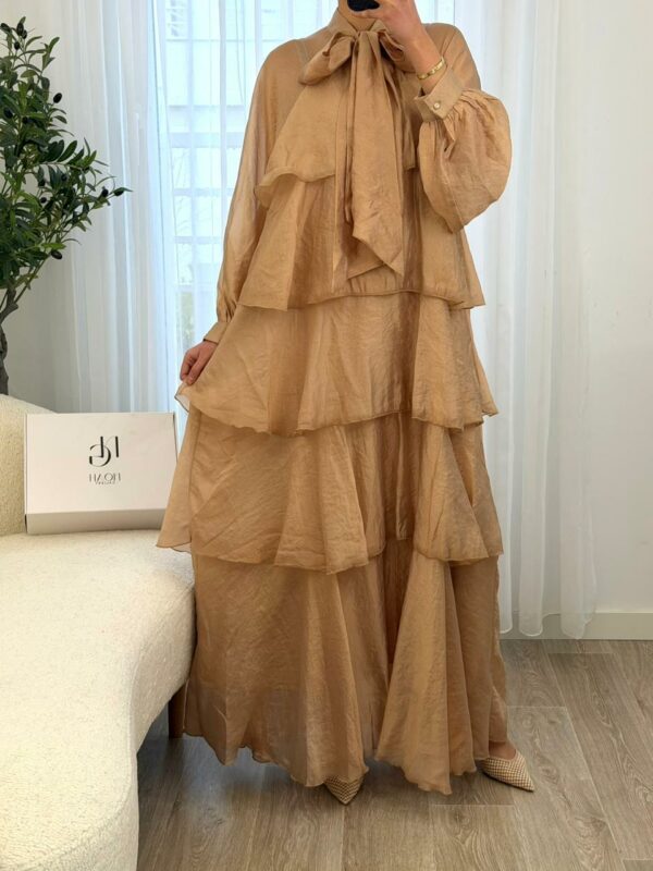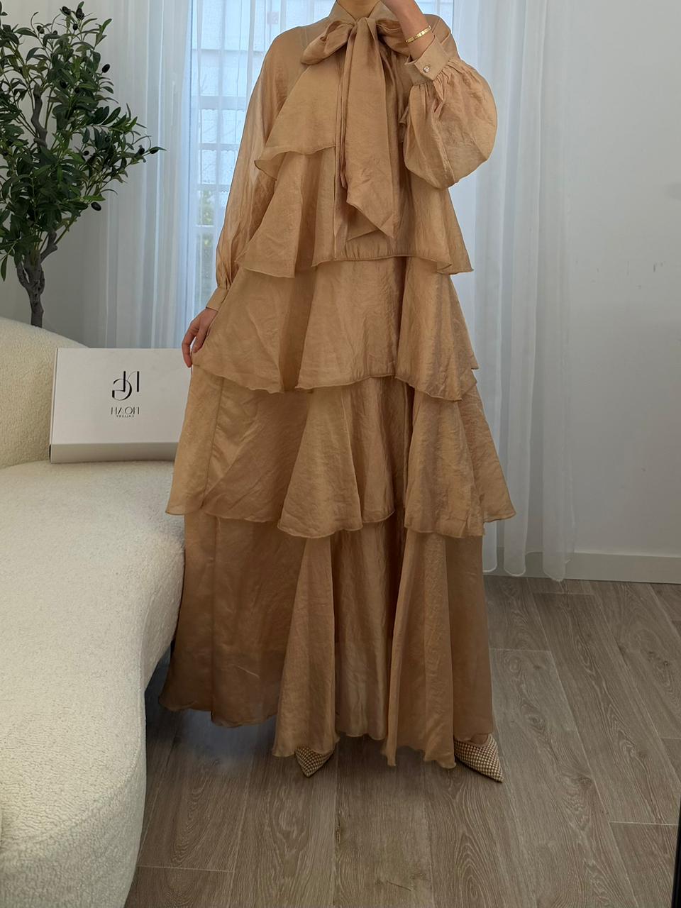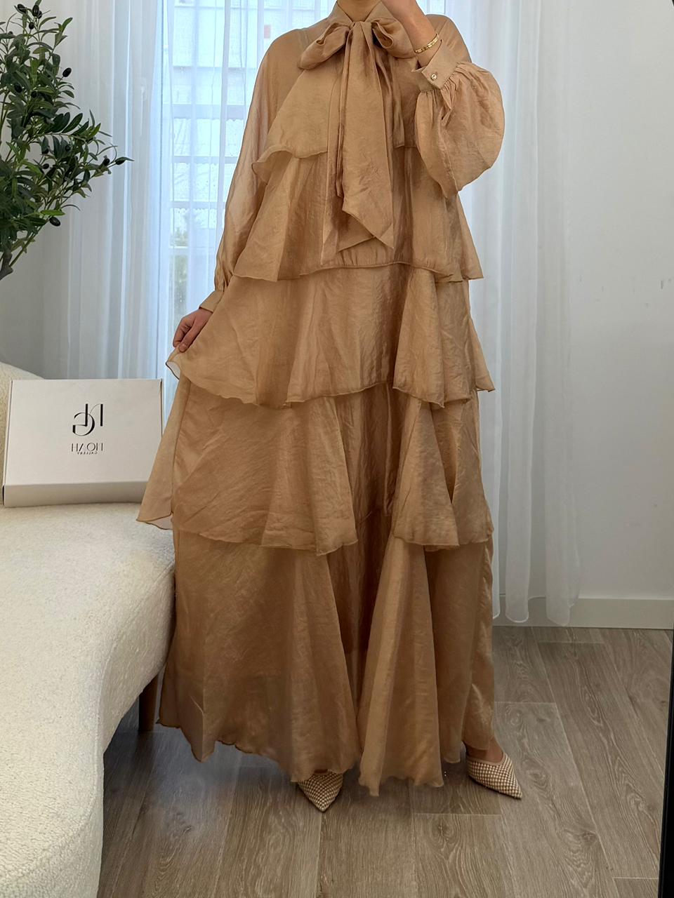 Robe Cascade Dorée est une pièce élégante et fluide qui séduit par ses volants superposés et sa coupe longue pleine de grâce. Sa matière légère offre un joli mouvement à chaque pas, tandis que le nœud délicat au col ajoute une touche raffinée et féminine. Parfaite pour les occasions spéciales ou pour un look chic au quotidien, cette robe allie confort et élégance avec beaucoup de charme.