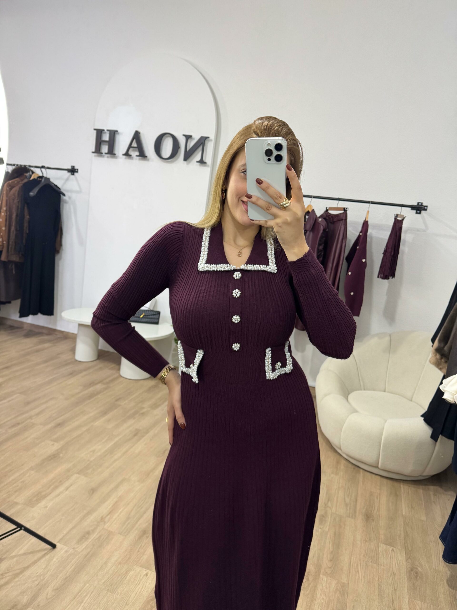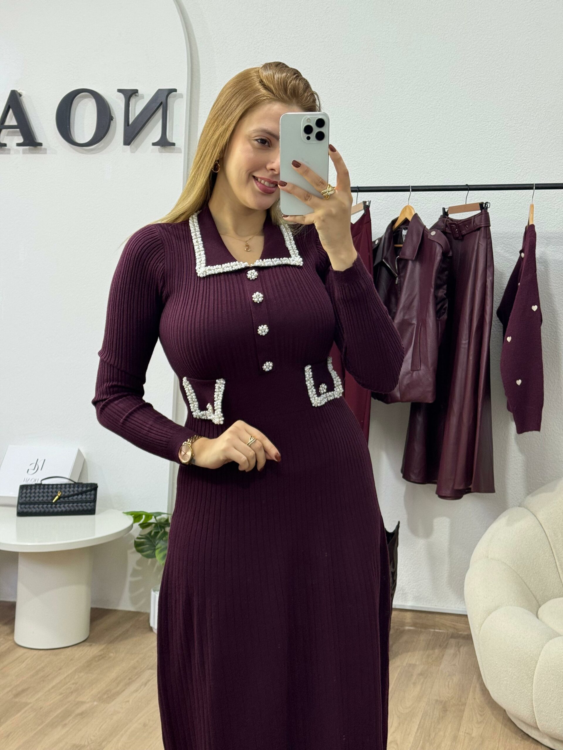 Laisse-toi séduire par l’élégance intemporelle de cette robe bordeaux au style raffiné. Conçue dans un tissu fluide et confortable, elle se distingue par ses détails contrastés au col et aux poches, ajoutant une touche de sophistication à ton look. Sa coupe longue et légèrement évasée met en valeur la silhouette avec discrétion et charme. Parfaite pour une sortie chic ou une occasion spéciale, cette robe incarne la féminité, la classe et le bon goût en toute simplicité.