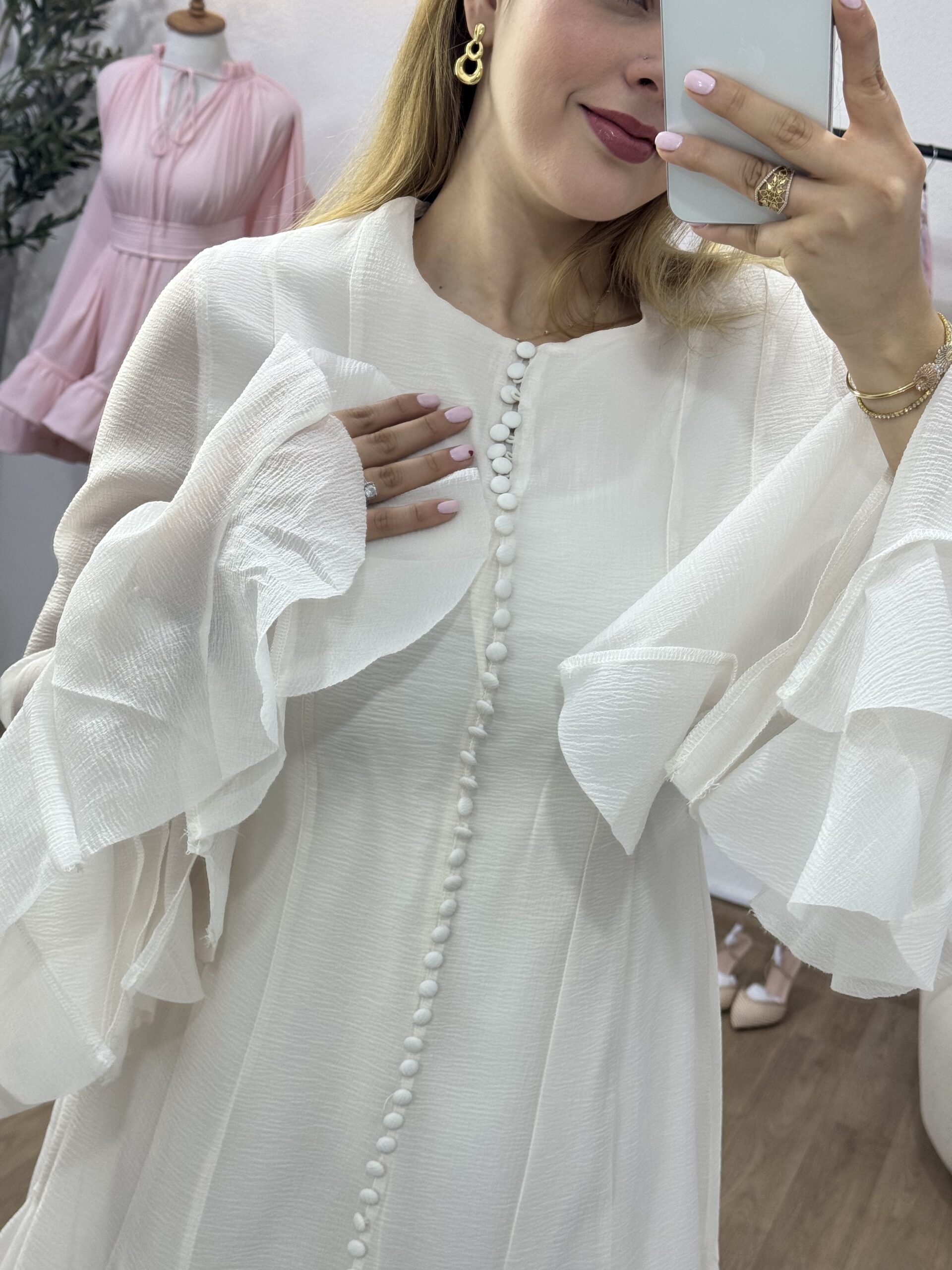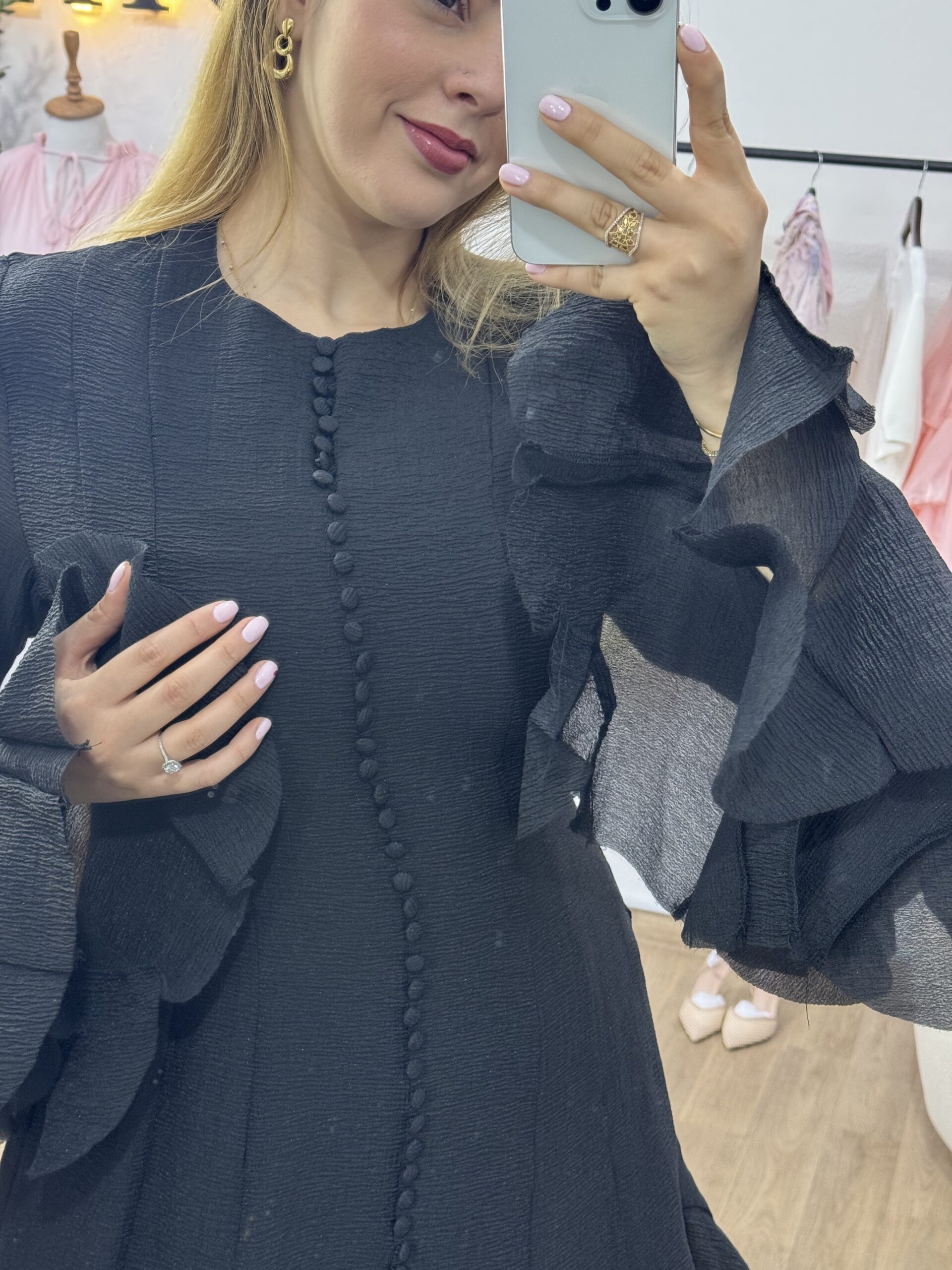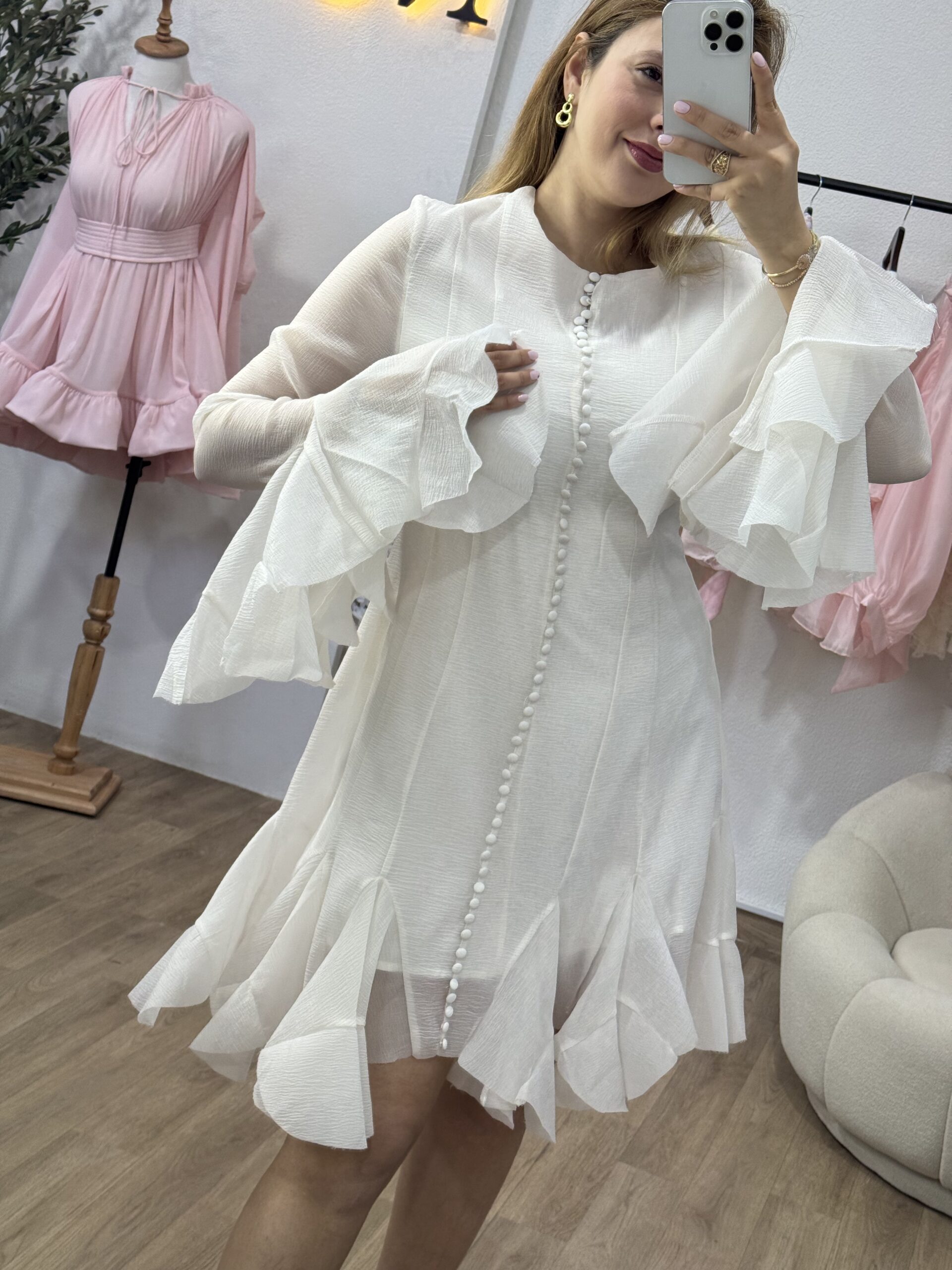 La robe “Élégance Volantée” séduit par sa coupe fluide et ses jolis volants qui apportent une touche féminine et raffinée. Sa matière légère et sa finition soignée offrent un tombé élégant, parfait pour les occasions spéciales comme pour les sorties chic. Disponible en plusieurs couleurs intemporelles, elle allie simplicité et charme avec beaucoup de style.