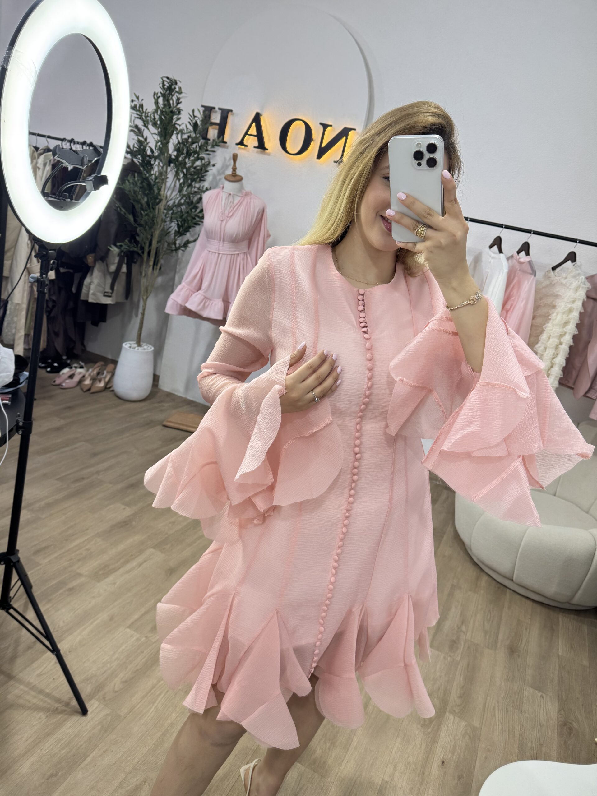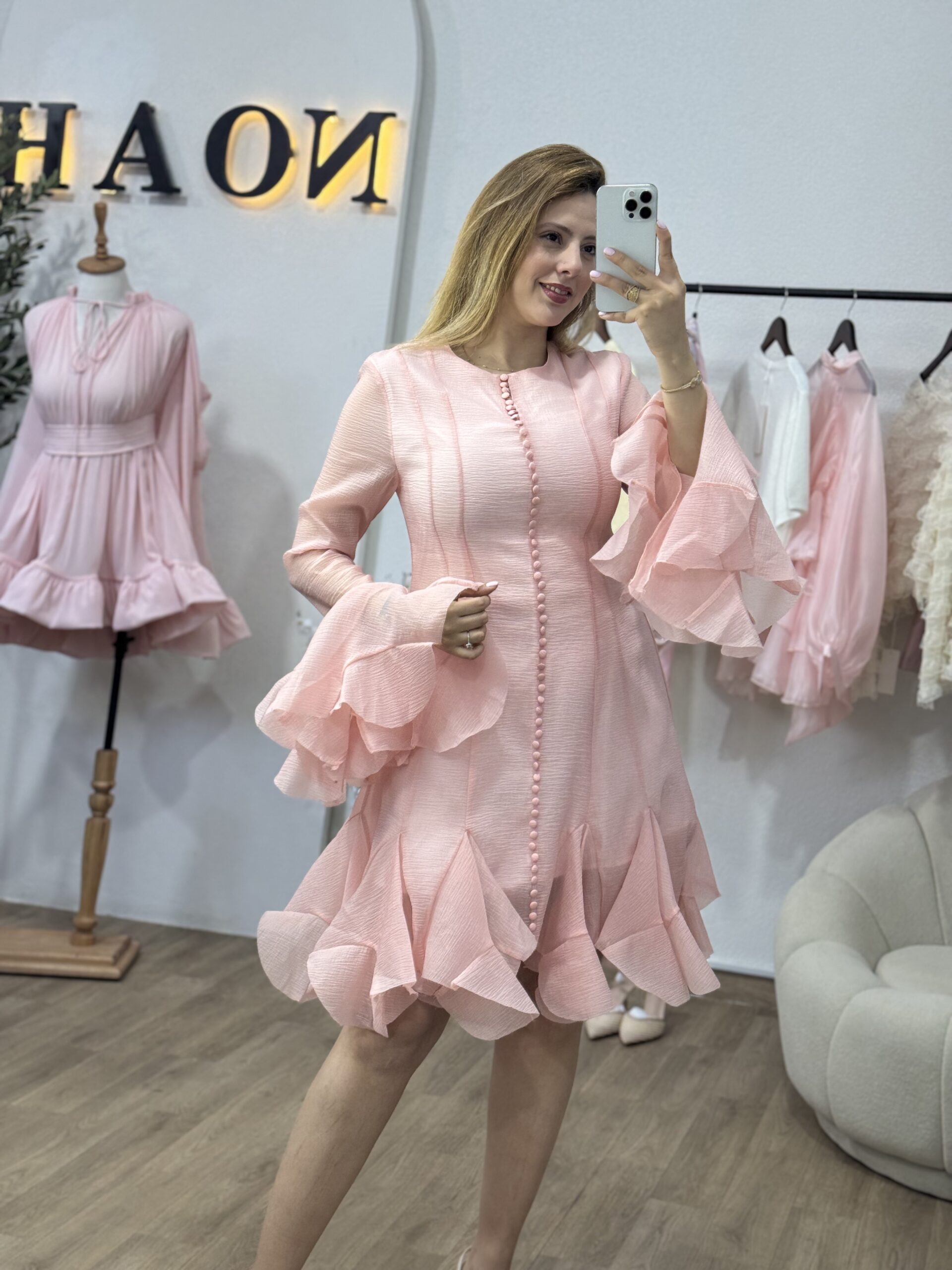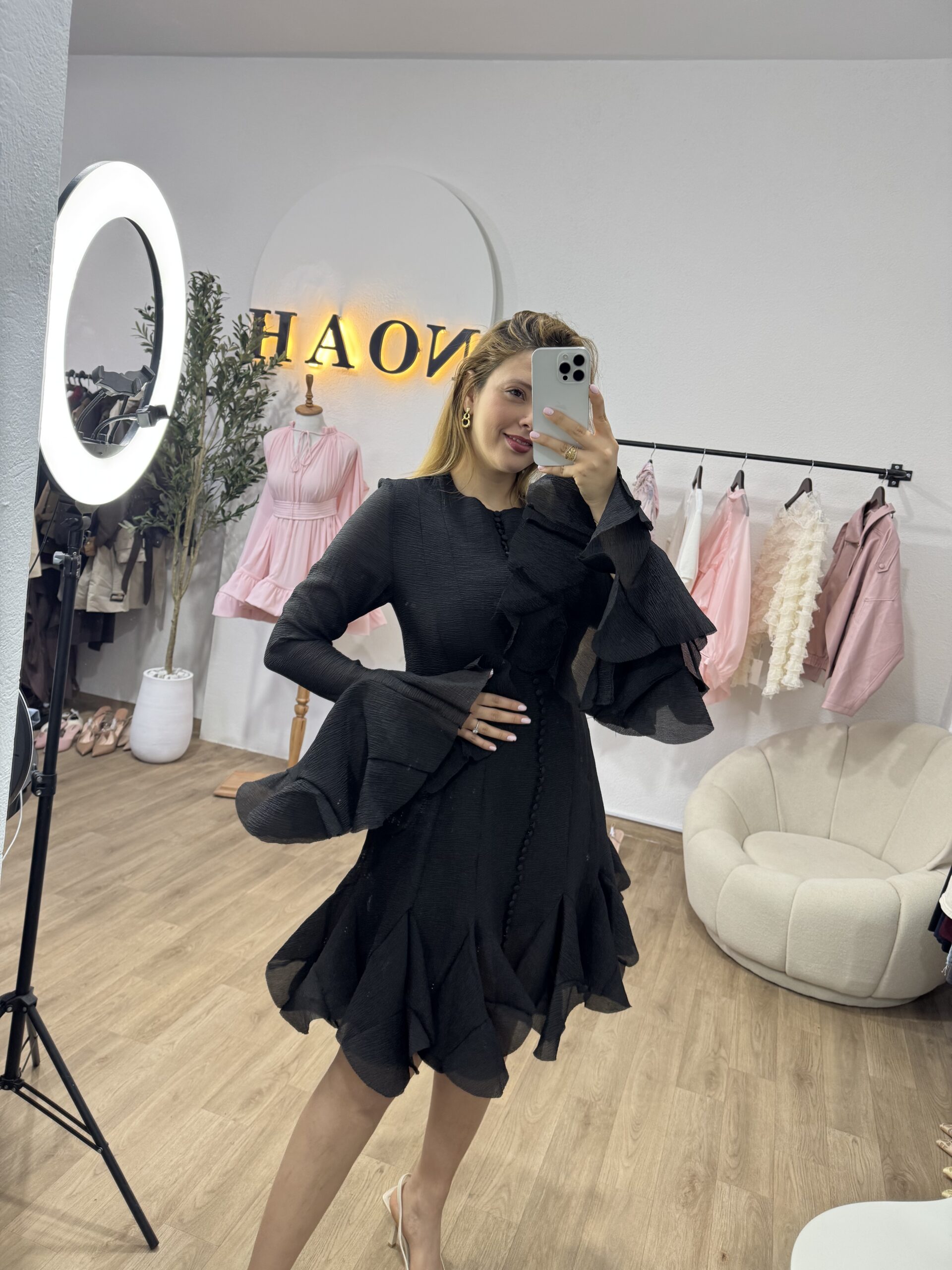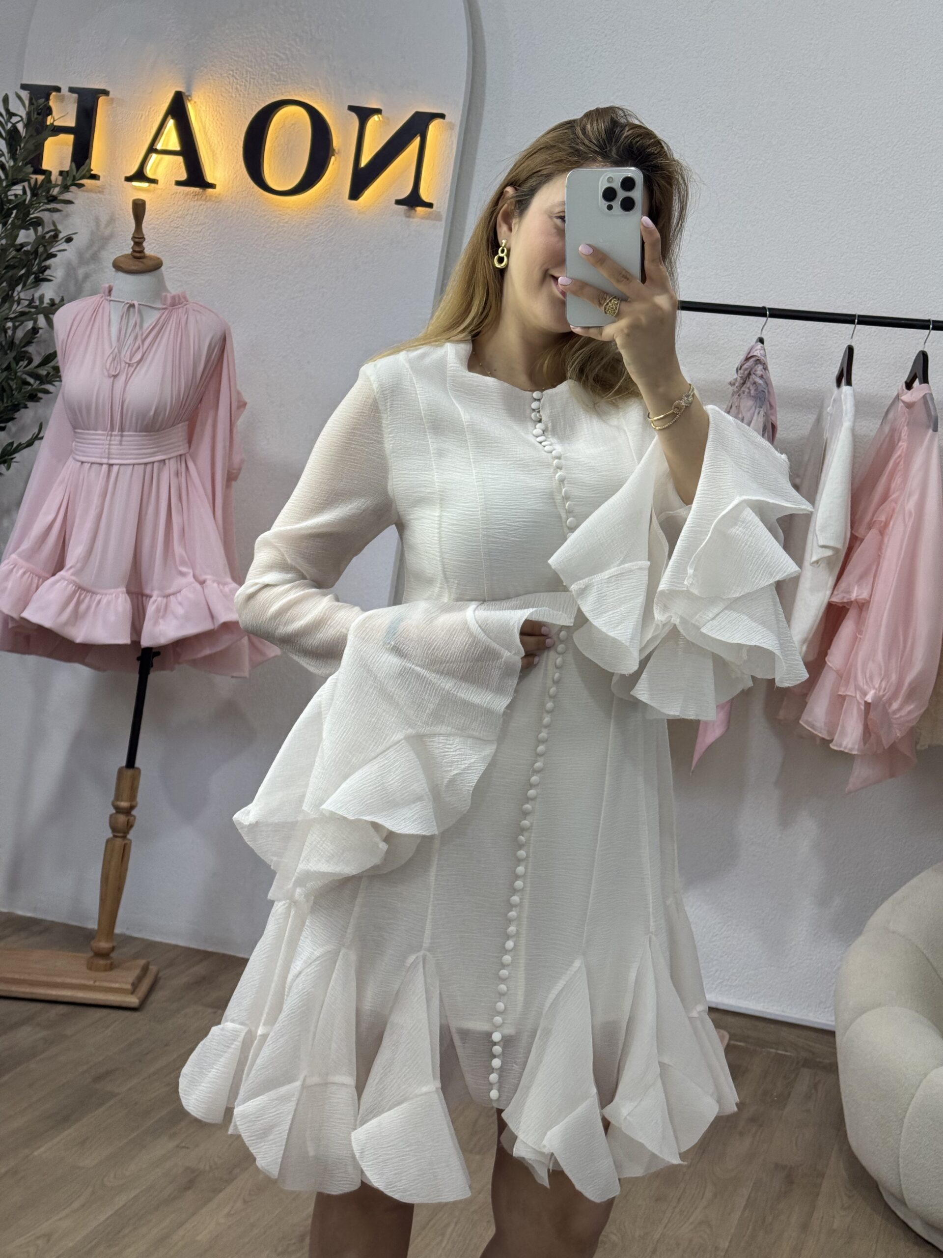 La robe “Élégance Volantée” séduit par sa coupe fluide et ses jolis volants qui apportent une touche féminine et raffinée. Sa matière légère et sa finition soignée offrent un tombé élégant, parfait pour les occasions spéciales comme pour les sorties chic. Disponible en plusieurs couleurs intemporelles, elle allie simplicité et charme avec beaucoup de style.