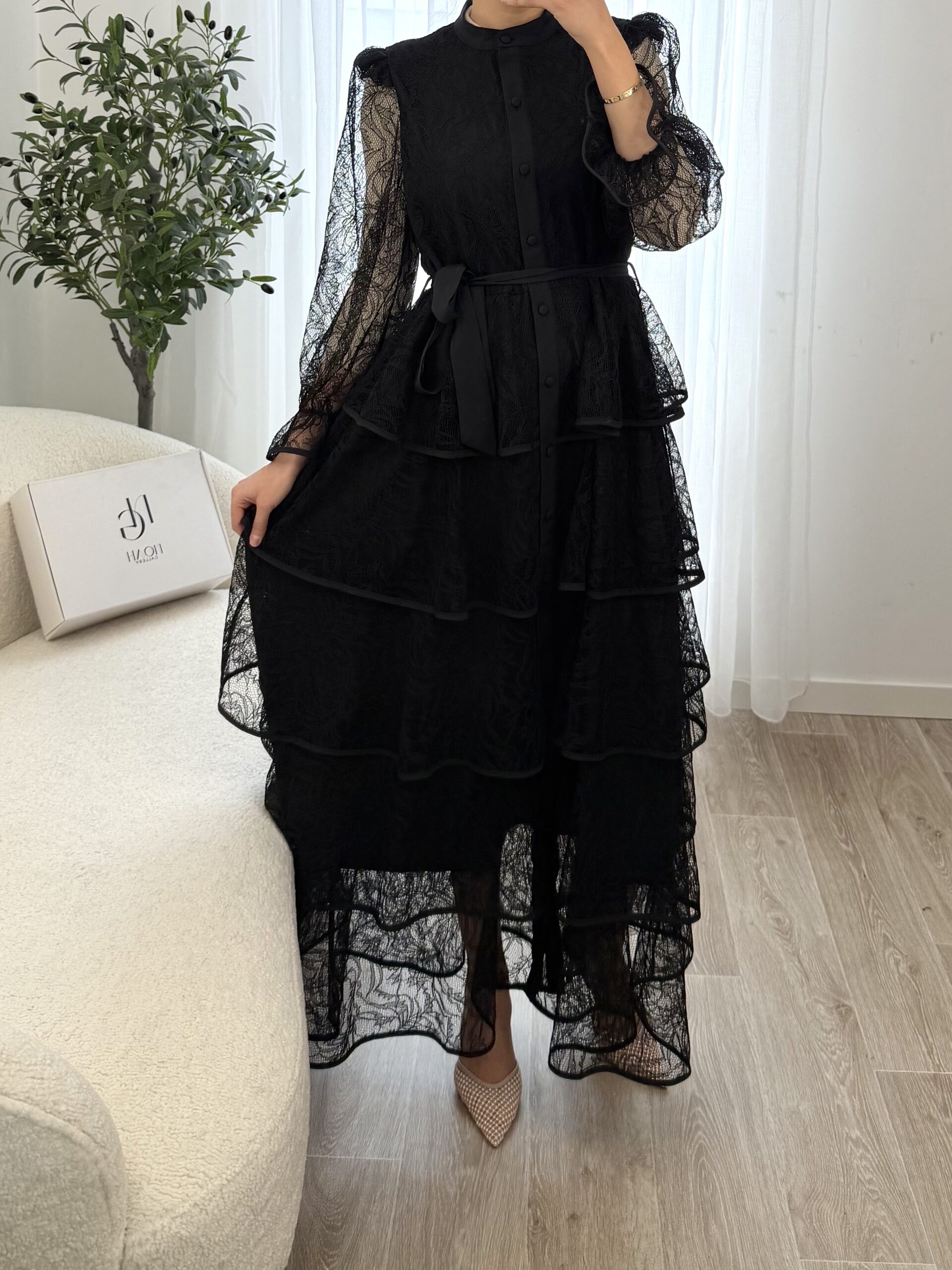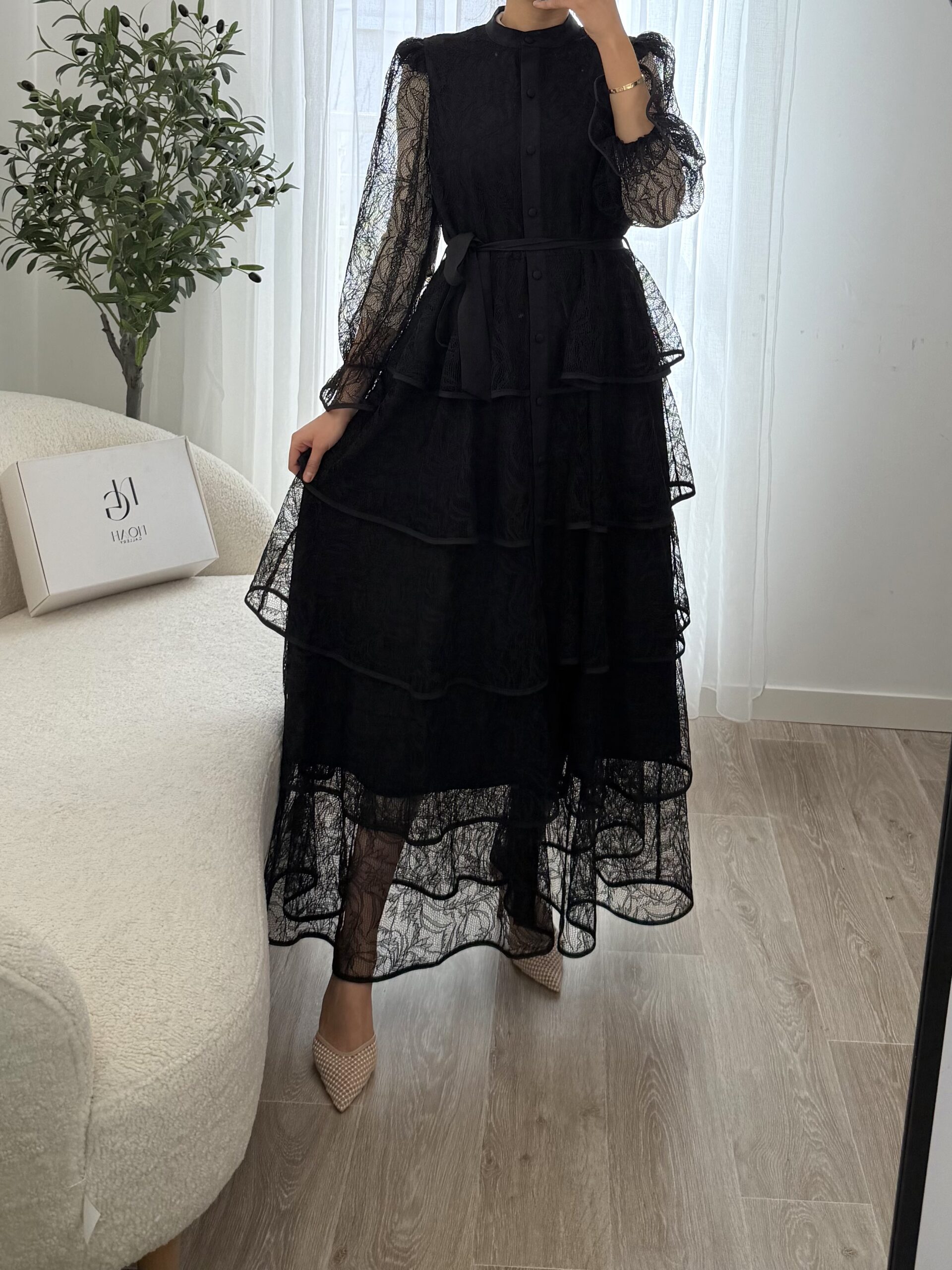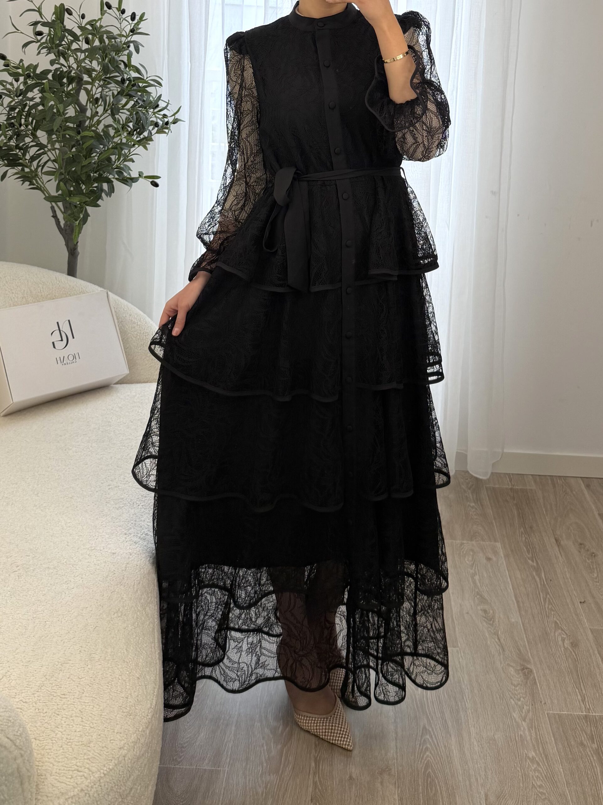 La Robe Élena est une pièce élégante et raffinée qui allie féminité et sophistication. Confectionnée dans une dentelle délicate, elle se distingue par ses superpositions de volants qui apportent du mouvement et une silhouette romantique.
