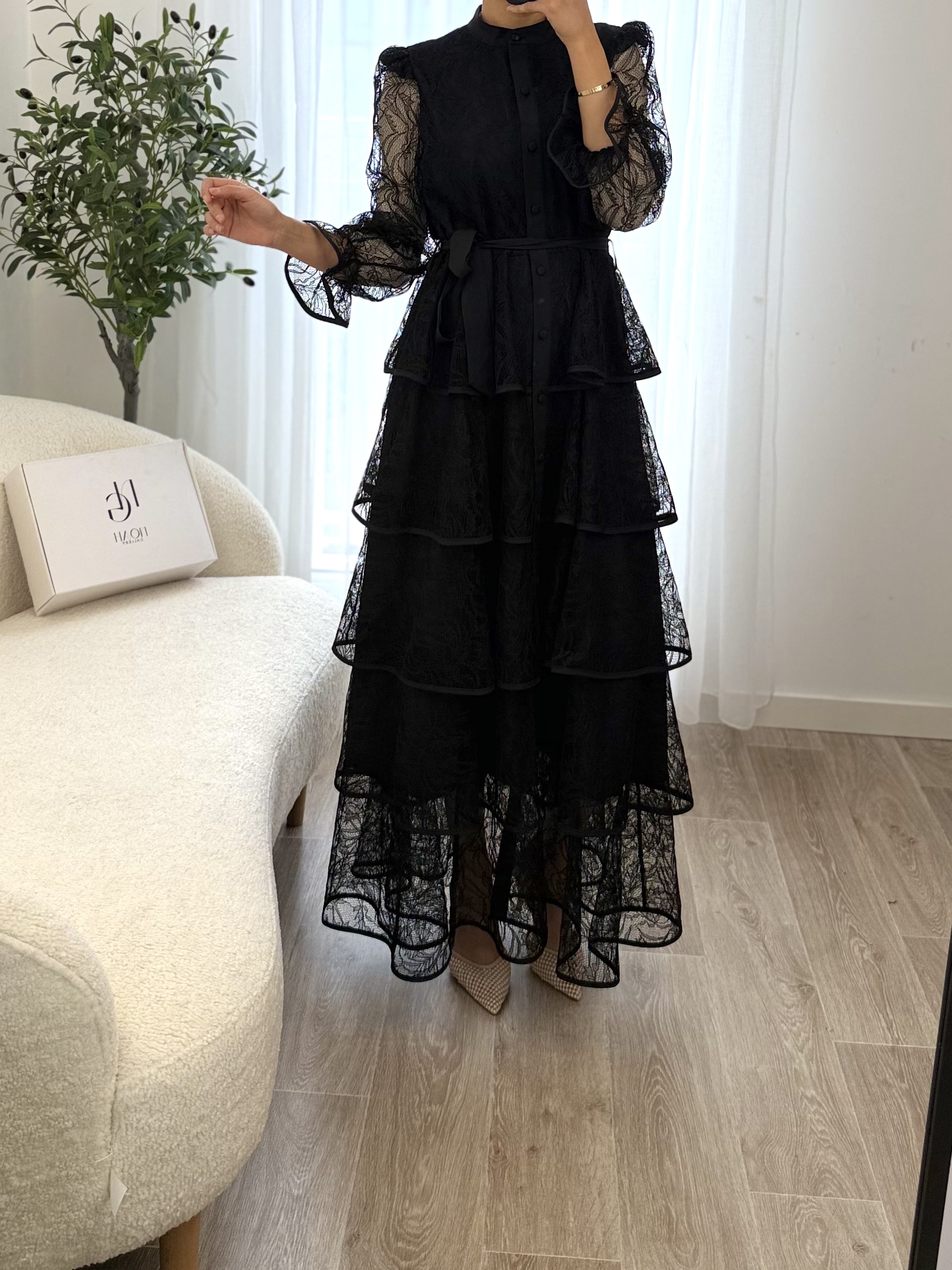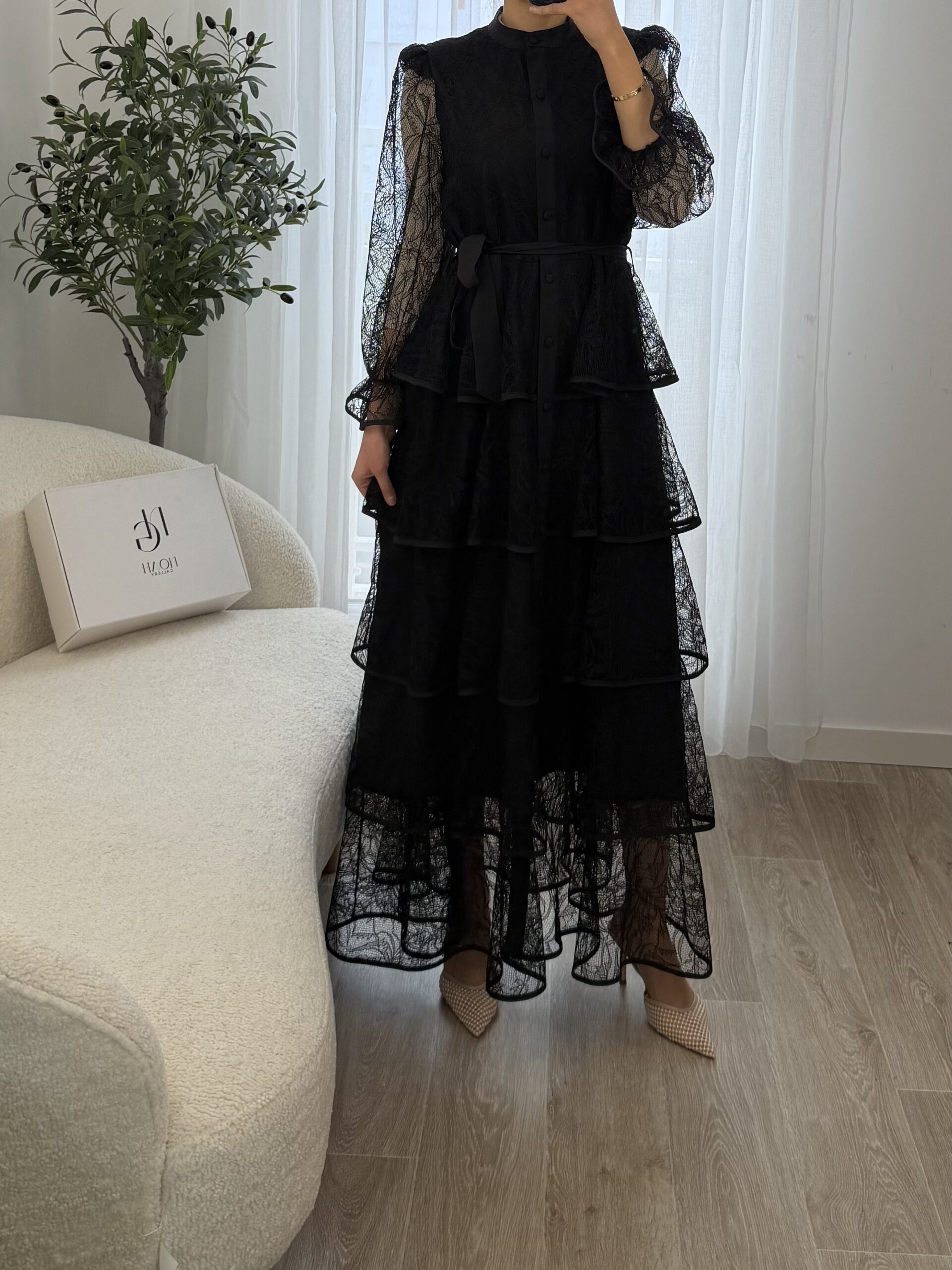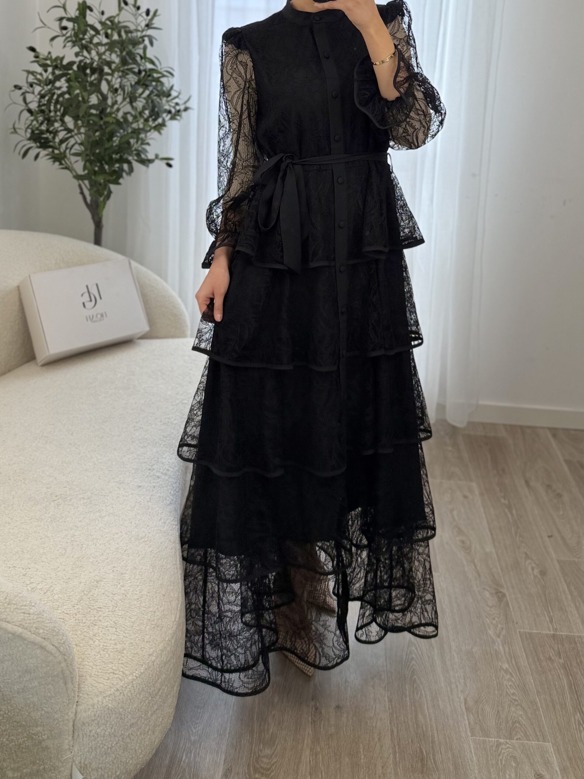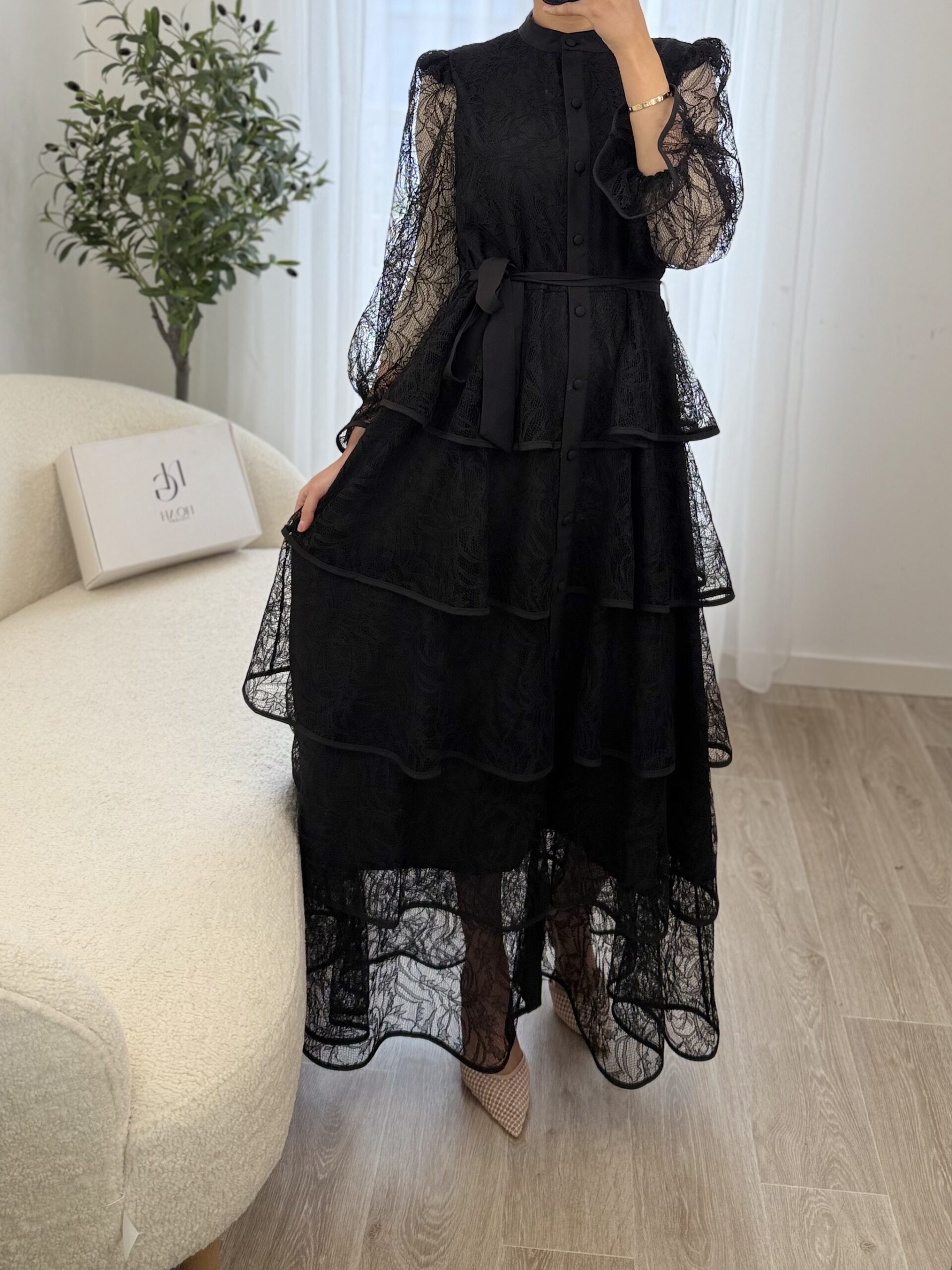 La Robe Élena est une pièce élégante et raffinée qui allie féminité et sophistication. Confectionnée dans une dentelle délicate, elle se distingue par ses superpositions de volants qui apportent du mouvement et une silhouette romantique.