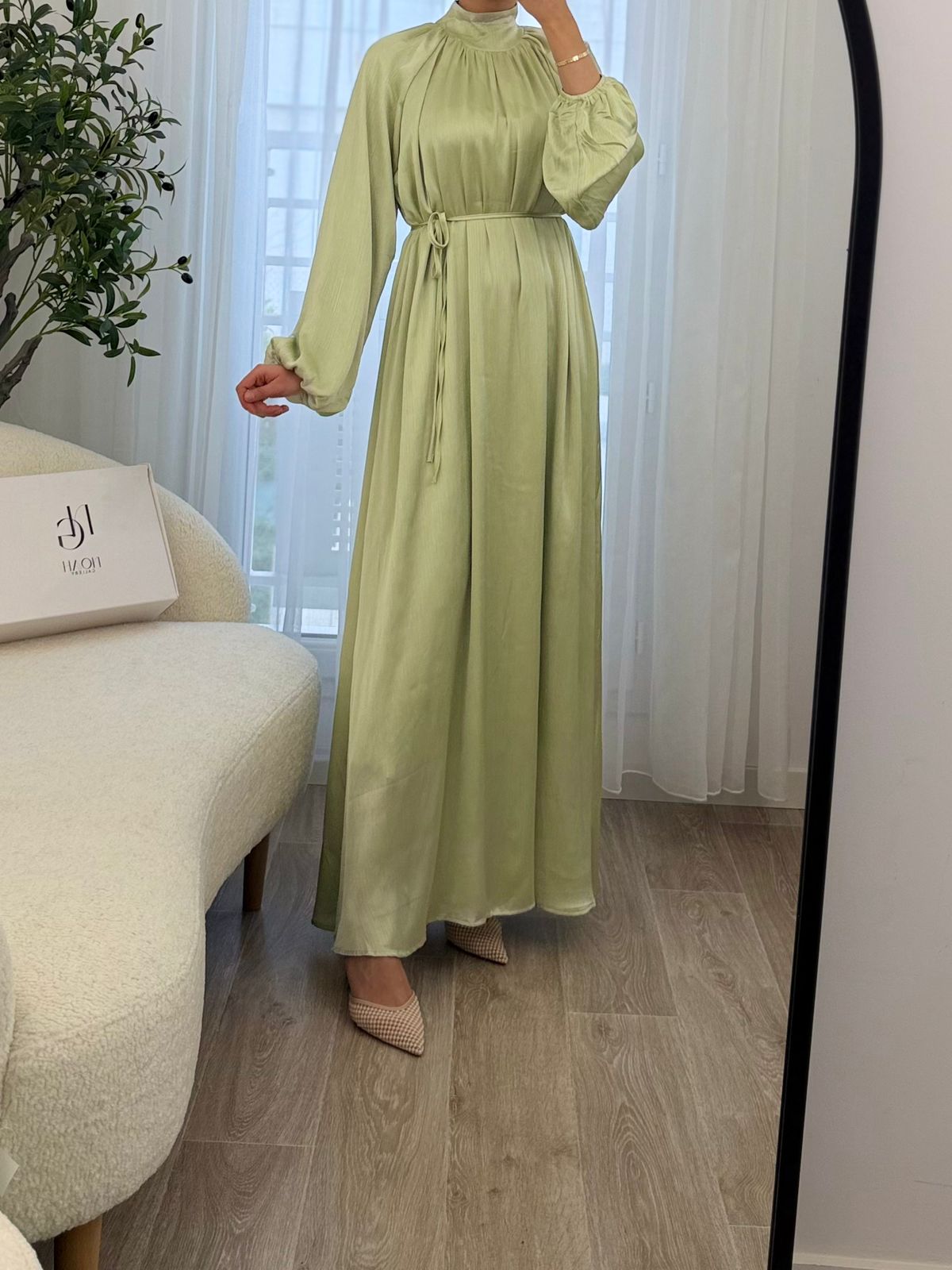 Robe longue au tombé fluide et élégant, confectionnée dans un tissu léger et doux au toucher. Son col montant apporte une touche raffinée, tandis que les manches bouffantes ajoutent du charme et de la féminité. La ceinture à nouer marque délicatement la taille pour une silhouette harmonieuse. Une pièce chic et intemporelle, parfaite aussi bien pour les occasions spéciales que pour un look élégant au quotidien. 🤍✨