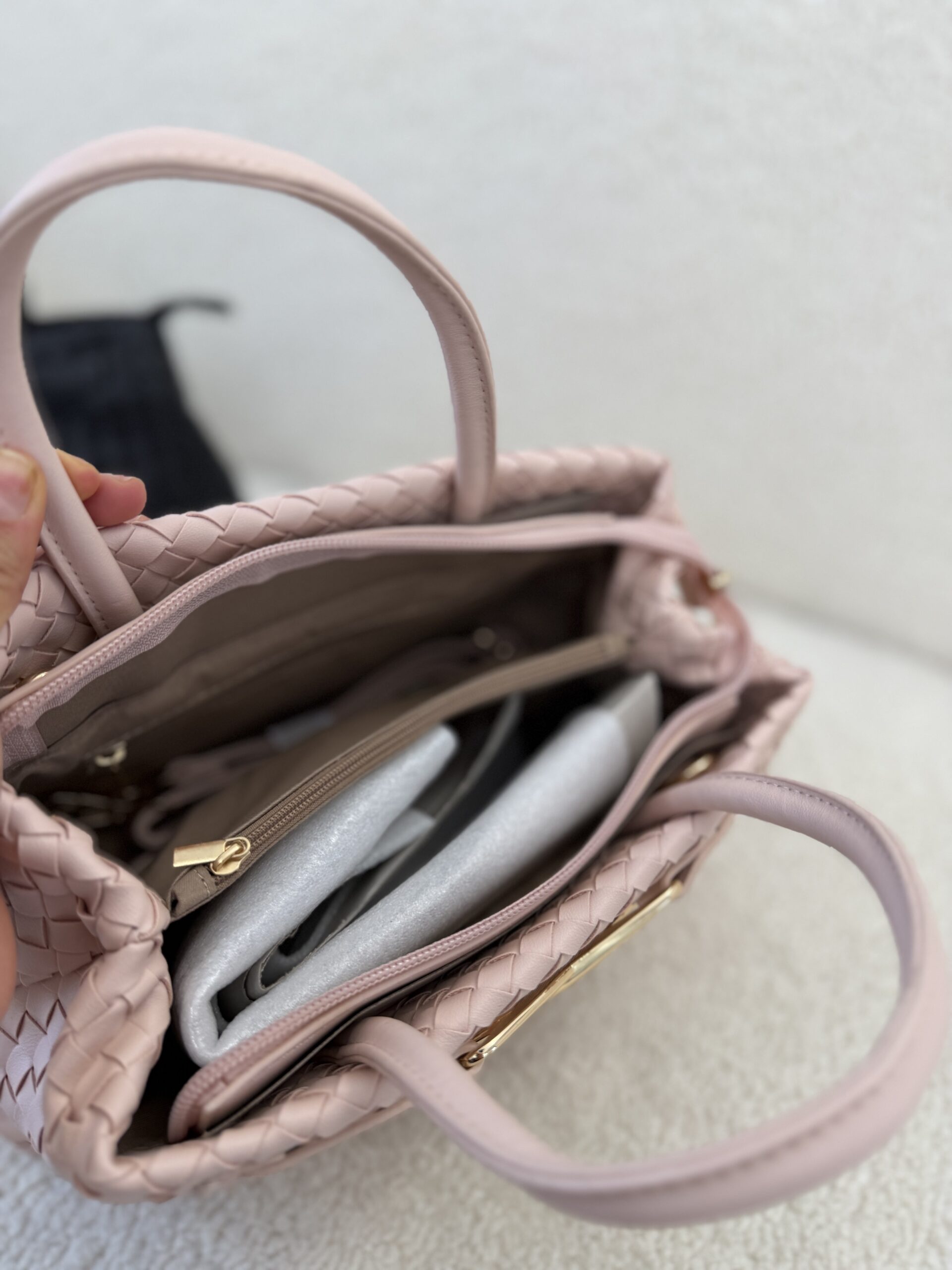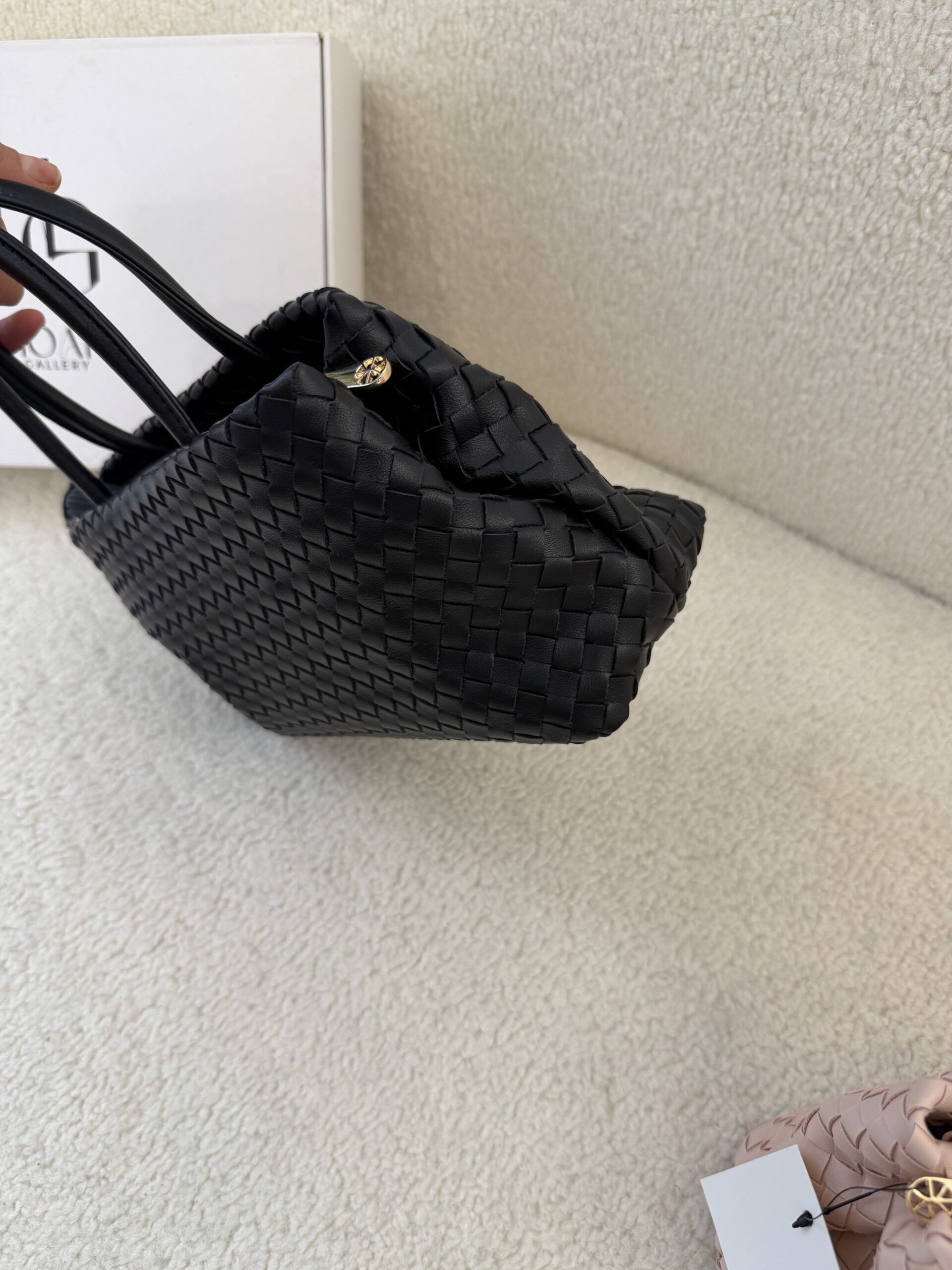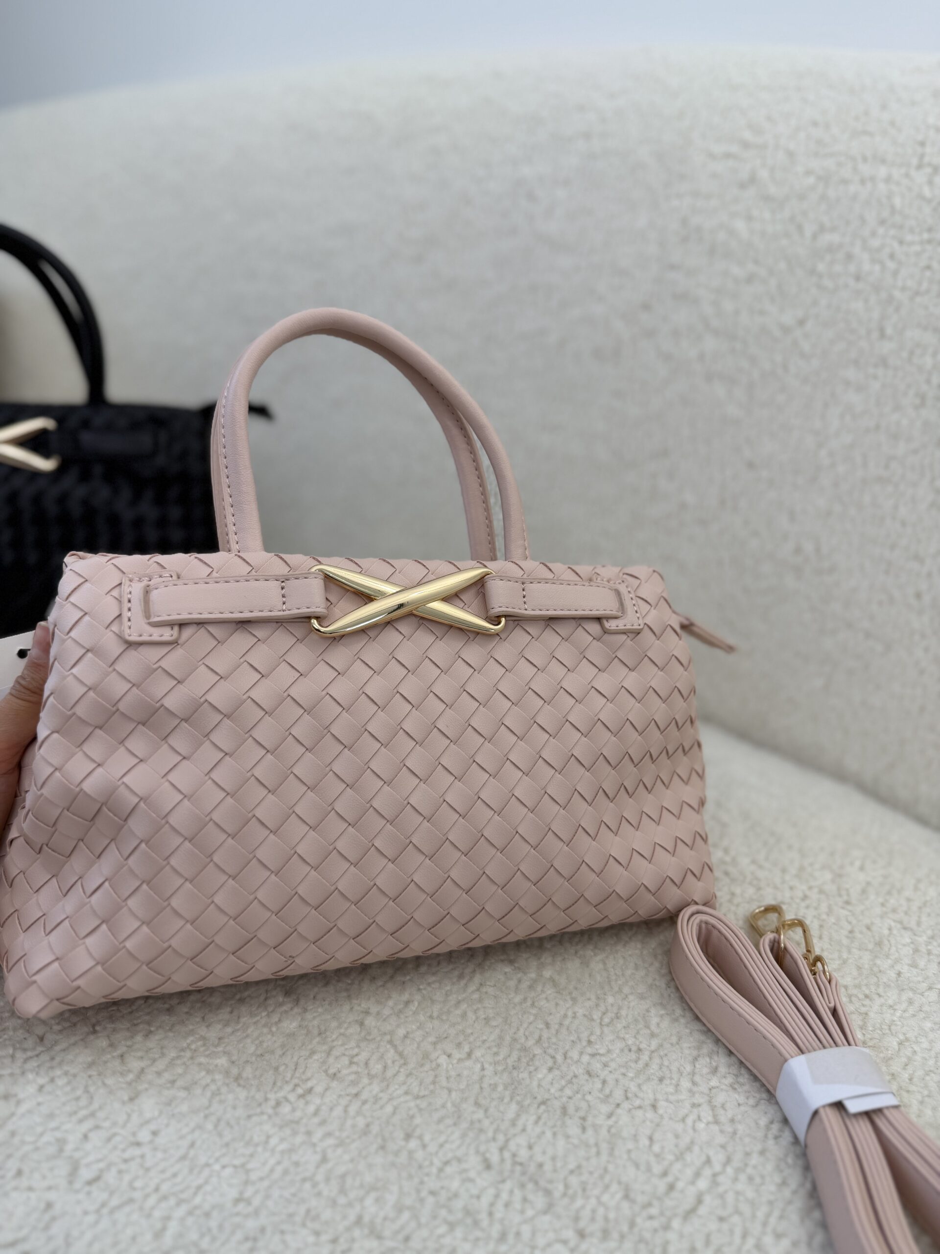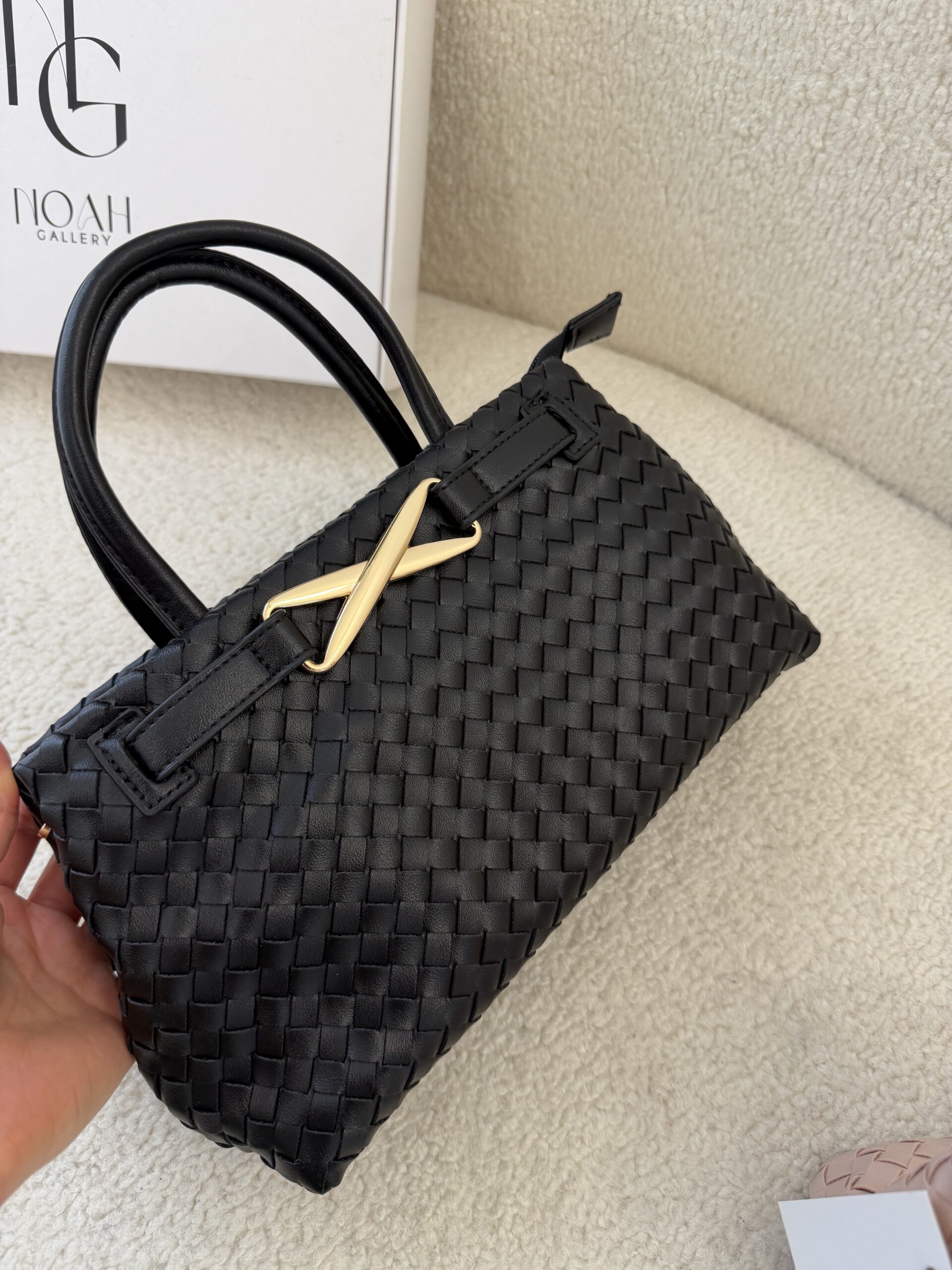 Élégant et intemporel, le sac Élise tressé séduit par son design raffiné et sa texture délicatement entrelacée. Confectionné en cuir vegan tressé, il se distingue par son fermoir doré signature qui apporte une touche chic et moderne.