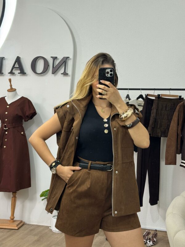 Ce short en suède camel apporte une touche chaude et élégante à n’importe quelle tenue. Sa coupe fluide et sa taille bien structurée mettent en valeur la silhouette tout en garantissant un confort parfait. Facile à associer, il se porte aussi bien avec un top basique qu’avec une veste assortie pour un look chic et harmonieux. Un indispensable pour un style moderne et raffiné.