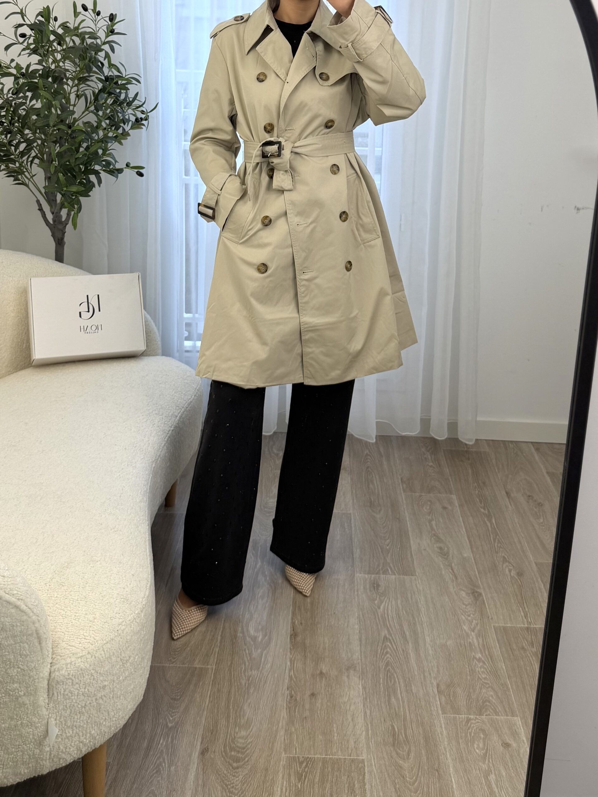 Trench intemporel au style chic et élégant, conçu pour offrir confort et allure en toute simplicité. Sa coupe fluide et structurée met la silhouette en valeur tout en restant agréable à porter au quotidien.