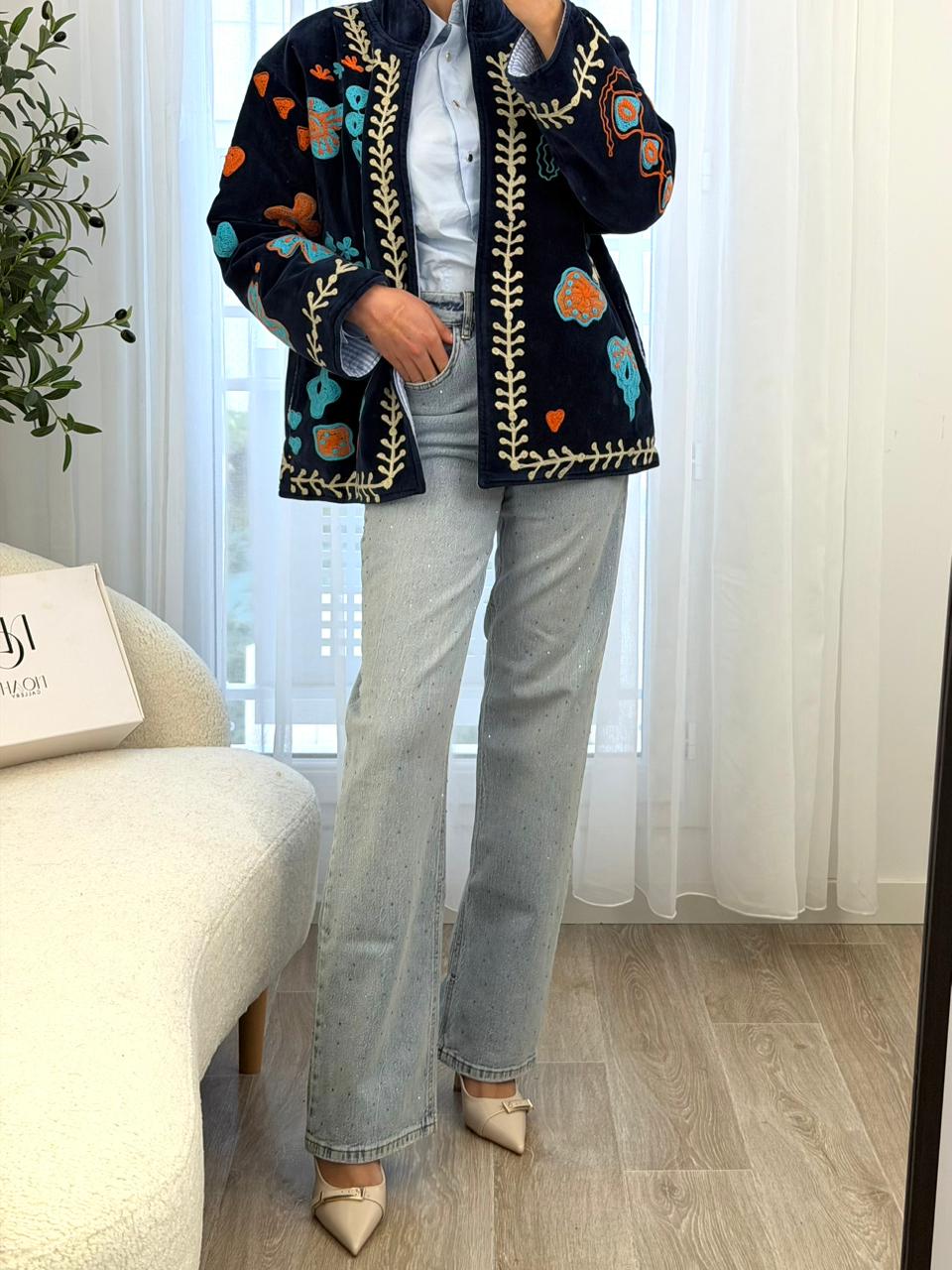 Veste brodée au style chic et artisanal, parfaite pour sublimer vos tenues du quotidien comme vos looks plus habillés. Son tissu doux et élégant est rehaussé de broderies colorées soigneusement travaillées, apportant une touche bohème et raffinée. Facile à associer avec un jean ou un pantalon fluide, elle offre une allure moderne tout en gardant un esprit authentique et intemporel. ✨💙