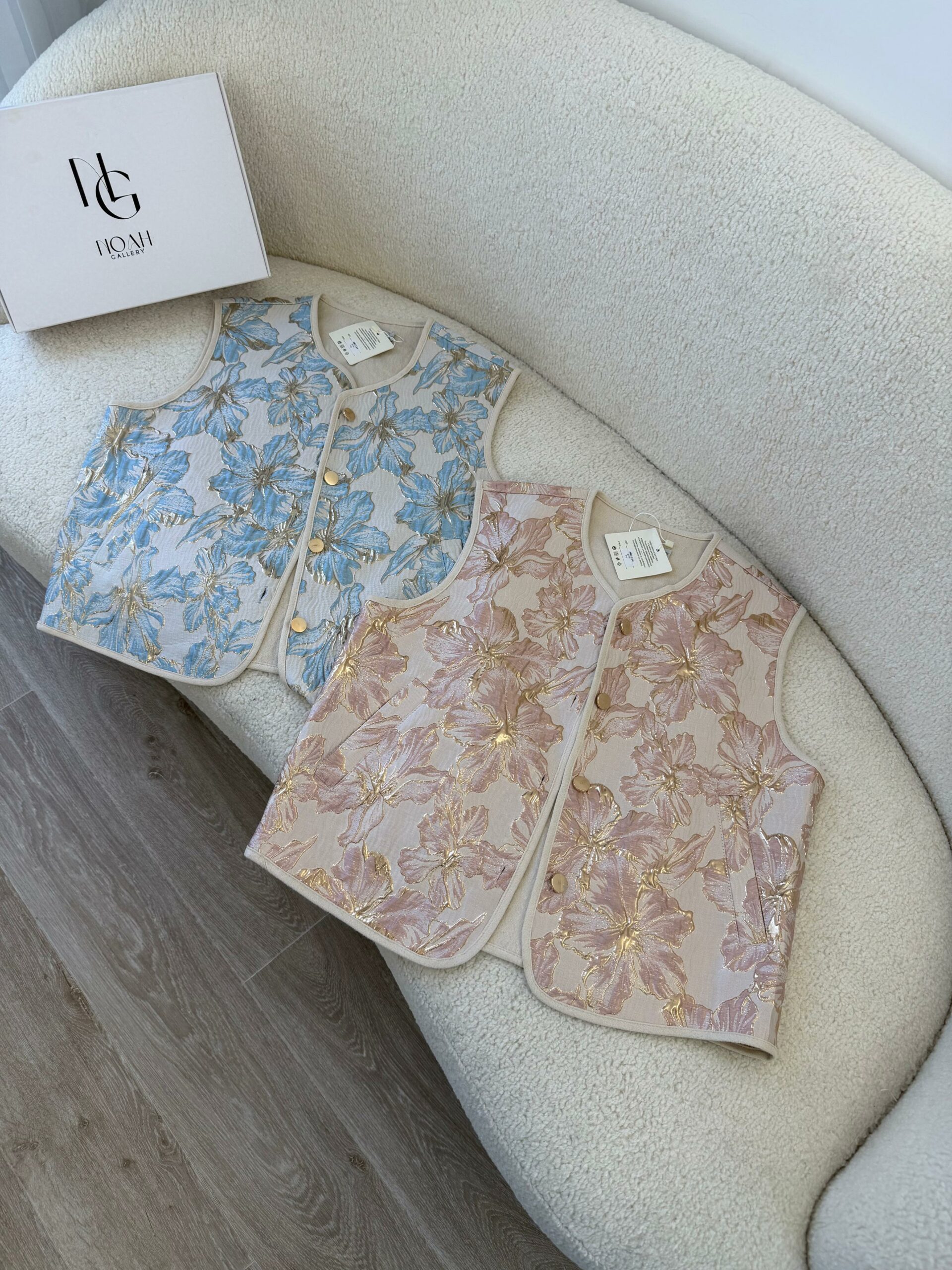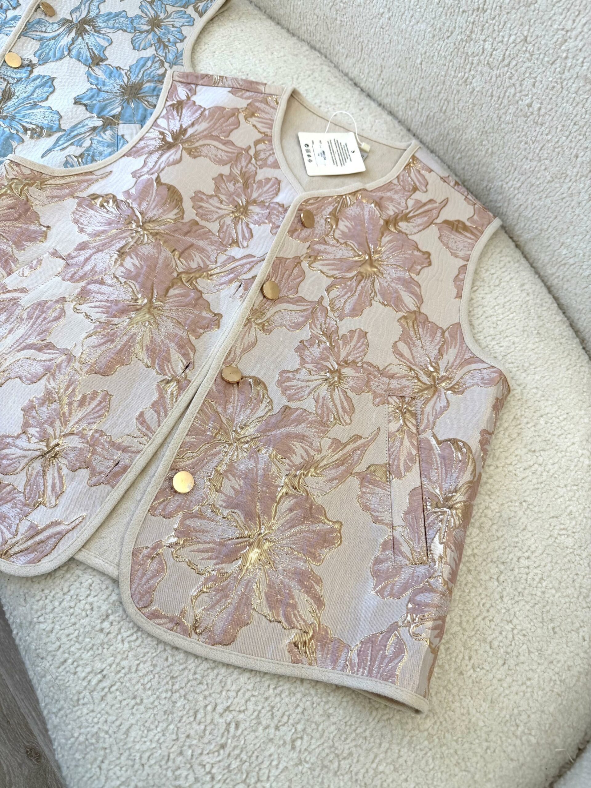 Veste sans manches au design raffiné, sublimée par de délicats motifs floraux qui apportent une touche féminine et élégante. Légère et agréable à porter, elle se superpose facilement sur une chemise, un pull ou une robe pour rehausser instantanément la tenue. Une pièce chic et originale, idéale pour un look moderne avec une note romantique. 🌸✨
