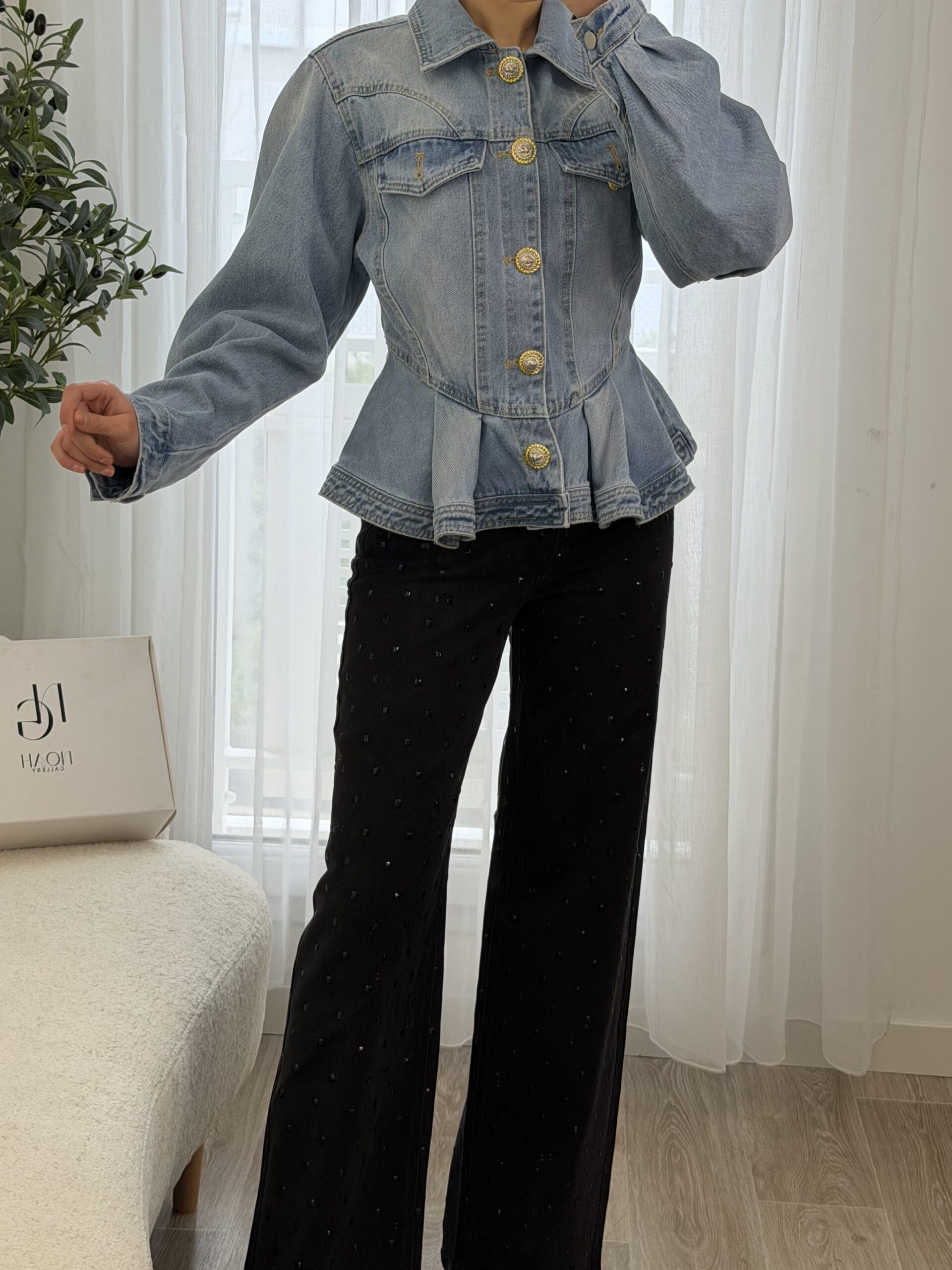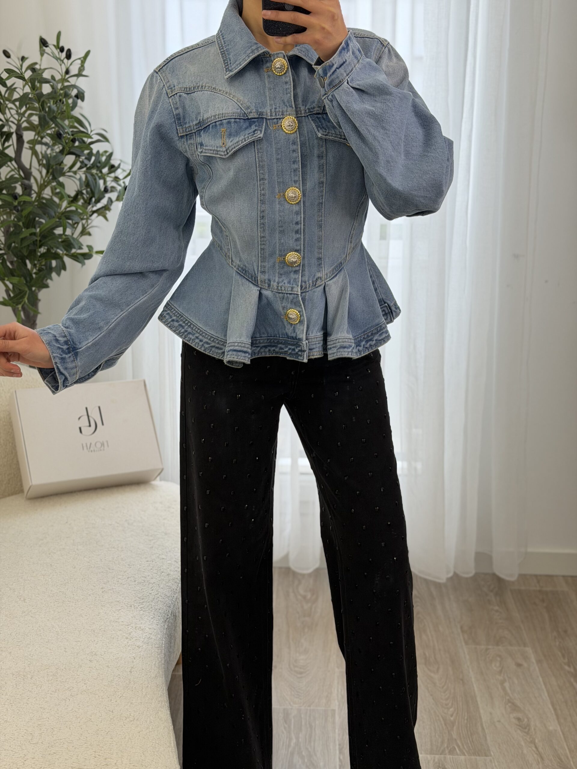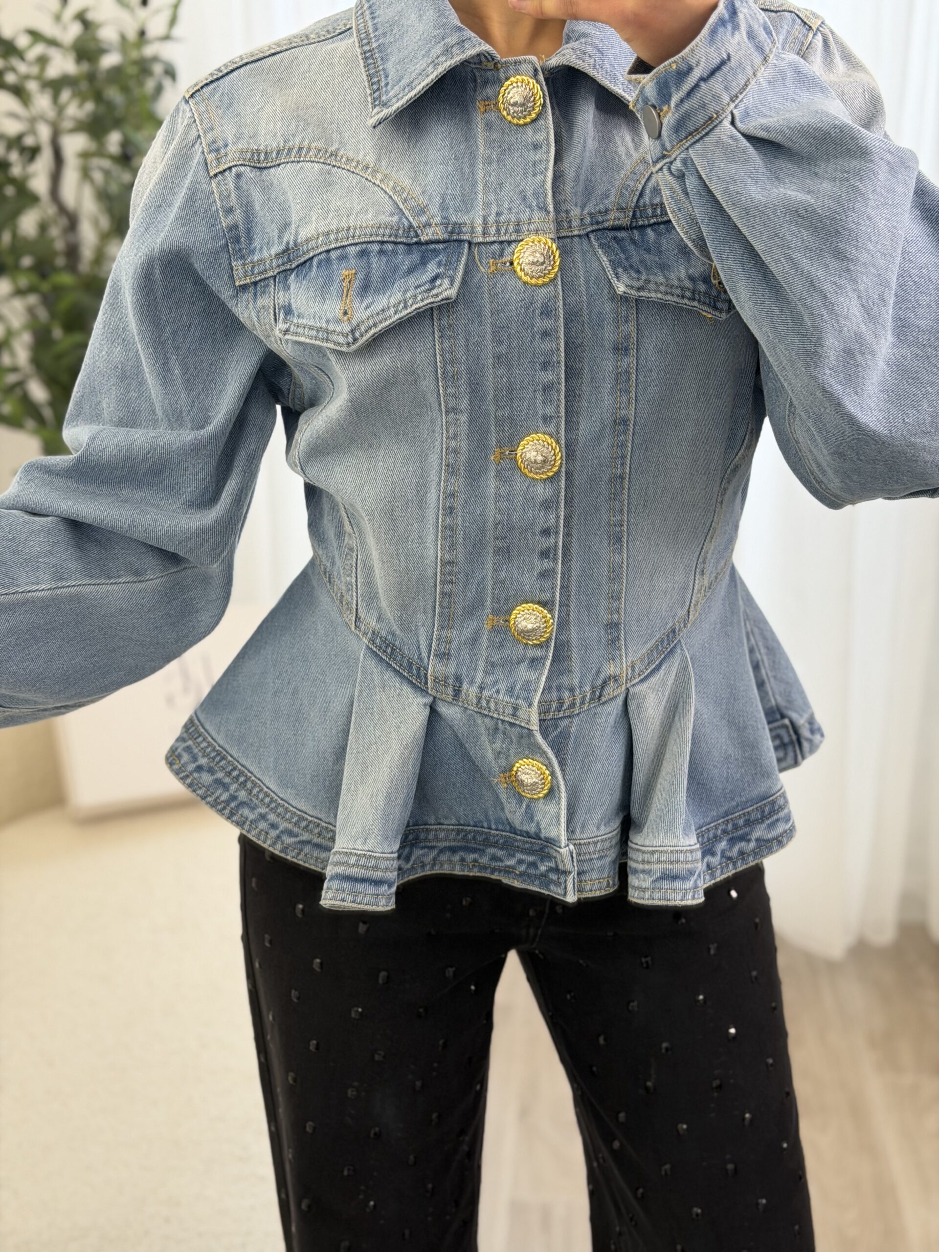 Veste en jean revisitant le denim classique avec une coupe féminine et structurée. Sa taille marquée et sa finition légèrement évasée apportent une silhouette élégante et moderne, tandis que les boutons dorés bijoux ajoutent une touche chic et raffinée. Confortable et facile à associer, elle se porte aussi bien avec un pantalon habillé qu’un look casual pour un style tendance au quotidien.