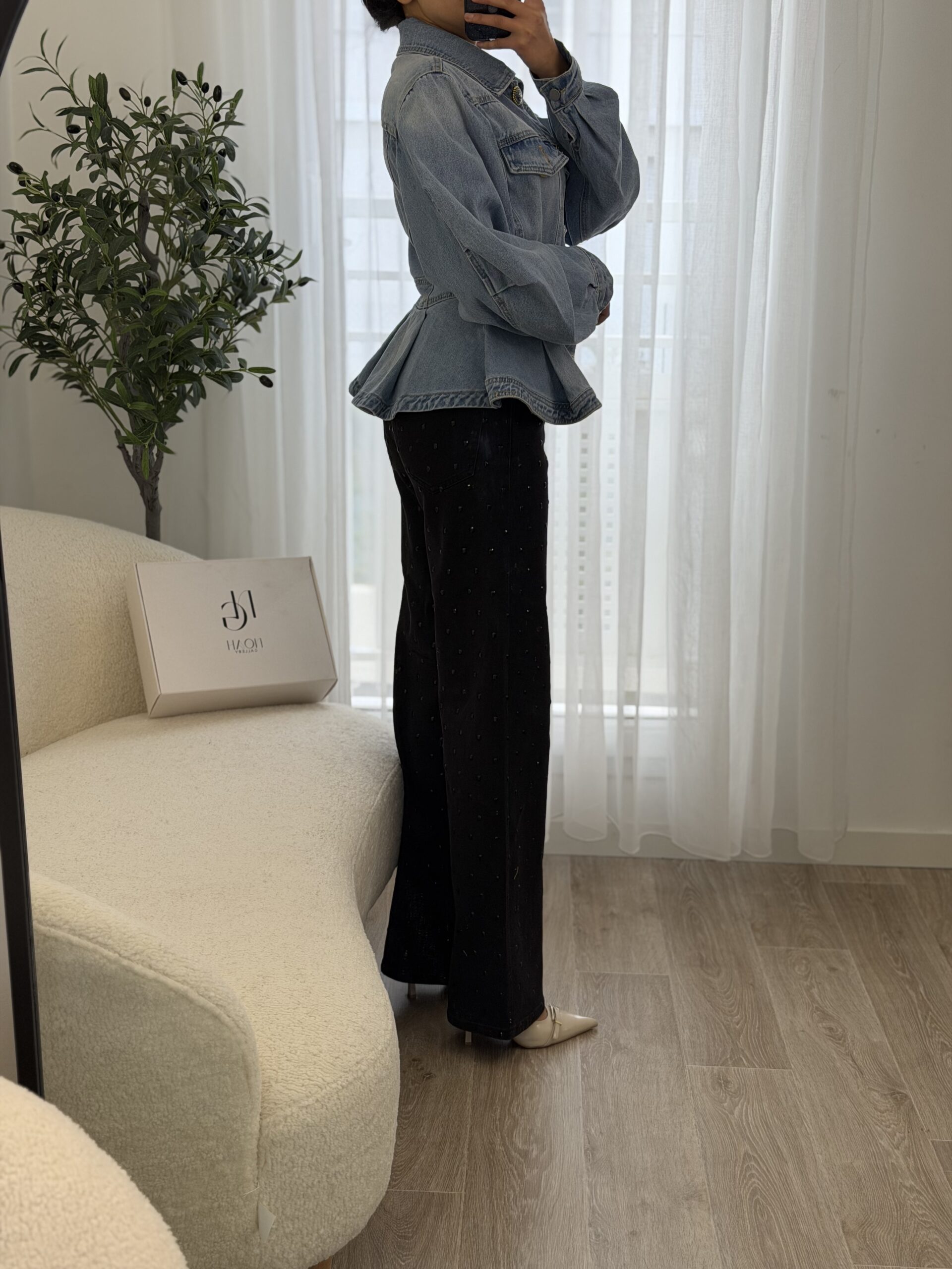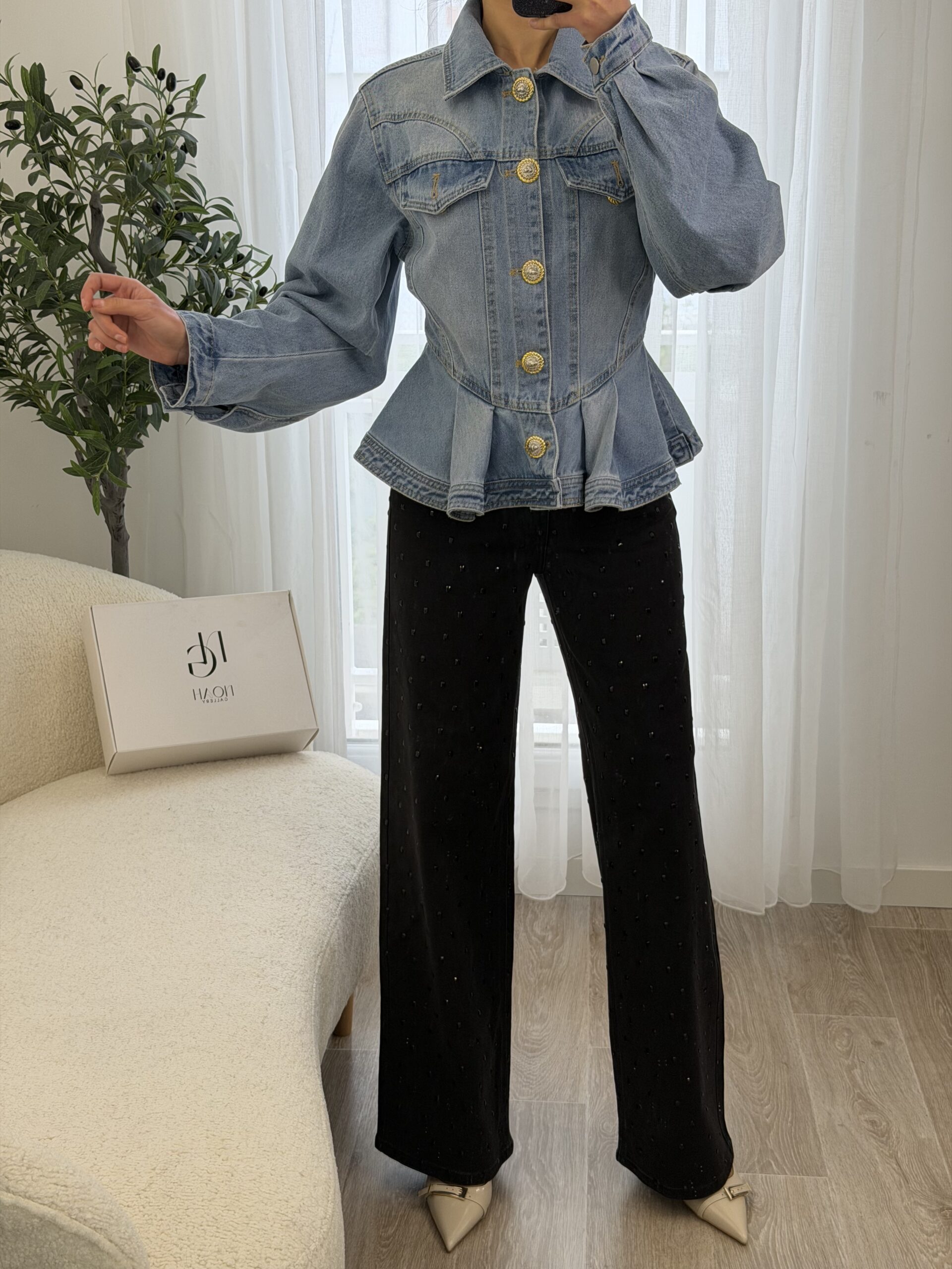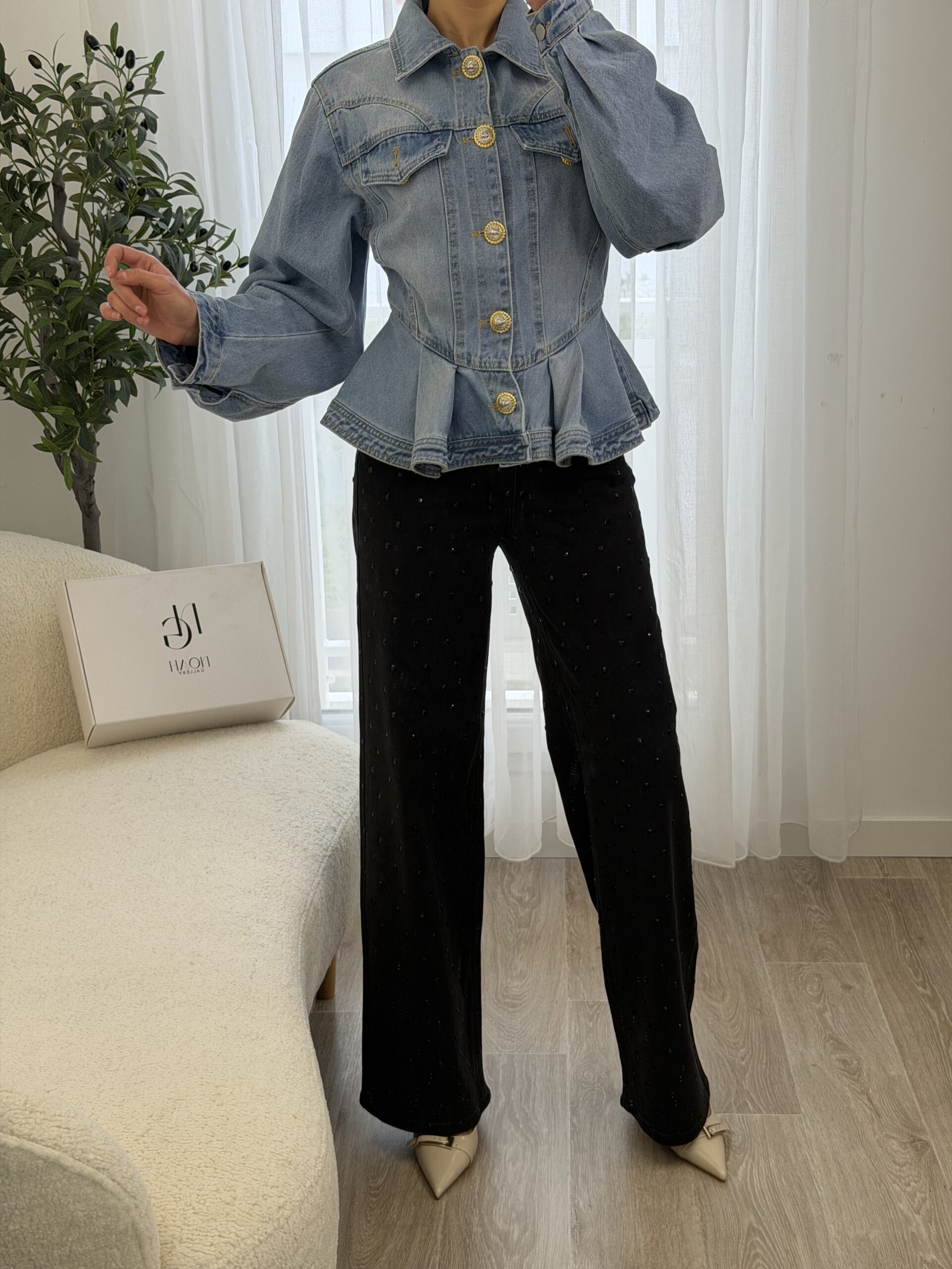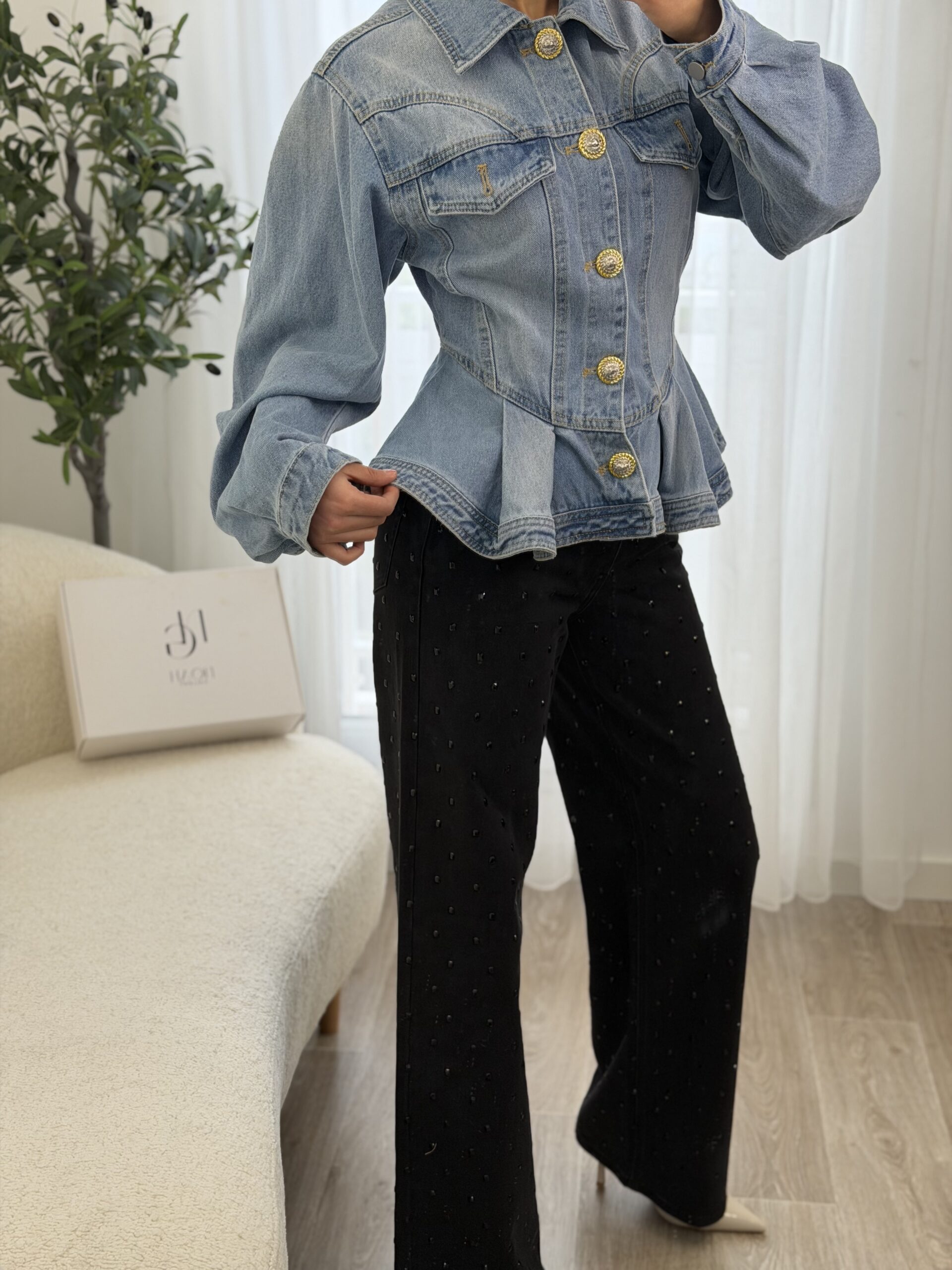 Veste en jean revisitant le denim classique avec une coupe féminine et structurée. Sa taille marquée et sa finition légèrement évasée apportent une silhouette élégante et moderne, tandis que les boutons dorés bijoux ajoutent une touche chic et raffinée. Confortable et facile à associer, elle se porte aussi bien avec un pantalon habillé qu’un look casual pour un style tendance au quotidien.