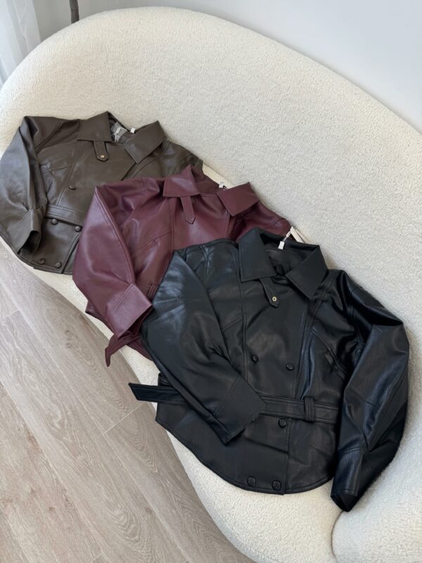 Veste élégante en simili cuir, au design structuré et moderne, dotée d’une ceinture ajustable qui souligne la silhouette avec raffinement. Sa matière souple et son col classique apportent une touche chic et intemporelle, idéale pour sublimer toutes vos tenues. Facile à porter au quotidien comme en soirée, cette veste est un incontournable pour un look urbain sophistiqué et tendance.
